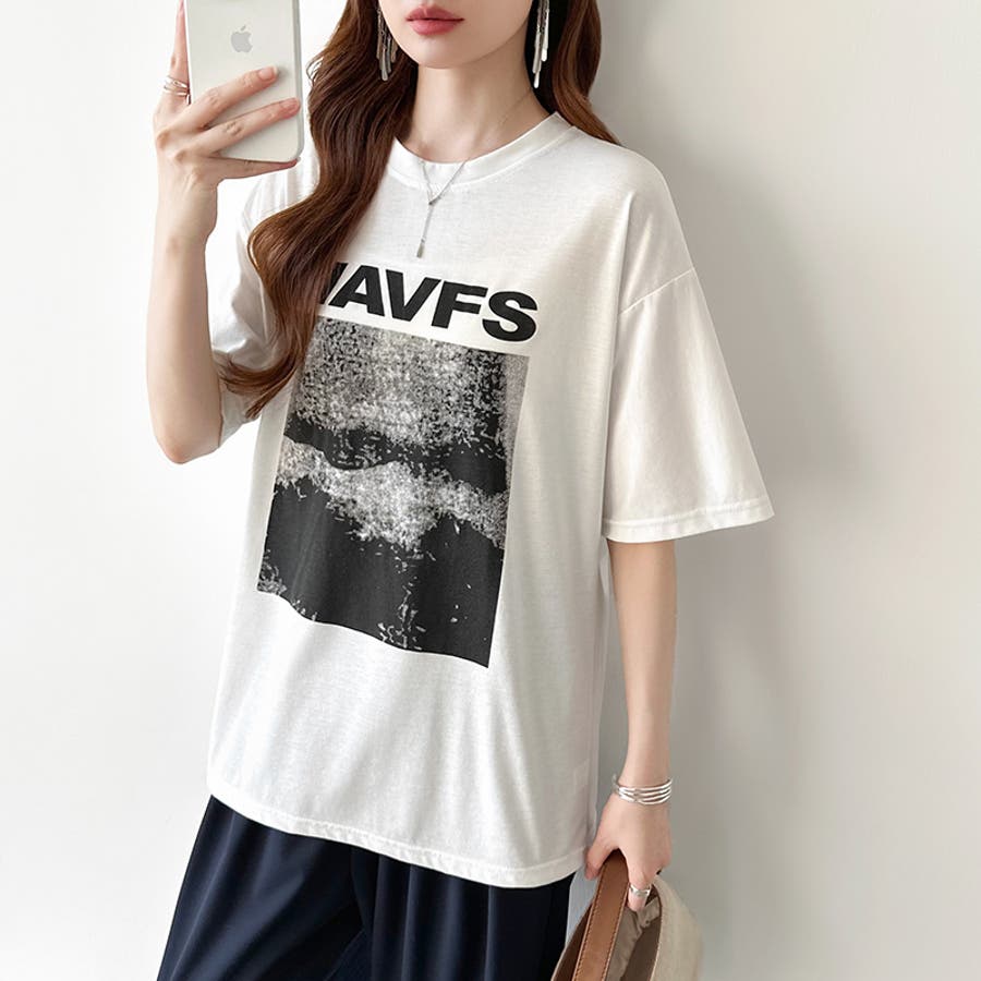 フォトプリントTシャツ ロゴtシャツ オーバーサイズ