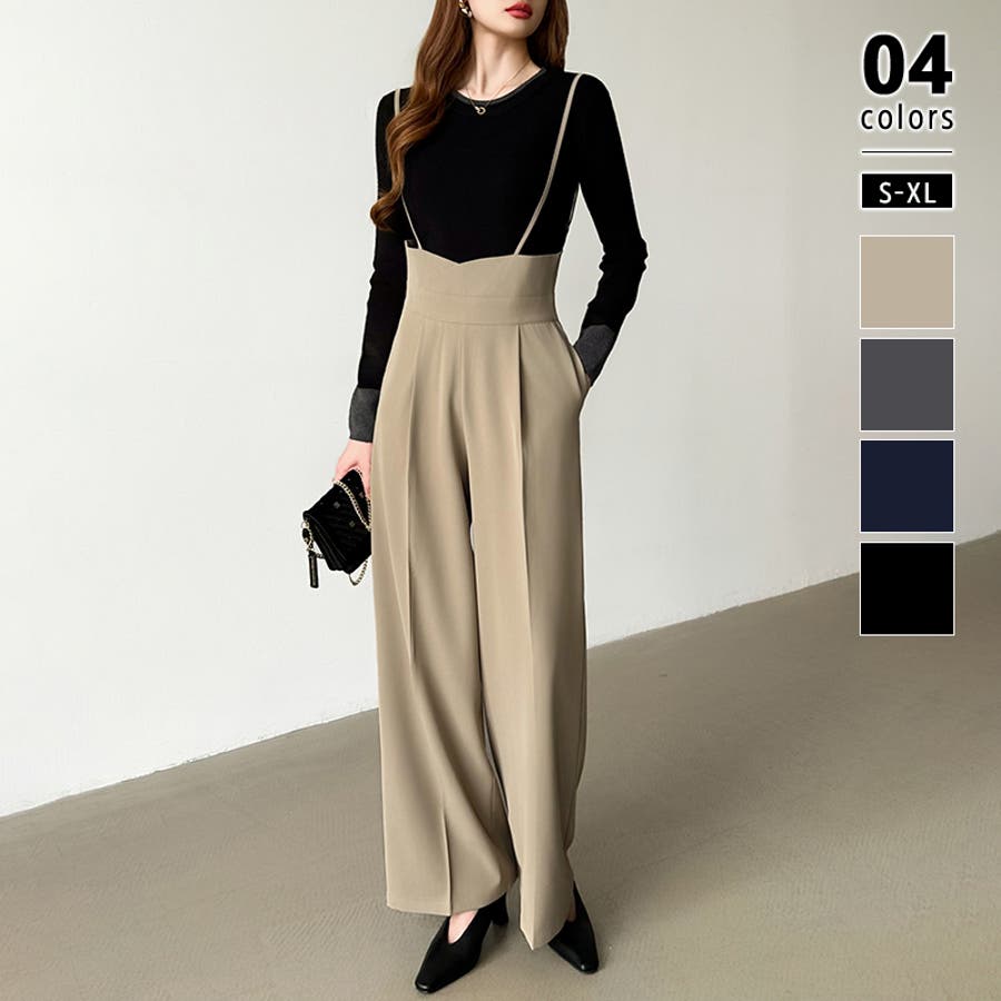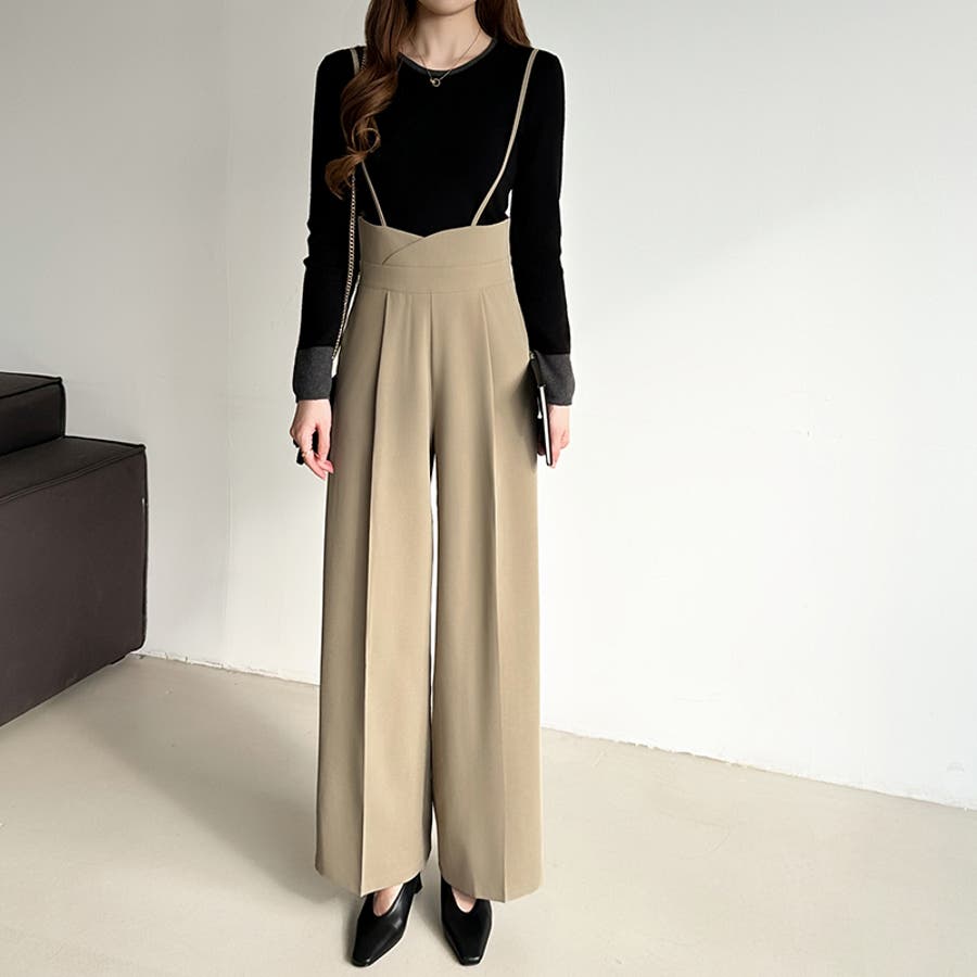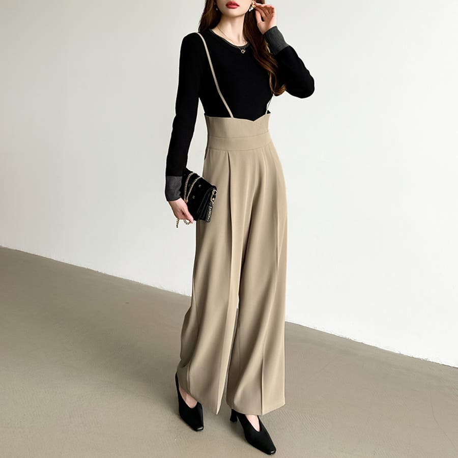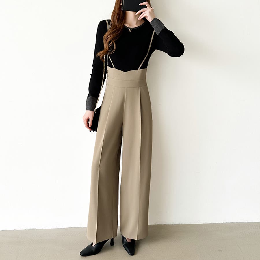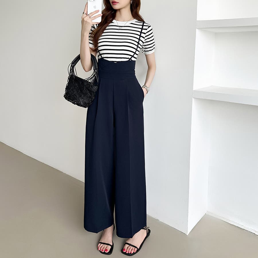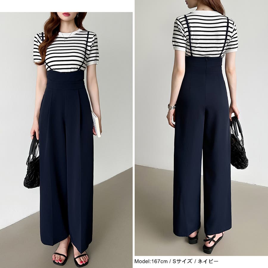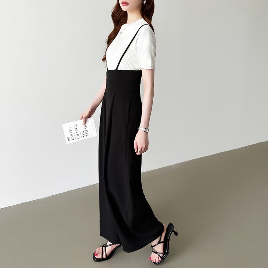 サロペットパンツ ハイウエスト ワイドパンツ