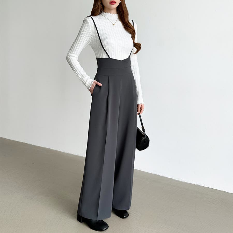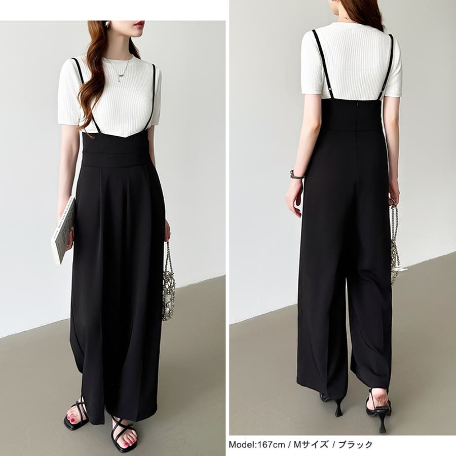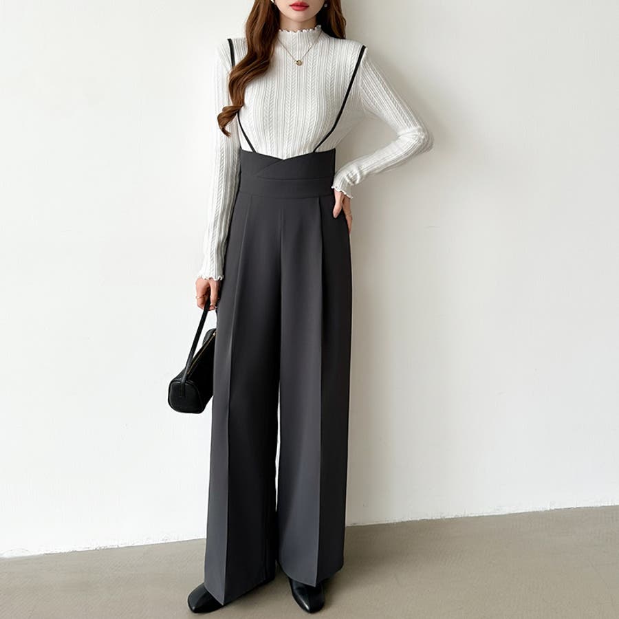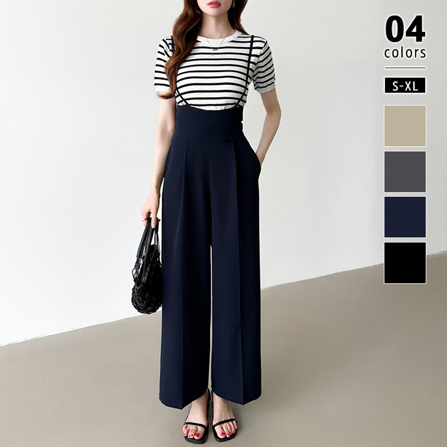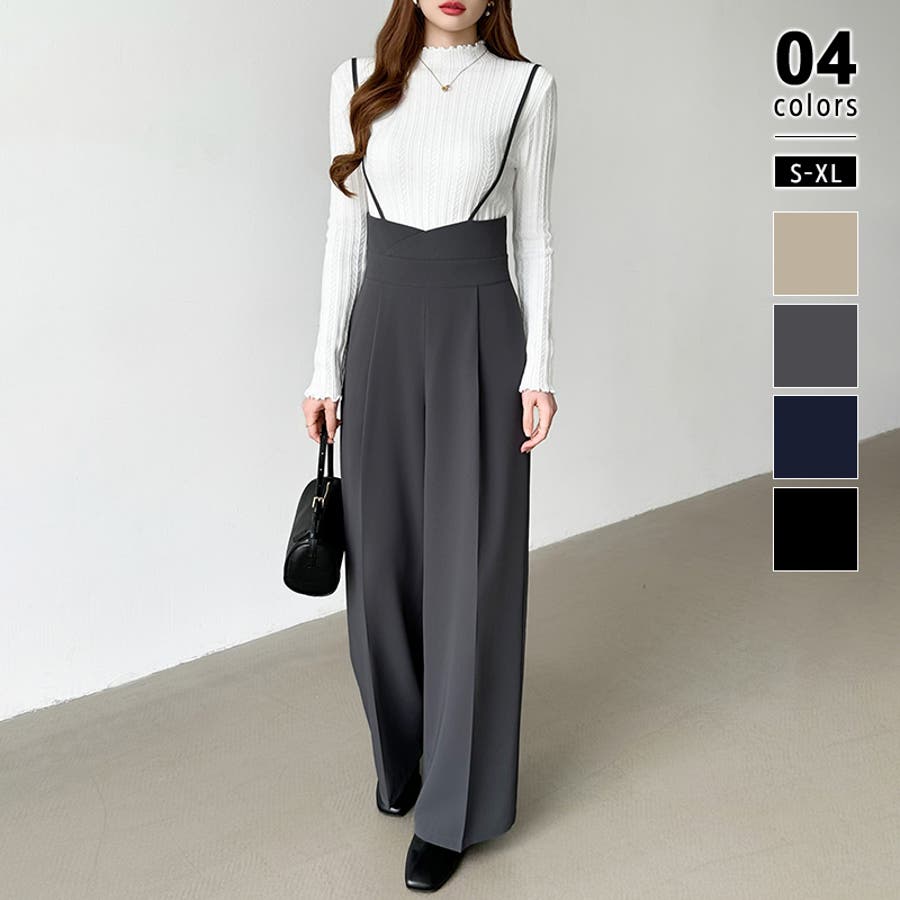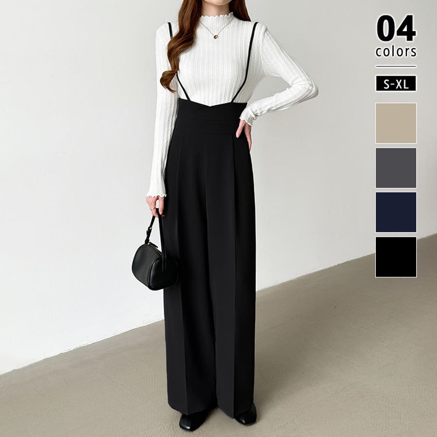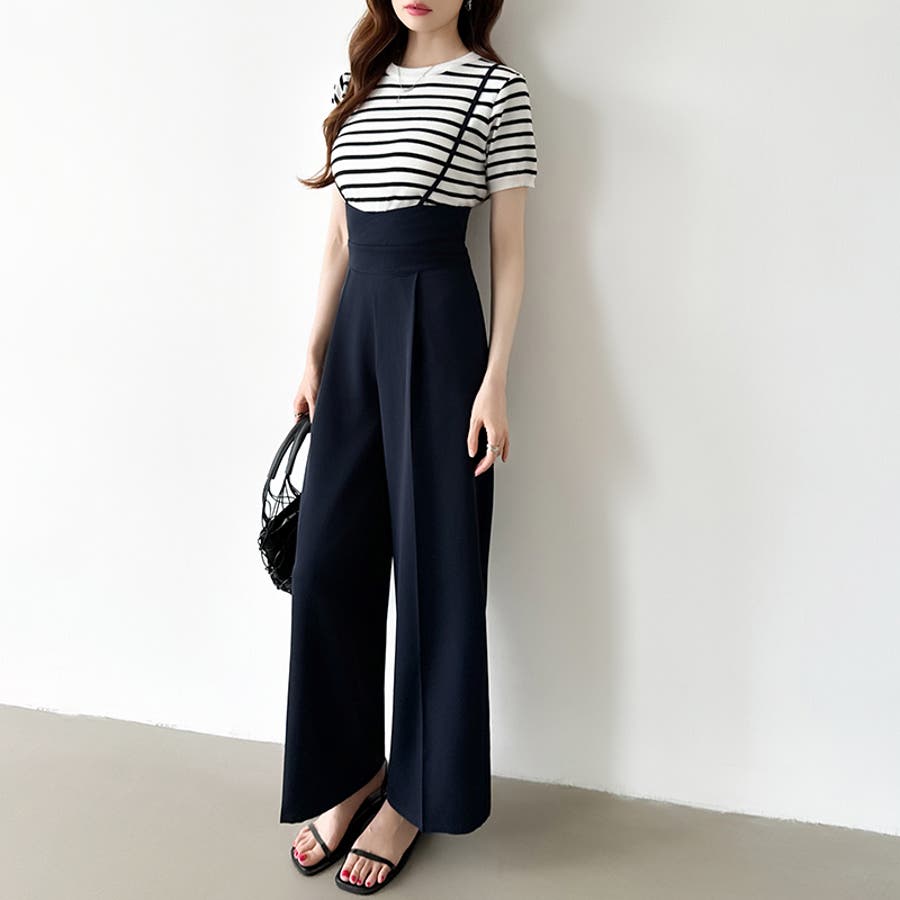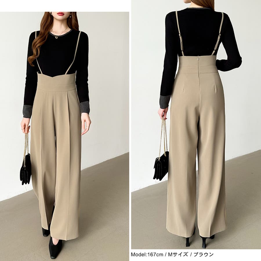 サロペットパンツ ハイウエスト ワイドパンツ