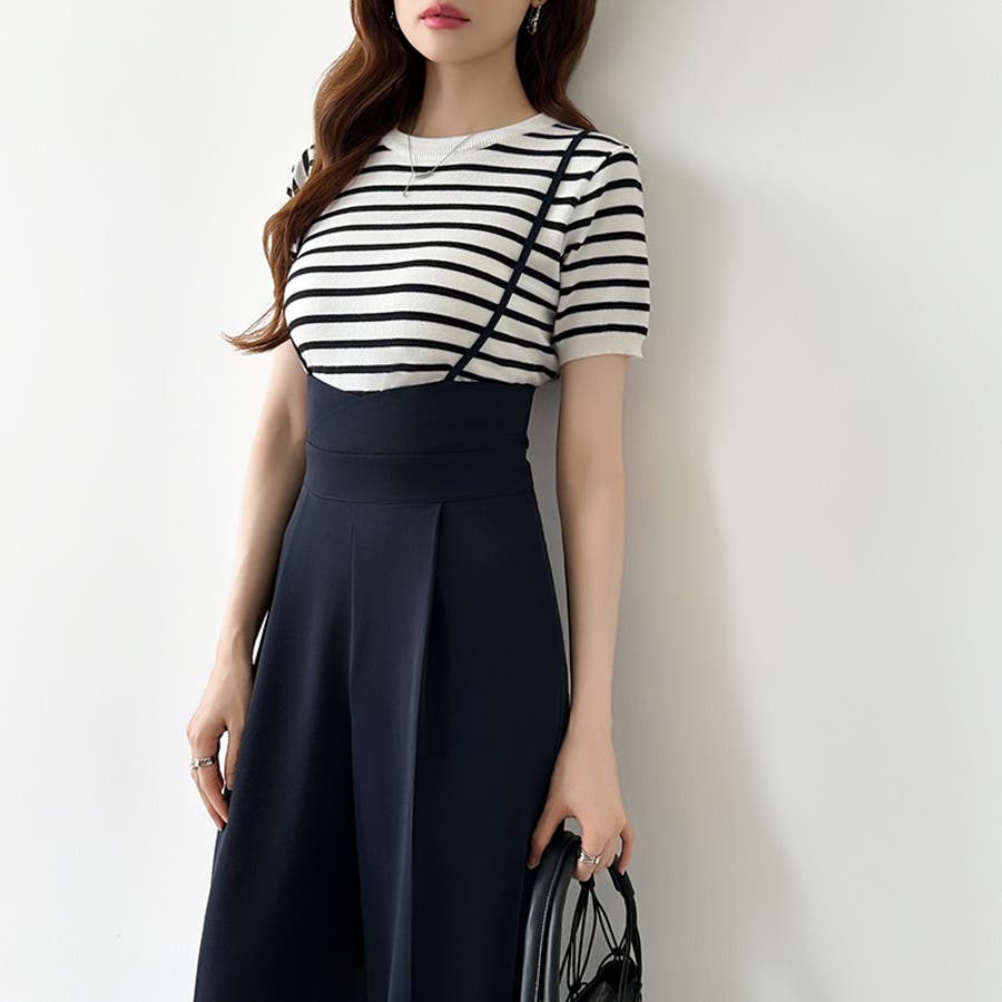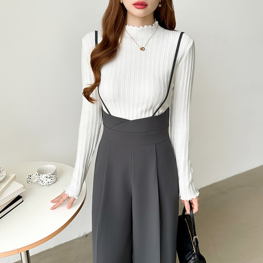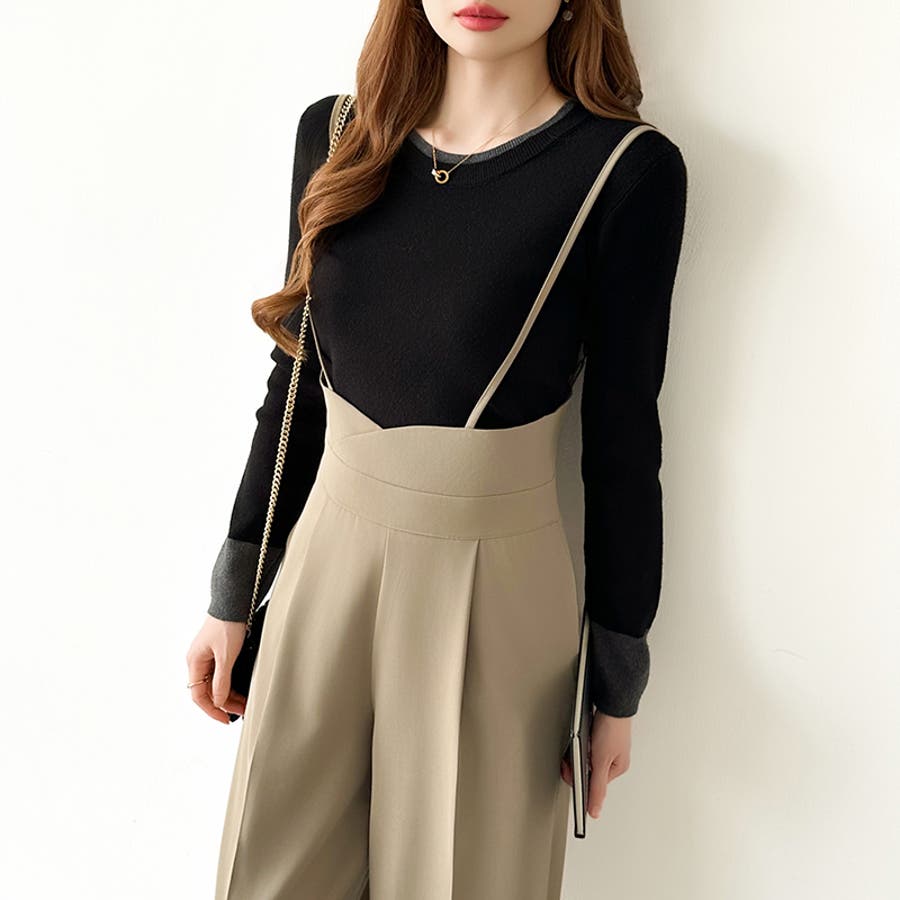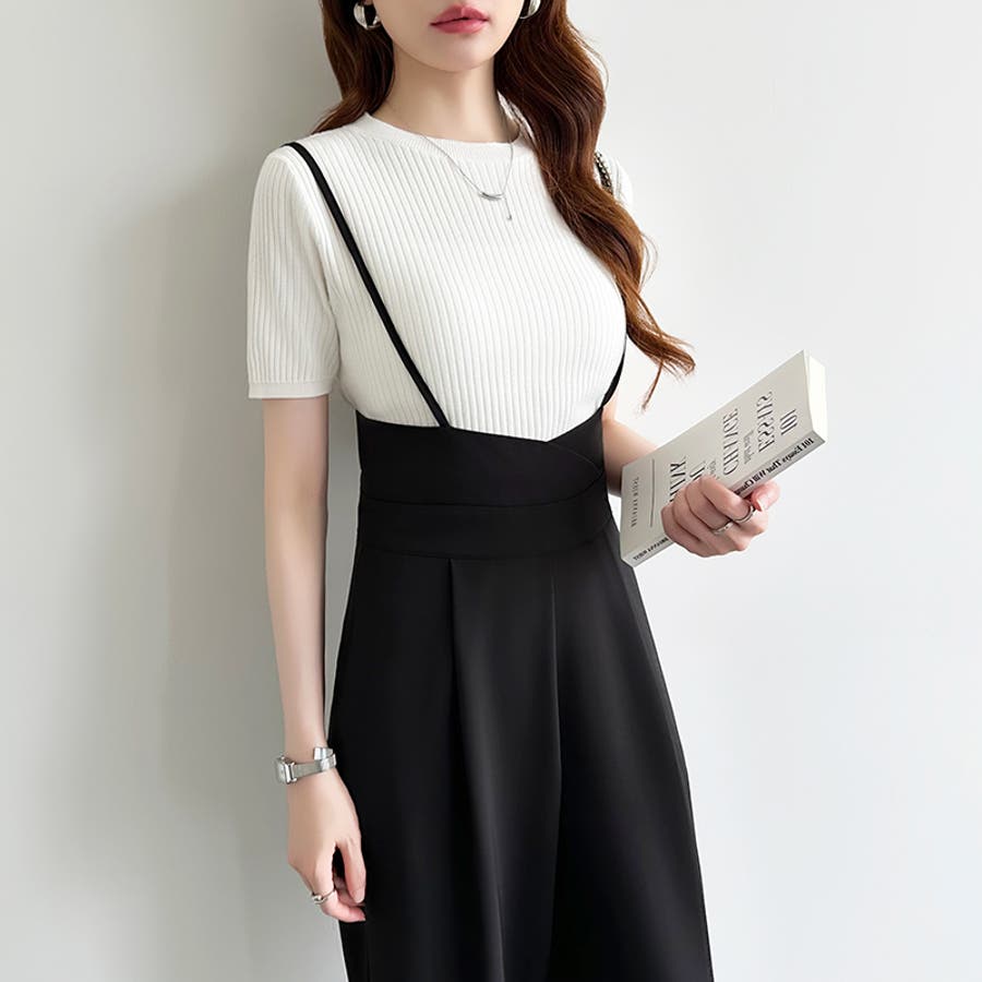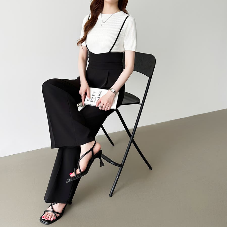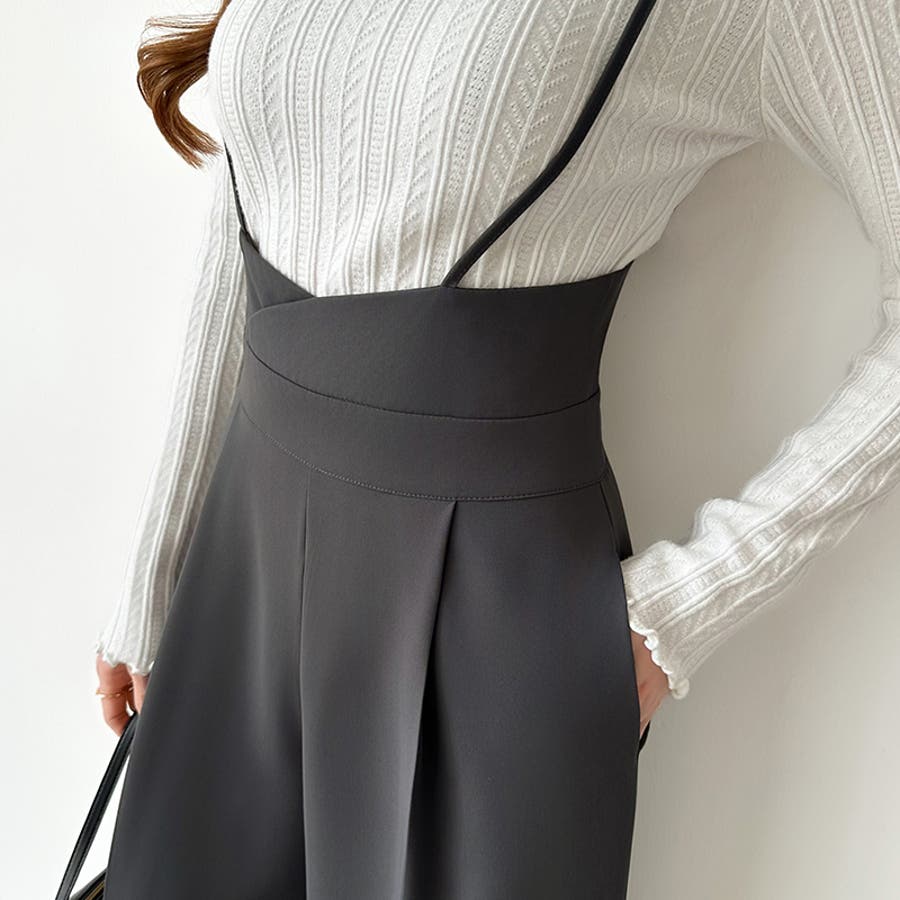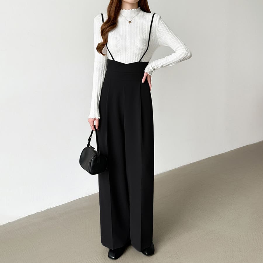 サロペットパンツ ハイウエスト ワイドパンツ