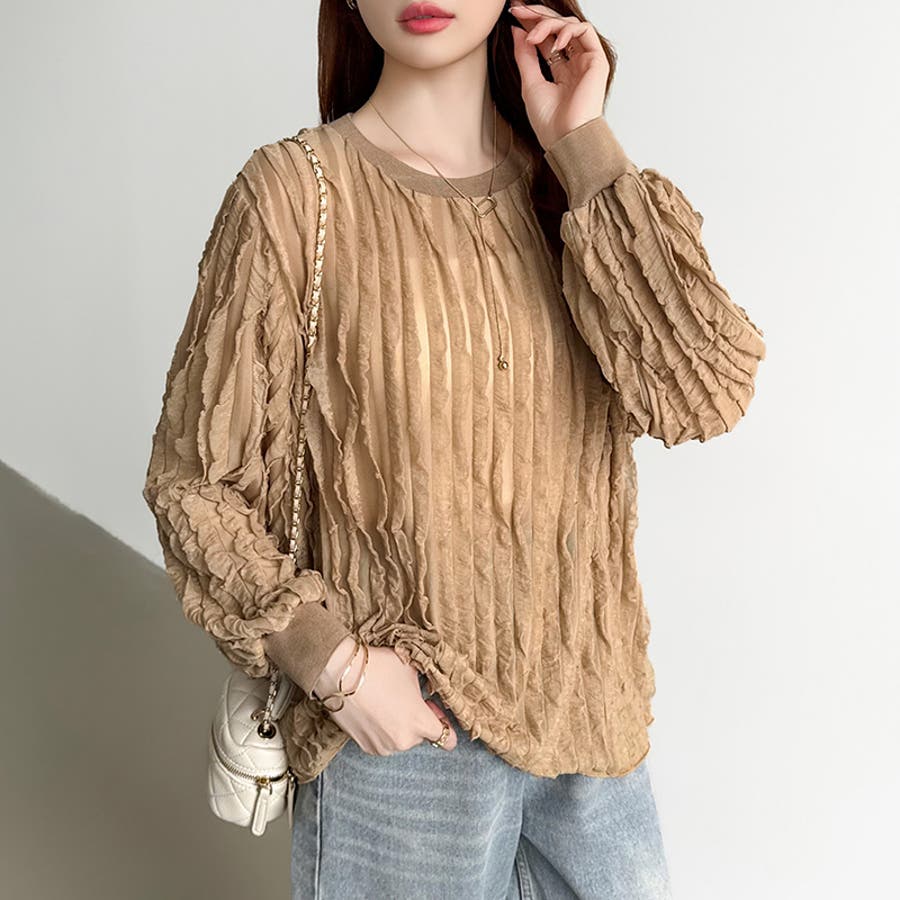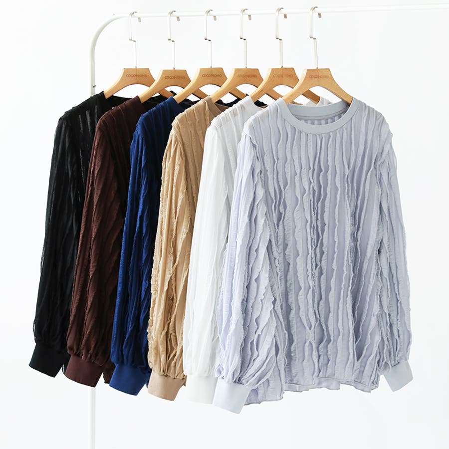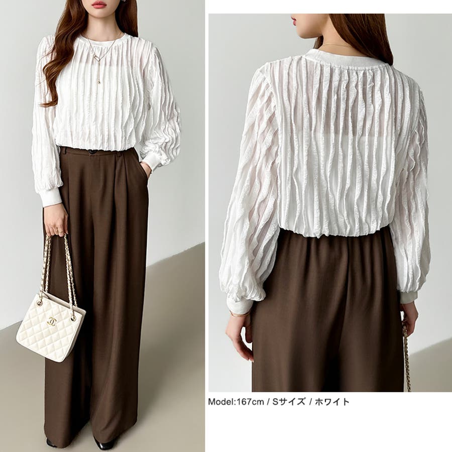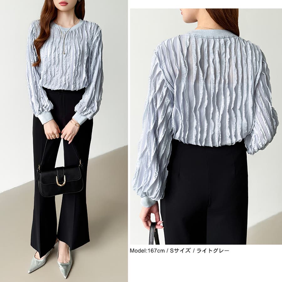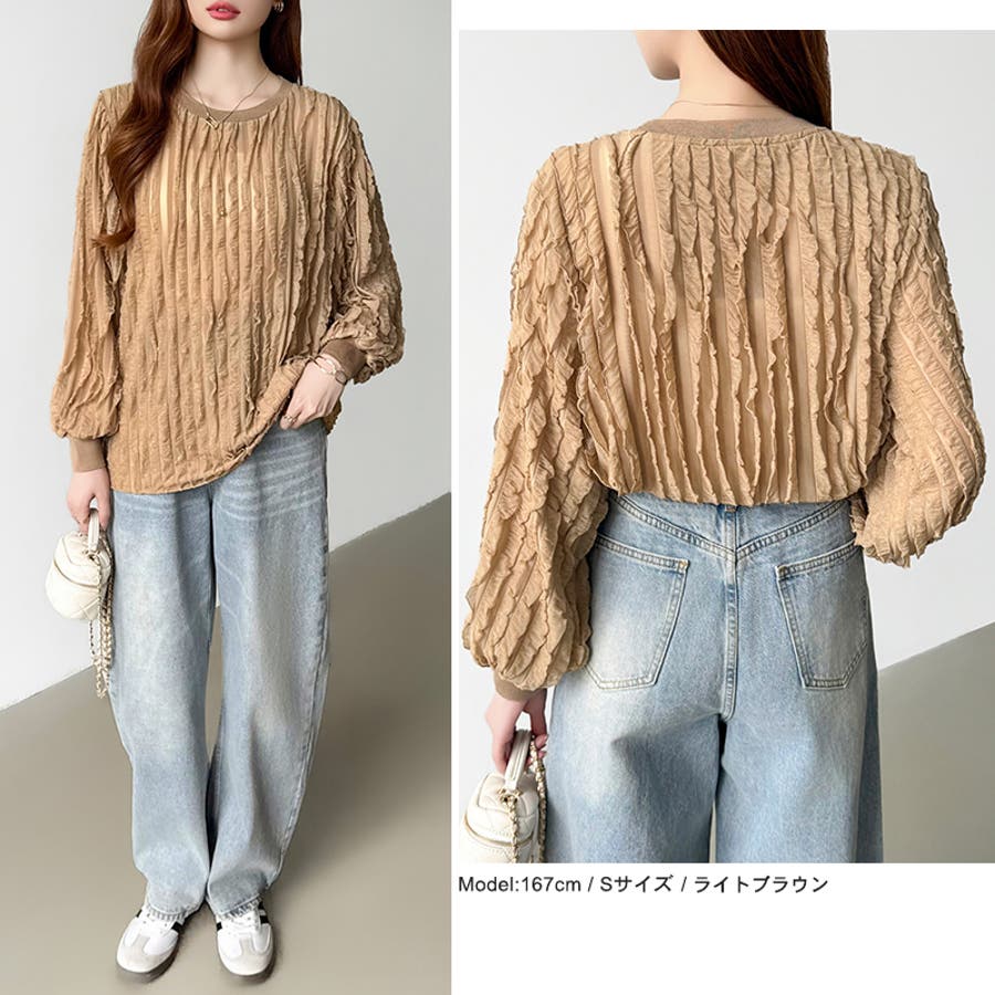 フリルトップス フリル カットソー tシャツ 長袖 レディース シアー ウェーブ トップス ゆったり ロンt 長袖tシャツ 長袖カットソー ボリューム袖 なみなみ おしゃれ クルーネック 大きいサイズ ロング フリルTシャツ フリルT ブラウス チュニック オーバーサイズ 長袖Tシャツ シアーTシャツ 透け感 チュニックtシャツ チュニックTシャツレディース ロング丈 フリルジャガード ジャガード 立体 シアーカットソー 透け 薄手 長い 長め Tシャツ 長袖Tシャツ 長袖トップス 長袖おしゃれ Tシャツレディース ゆったりTシャツ ゆったりサイズ 大きめ 大きい 体型カバー 体型 カバー 二の腕 隠し ぽっちゃり お尻が隠れる 低身長 高身長 細見え 着痩せ ラウンドネック きれいめ プルオーバー カットソーレディース 袖 袖あり tops 無地 シンプル 伸縮性 ストレッチ お出かけ 旅行 普段着 着回し ワンマイル 楽ちん 楽 ルーズ カジュアル モード フェミニン 大人 かわいい 可愛い 大人可愛い 大人かわいい きれい め 綺麗め キレイめ オシャレ プチプラ 高見え トレンド ヒット 商品 おすすめ ファッション コーデ コーディネート 母 ママ ママコーデ 女性 服 服装 洋服 S M L サイズ Sサイズ Mサイズ Lサイズ ホワイト 白 ライトグレー 灰色 ライトブラウン 茶色 ダークブラウン ネイビー 紺 紺色 ブラック 黒 カラー レディース春夏 レディース春物 レディース夏物 レディース春 春トップス レディース夏 夏トップス レディース秋 秋トップス レディース秋物 レディース秋冬 きれいめカジュアルレディース おしゃれレディース 大人カジュアル 春物 夏物 秋物 春用 夏用 秋用 春夏 春秋 春 夏 秋 春服 夏服 秋服 韓国 韓国ファッション 10代 20代 30代 40代 50代 60代 70代 cocomomo ココモモ