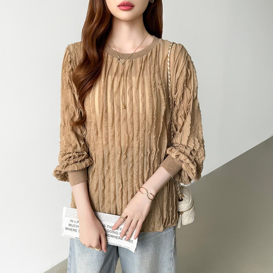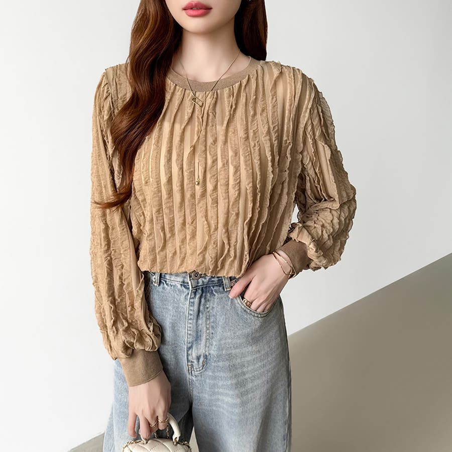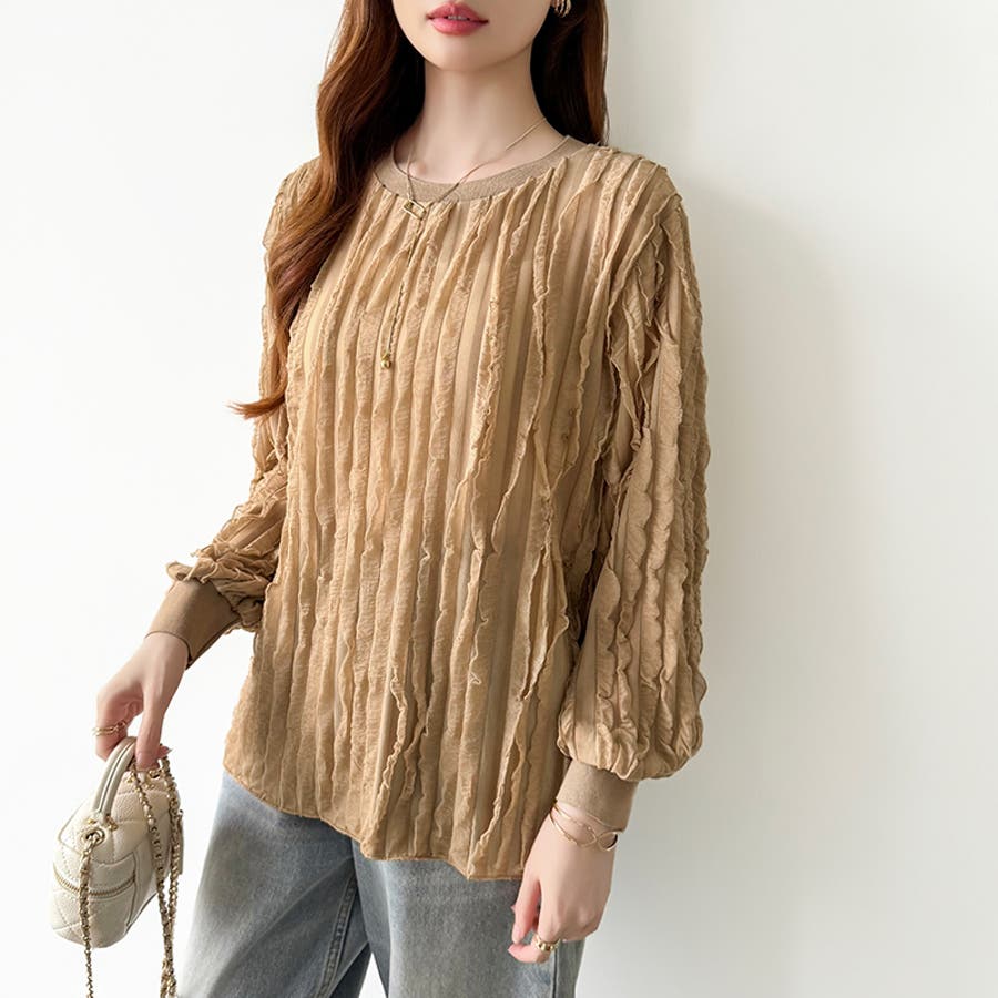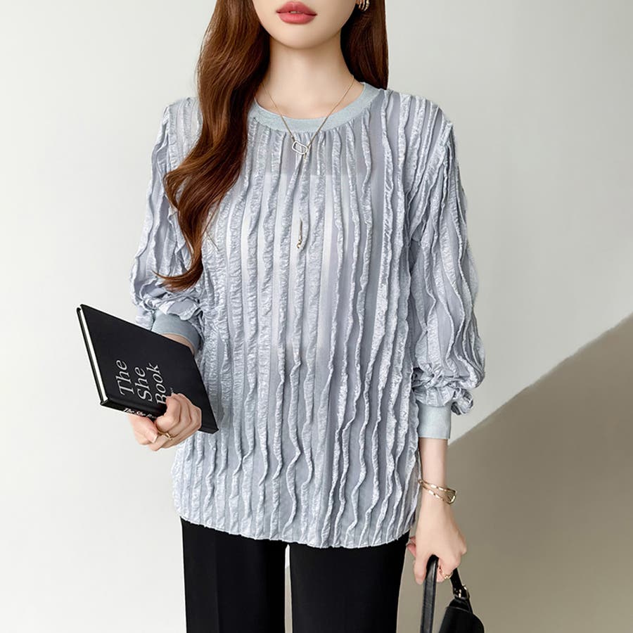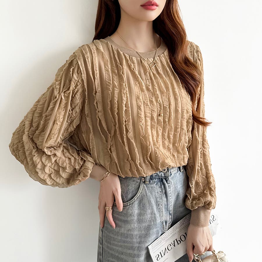 フリルトップス フリル カットソー tシャツ 長袖 レディース シアー ウェーブ トップス ゆったり ロンt 長袖tシャツ 長袖カットソー ボリューム袖 なみなみ おしゃれ クルーネック 大きいサイズ ロング フリルTシャツ フリルT ブラウス チュニック オーバーサイズ 長袖Tシャツ シアーTシャツ 透け感 チュニックtシャツ チュニックTシャツレディース ロング丈 フリルジャガード ジャガード 立体 シアーカットソー 透け 薄手 長い 長め Tシャツ 長袖Tシャツ 長袖トップス 長袖おしゃれ Tシャツレディース ゆったりTシャツ ゆったりサイズ 大きめ 大きい 体型カバー 体型 カバー 二の腕 隠し ぽっちゃり お尻が隠れる 低身長 高身長 細見え 着痩せ ラウンドネック きれいめ プルオーバー カットソーレディース 袖 袖あり tops 無地 シンプル 伸縮性 ストレッチ お出かけ 旅行 普段着 着回し ワンマイル 楽ちん 楽 ルーズ カジュアル モード フェミニン 大人 かわいい 可愛い 大人可愛い 大人かわいい きれい め 綺麗め キレイめ オシャレ プチプラ 高見え トレンド ヒット 商品 おすすめ ファッション コーデ コーディネート 母 ママ ママコーデ 女性 服 服装 洋服 S M L サイズ Sサイズ Mサイズ Lサイズ ホワイト 白 ライトグレー 灰色 ライトブラウン 茶色 ダークブラウン ネイビー 紺 紺色 ブラック 黒 カラー レディース春夏 レディース春物 レディース夏物 レディース春 春トップス レディース夏 夏トップス レディース秋 秋トップス レディース秋物 レディース秋冬 きれいめカジュアルレディース おしゃれレディース 大人カジュアル 春物 夏物 秋物 春用 夏用 秋用 春夏 春秋 春 夏 秋 春服 夏服 秋服 韓国 韓国ファッション 10代 20代 30代 40代 50代 60代 70代 cocomomo ココモモ