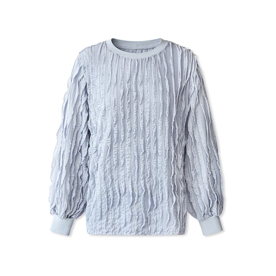 フリルトップス 長袖カットソー ウェーブTシャツ