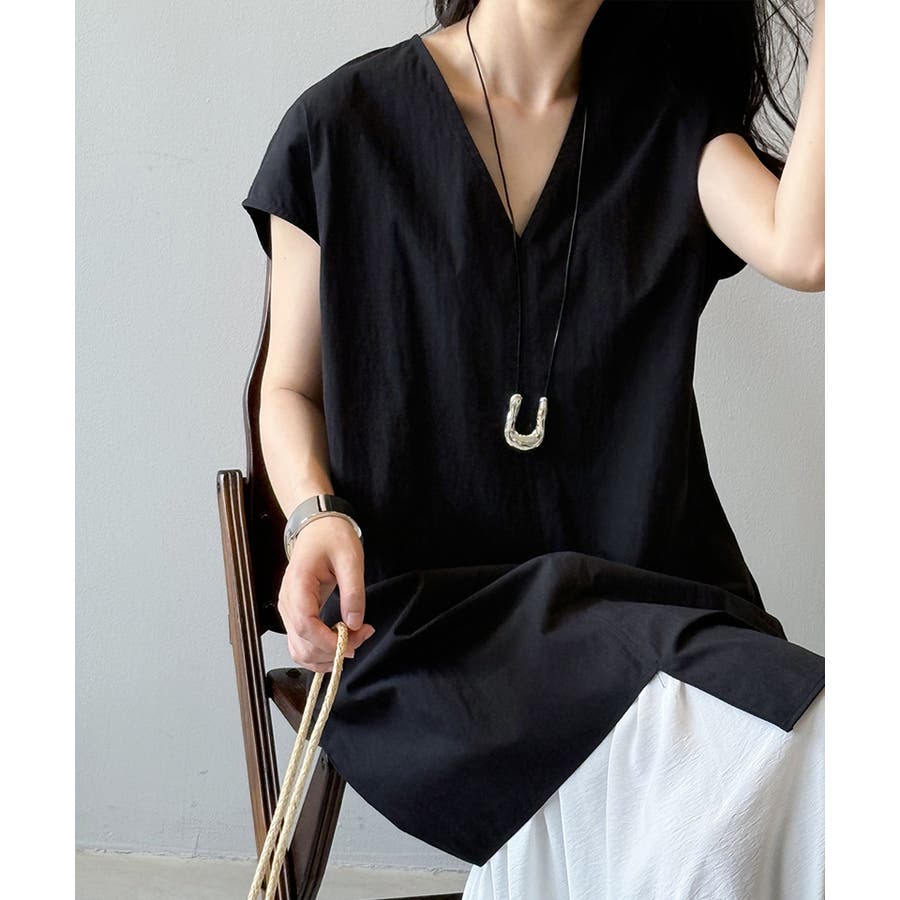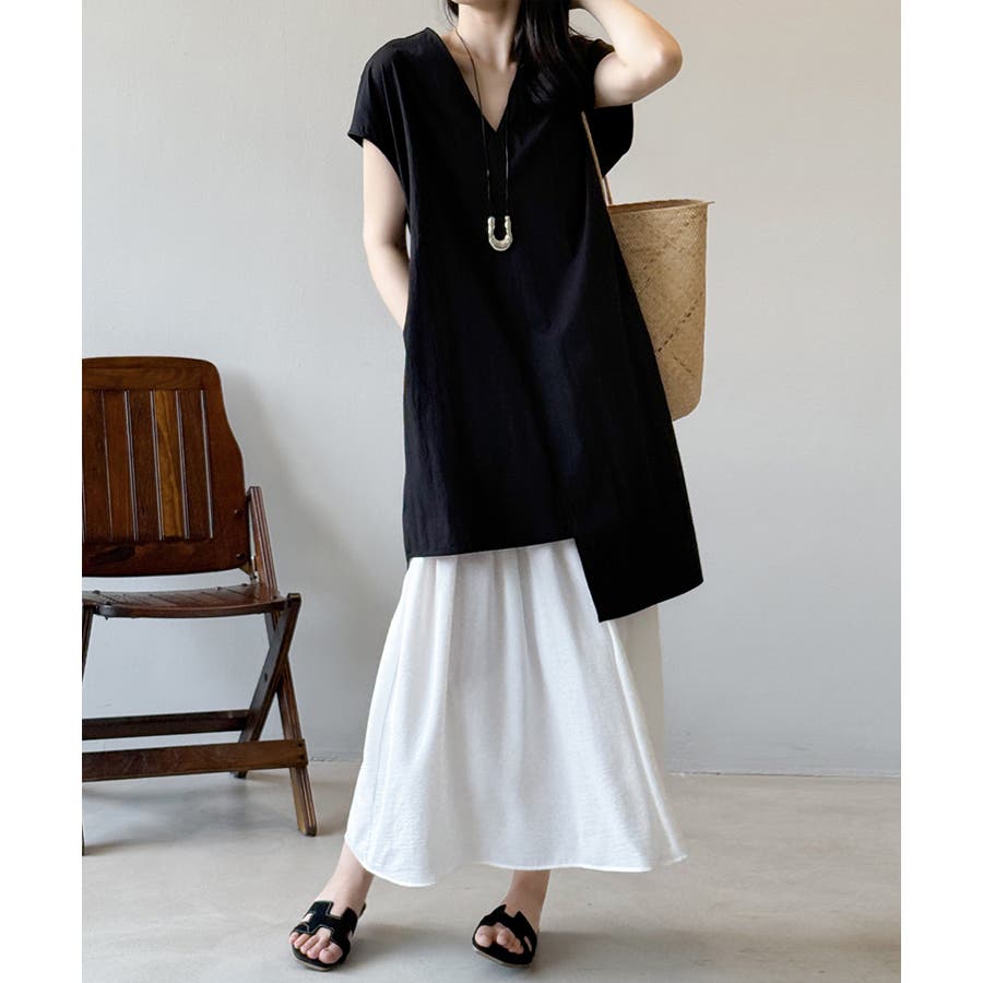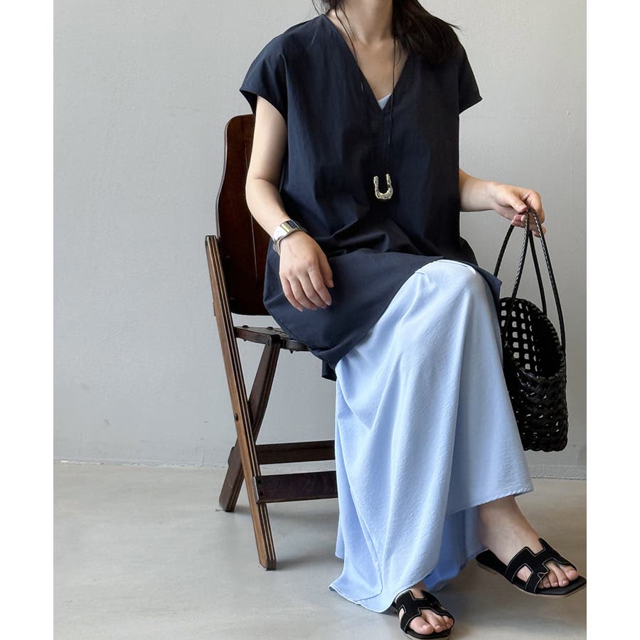抜け感のあるVネックが涼しげに、