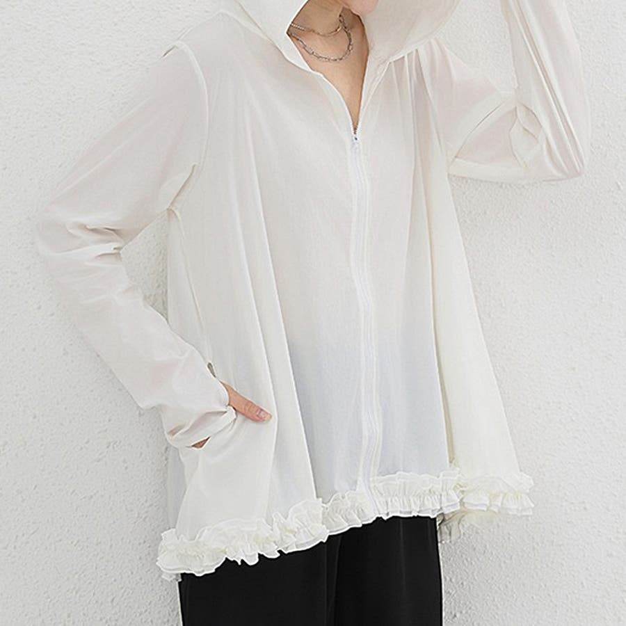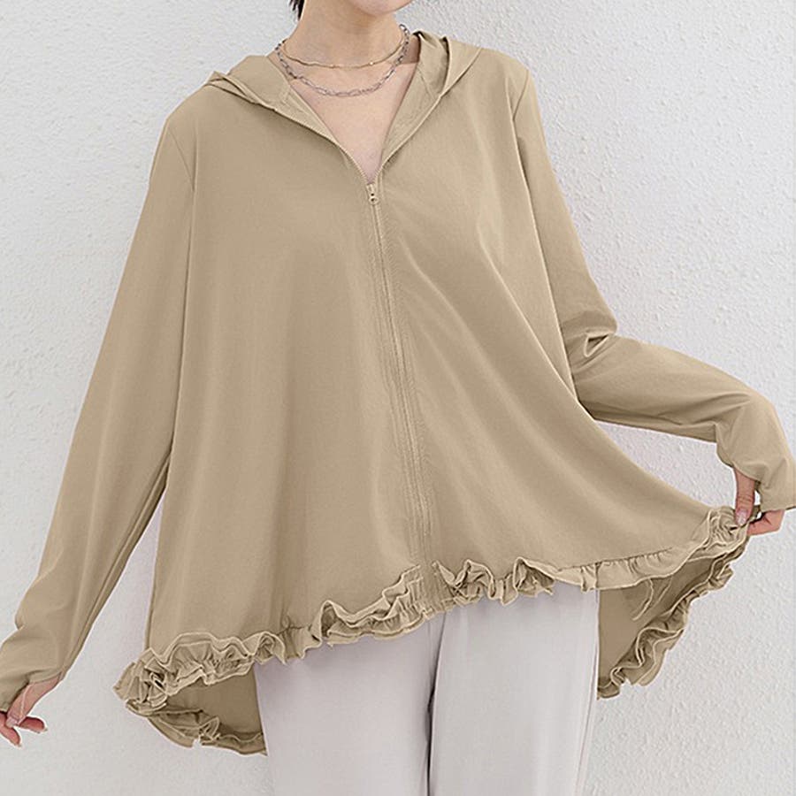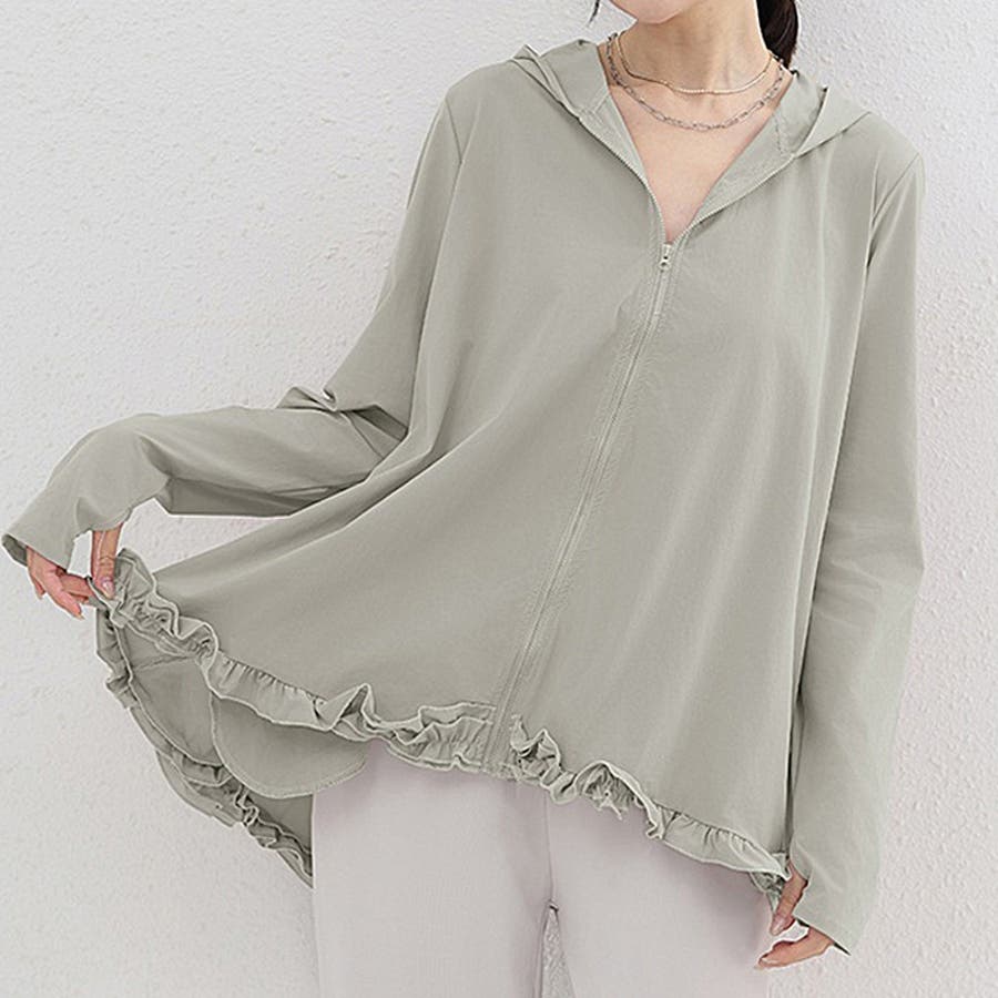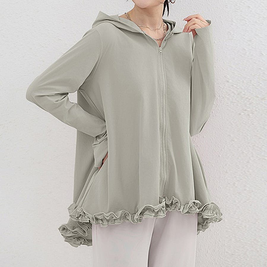 UVカット パーカー ラッシュガード 紫外線対策 接触冷感 レディース フリル フード付き uvカットパーカー UV 日焼け対策 水陸両用 長袖 おしゃれ uvパーカー 吸水速乾 羽織 薄手 ロング丈 ゆったり 大きいサイズ 体型カバー 指穴付き ラッシュガードパーカー 冷感 フード付きラッシュガード フリルラッシュガード フリルパーカー オーバーサイズ フード 付き フードパーカー 裾フリル 丈長め 後ろ 長い 長め 後ろ長い 後ろ長め 水陸両用パーカー 羽織り 羽織りもの 上着 指穴 付き サムホール フィンガーホール アウター 涼しい 涼感 ひんやり 透け感 透け 感 ポケット ポケット付き 水着 吸水 速乾 水陸 両用 ジップアップ ファスナー 紫外線 日焼け 対策 uvカット UV対策 紫外線防止 日焼け防止 UPF フードあり 服みたいな 大人 そで 二の腕カバー 大きめ 大きい 体型 カバー 二の腕 隠し ラッシュ ガード シンプル 洋服みたい 服 着たまま 普段着 袖付き 袖あり 脱ぎ着しやすい 着瘦せ タウンユース 海 プール ビーチ リゾート レジャー ピクニック アウトドア 散歩 海水浴 夏休み レジャー キャンプ 旅行 スイム ウェア ビーチウェア スイムウェア カジュアル フェミニン オトナ女子 女性 女子 可愛い かわいい 大人可愛い 大人かわいい オシャレ 高校生 学生 母 ママ 女性 プチプラ 高見え フリー サイズ フリーサイズ ホワイト 白 カーキ ライトパープル ライトブラウン 茶色 ライトグリーン 緑 パープル 紫 ブラック 黒 カラー ラッシュガードレディース ラッシュガードパーカーレディース レディース体型カバー ラッシュガードレディース大きいサイズ 長袖レディース 冷感ラッシュガード 接触冷感パーカー 新作 春夏新作 春夏 春 夏 韓国 韓国ファッション 10代 20代 30代 40代 50代 60代 cocomomo ココモモ