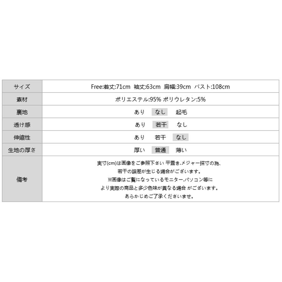 | サイズ | Free: 着丈 71cm 袖丈 63cm 肩幅 39cm バスト 108cm |