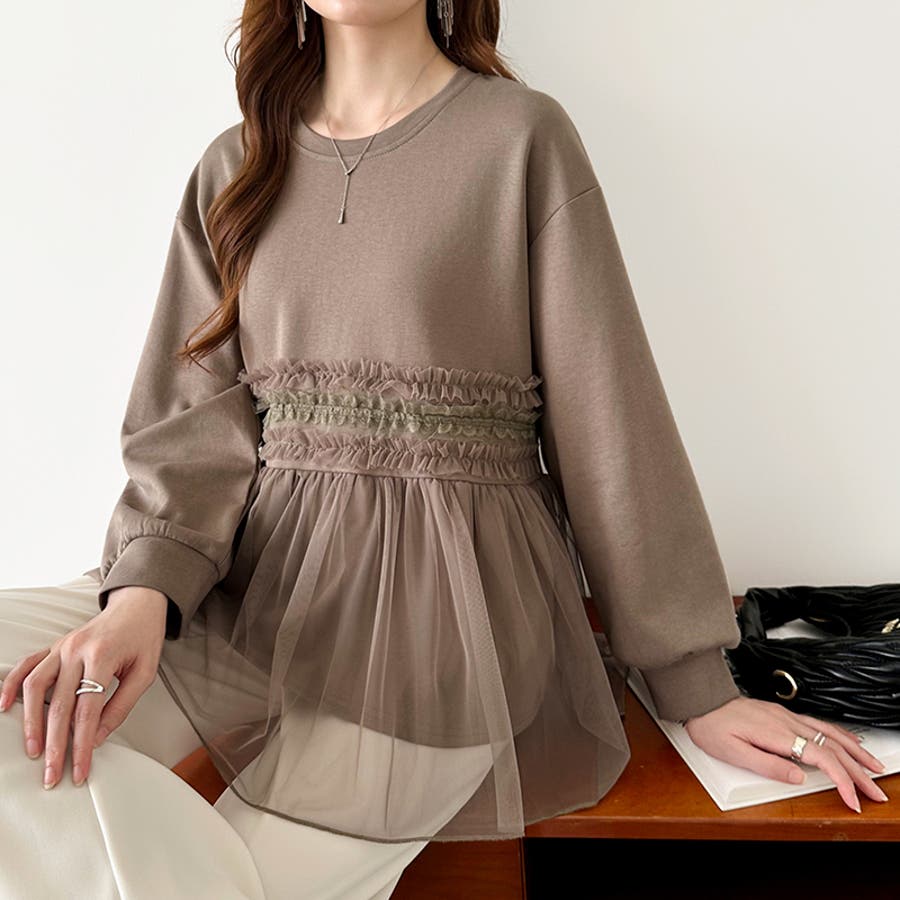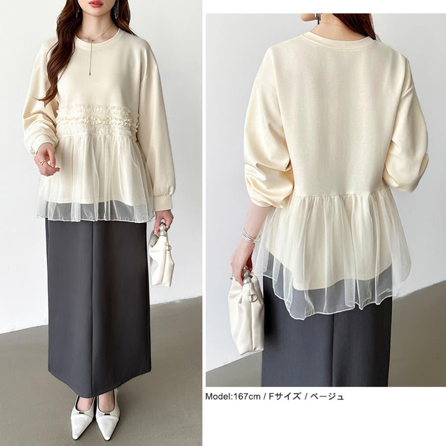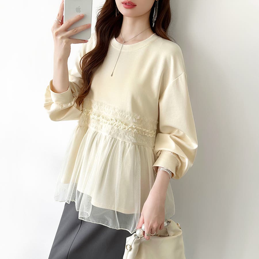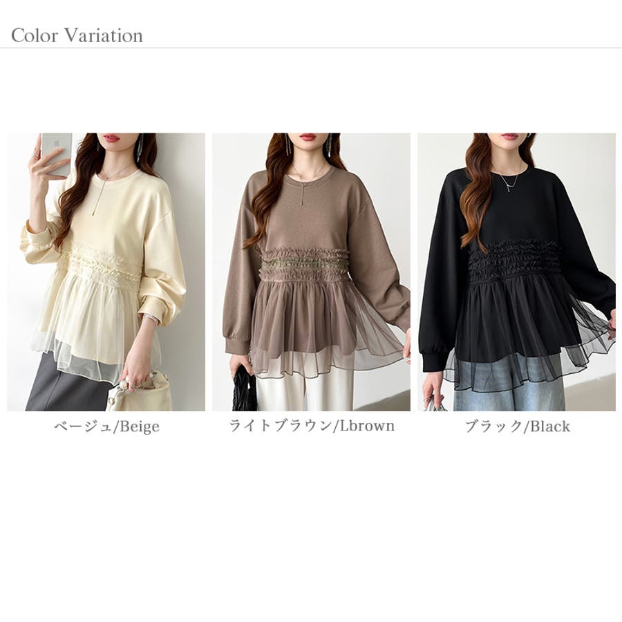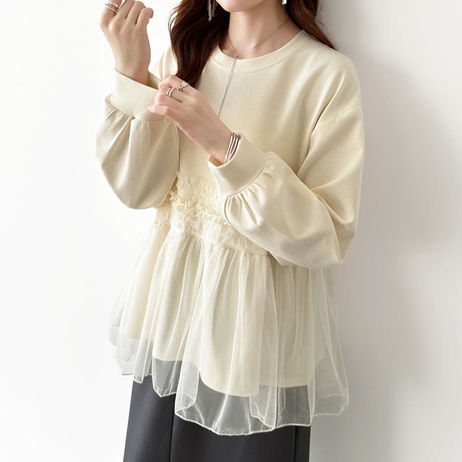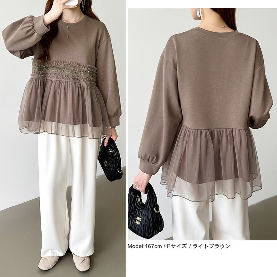 チュール ドッキング ペプラム トップス レディース 長袖 ダンボール プルオーバー フリル ペプラムトップス トレーナー カットソー レース ダンボールスウェット スウェット クルーネック 体型カバー チュールトップス オーガンジー ゆったり ドロップショルダー チュールドッキング ドッキングプルオーバー チュールドッキングトップス 切り替え 切替 異素材 異素材カットソー 異素材トップス ラウンドネック 透け 透け感 シンプル 無地 長袖トップス tops 着回し 着まわし 伸縮性 伸びる ストレッチ コットン 綿 ポリエステル チクチクしない ちくちくしない 1枚で決まる 洗える 手洗い 手洗い可能 洗濯できる 洗濯 洗濯可能 洗濯可 通勤 通学 おでかけ お出かけ 旅行 服装 カジュアル フェミニン バレエコア 大人 オトナ かわいい 可愛い 大人可愛い 大人かわいい おしゃれ オシャレ 女性 母 ママ ママコーデ プチプラ 高見え トレンド コーデ コーディネート ヒット 商品 おすすめ 服 ファッション フリーサイズ フリー サイズ ベージュ ライトブラウン ブラウン 茶色 ブラック 黒 ピンク ネイビー 紺 紺色 カラー 秋色 レディース秋 レディース冬 レディース秋冬 レディース秋物 レディース秋冬トップス 秋トップス 冬トップス 長袖レディース 長袖トップスレディース 秋トップスレディース カットソーレディース 新作 秋冬 春 秋 冬 春服 秋服 冬服 秋物 冬物 春用 秋用 冬用 韓国 韓国ファッション 10代 20代 30代 40代 50代 cocomomo ココモモ