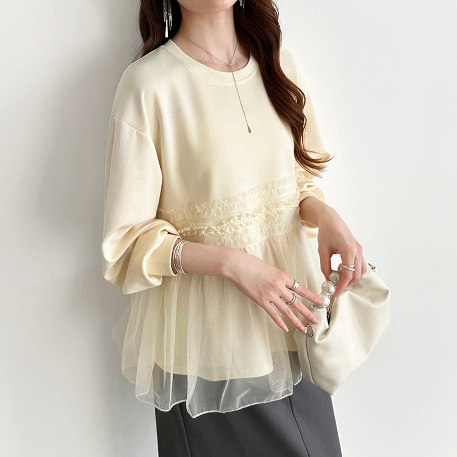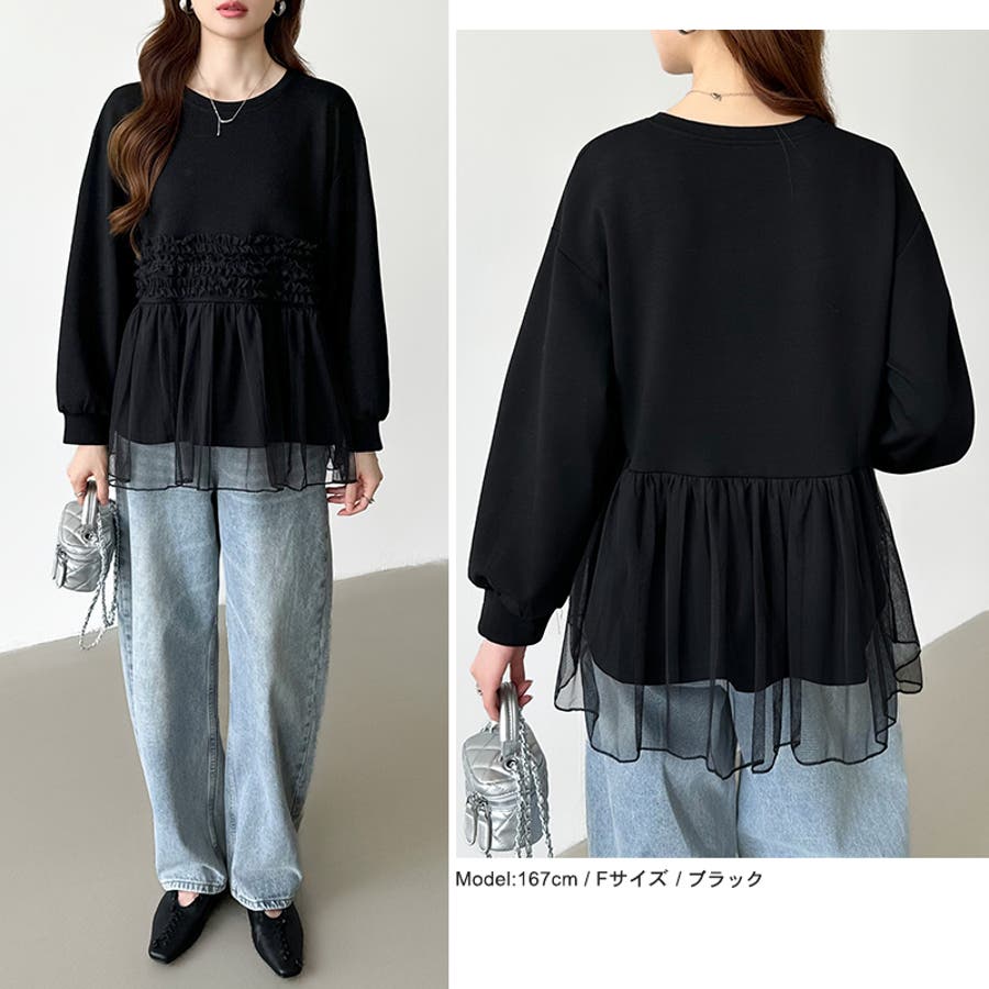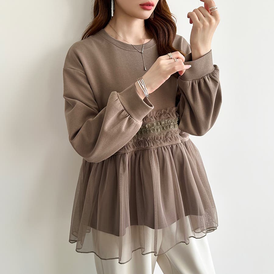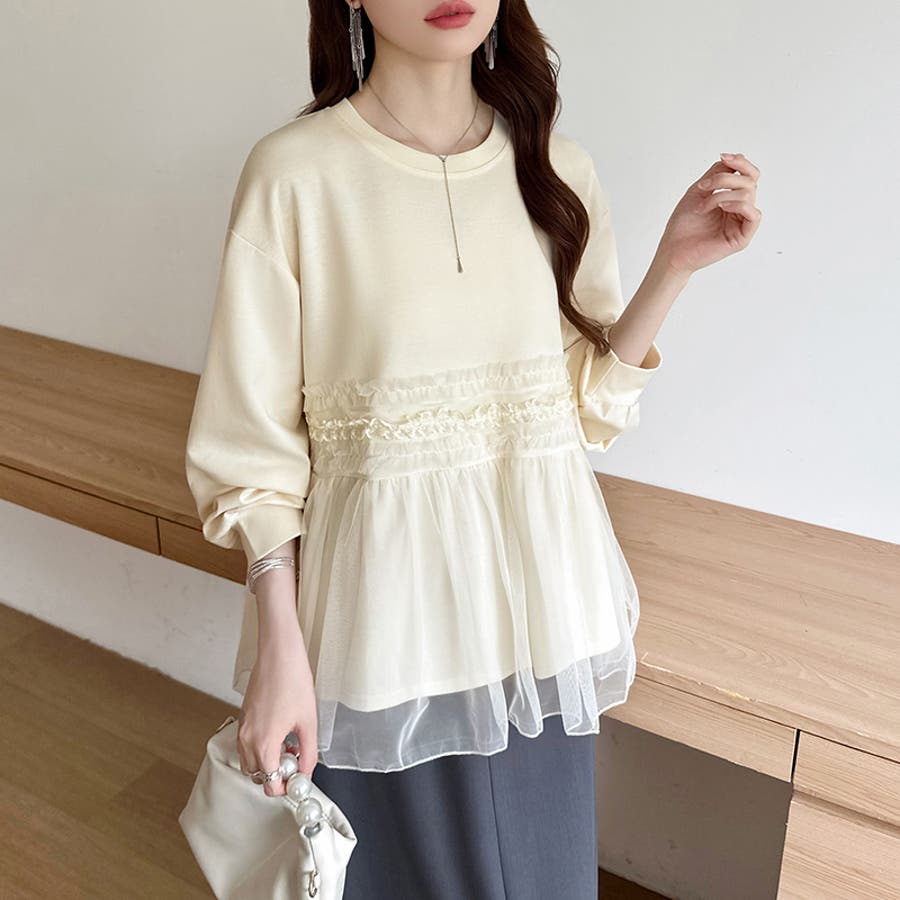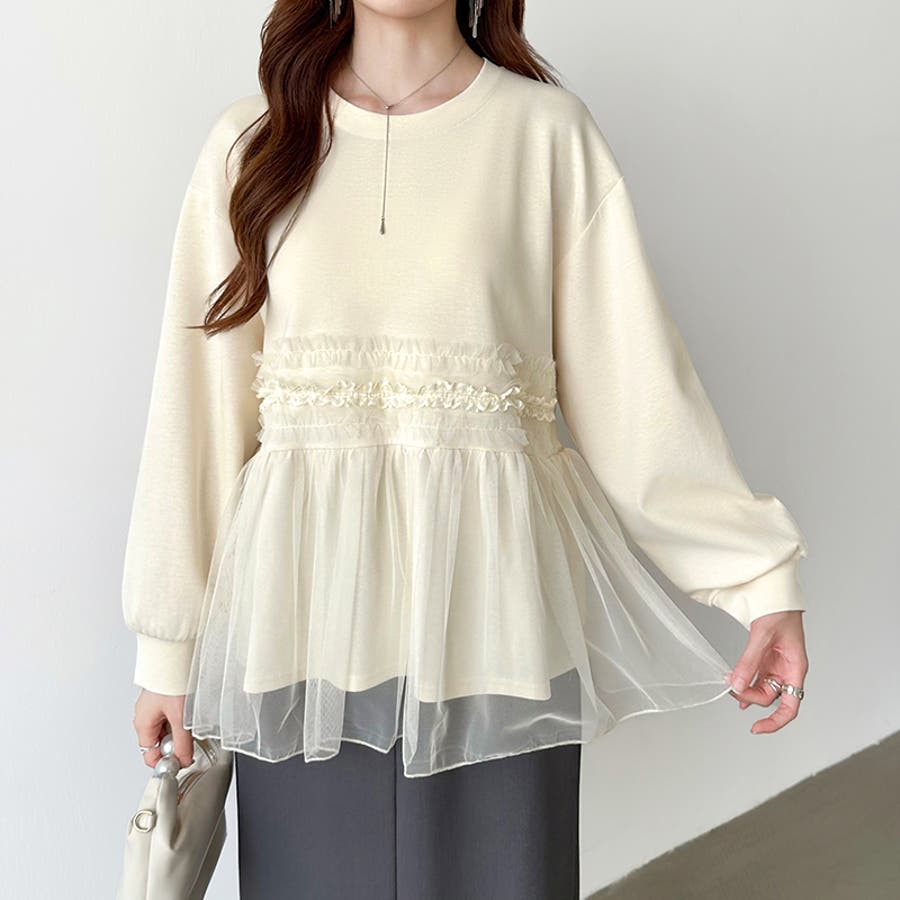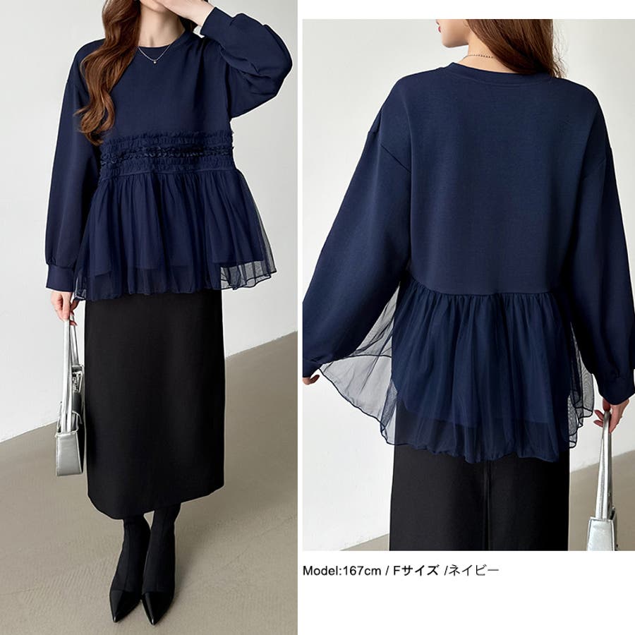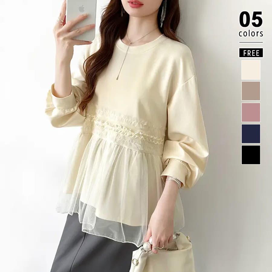 チュール ドッキング ペプラム トップス レディース 長袖 ダンボール プルオーバー フリル ペプラムトップス トレーナー カットソー レース ダンボールスウェット スウェット クルーネック 体型カバー チュールトップス オーガンジー ゆったり ドロップショルダー チュールドッキング ドッキングプルオーバー チュールドッキングトップス 切り替え 切替 異素材 異素材カットソー 異素材トップス ラウンドネック 透け 透け感 シンプル 無地 長袖トップス tops 着回し 着まわし 伸縮性 伸びる ストレッチ コットン 綿 ポリエステル チクチクしない ちくちくしない 1枚で決まる 洗える 手洗い 手洗い可能 洗濯できる 洗濯 洗濯可能 洗濯可 通勤 通学 おでかけ お出かけ 旅行 服装 カジュアル フェミニン バレエコア 大人 オトナ かわいい 可愛い 大人可愛い 大人かわいい おしゃれ オシャレ 女性 母 ママ ママコーデ プチプラ 高見え トレンド コーデ コーディネート ヒット 商品 おすすめ 服 ファッション フリーサイズ フリー サイズ ベージュ ライトブラウン ブラウン 茶色 ブラック 黒 ピンク ネイビー 紺 紺色 カラー 秋色 レディース秋 レディース冬 レディース秋冬 レディース秋物 レディース秋冬トップス 秋トップス 冬トップス 長袖レディース 長袖トップスレディース 秋トップスレディース カットソーレディース 新作 秋冬 春 秋 冬 春服 秋服 冬服 秋物 冬物 春用 秋用 冬用 韓国 韓国ファッション 10代 20代 30代 40代 50代 cocomomo ココモモ