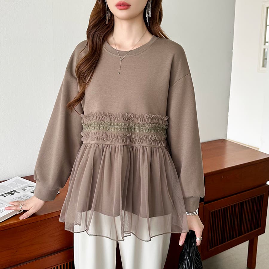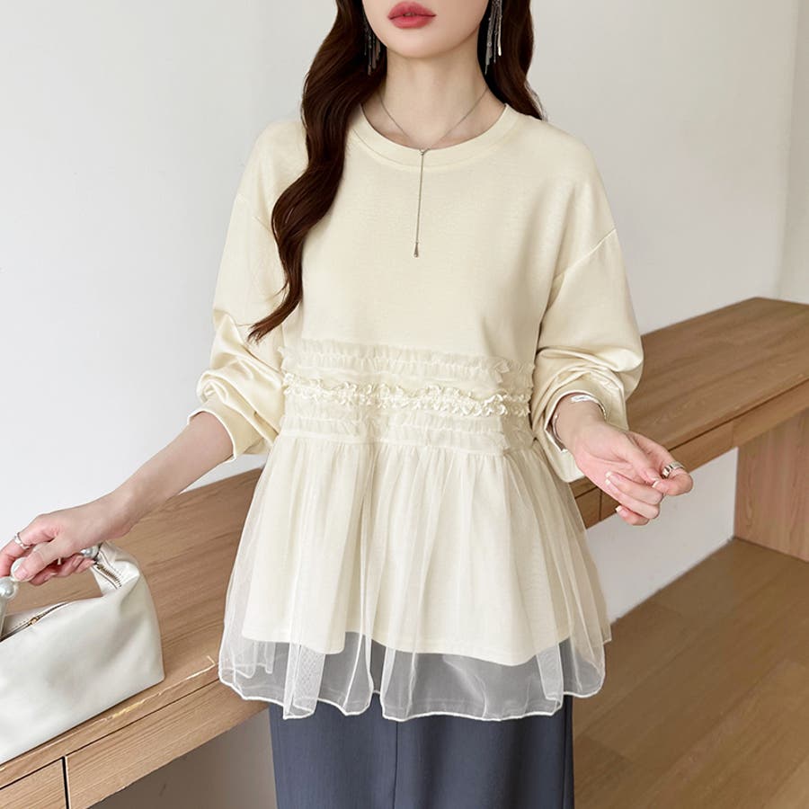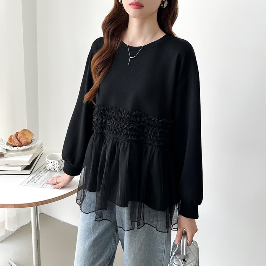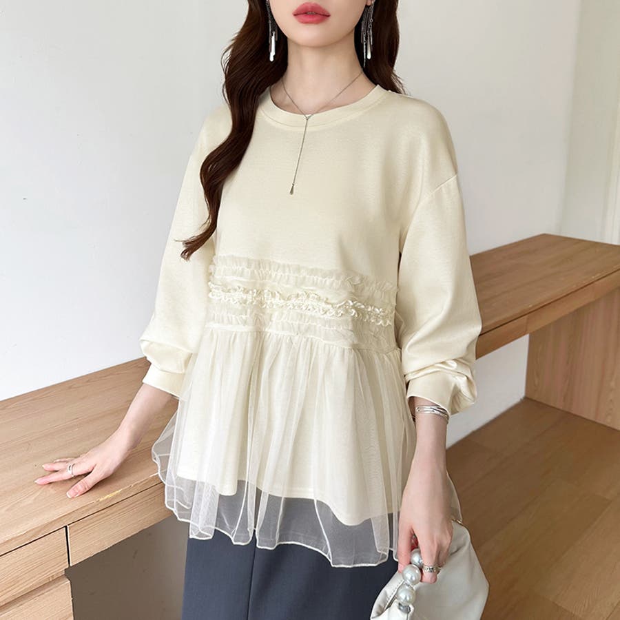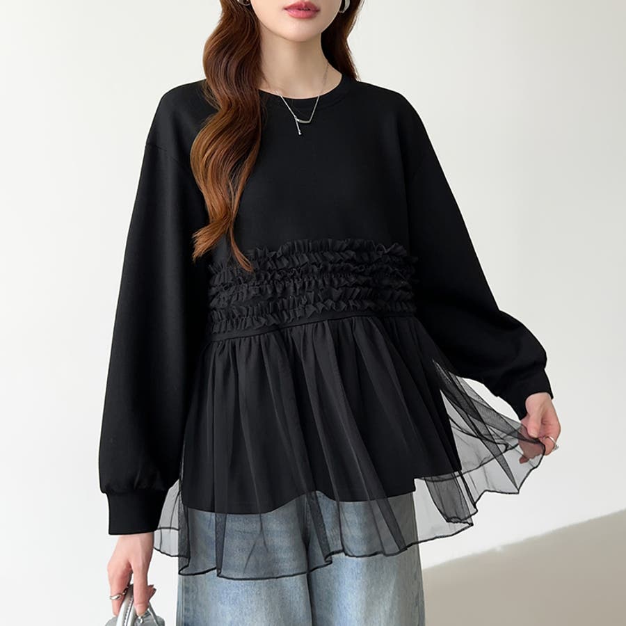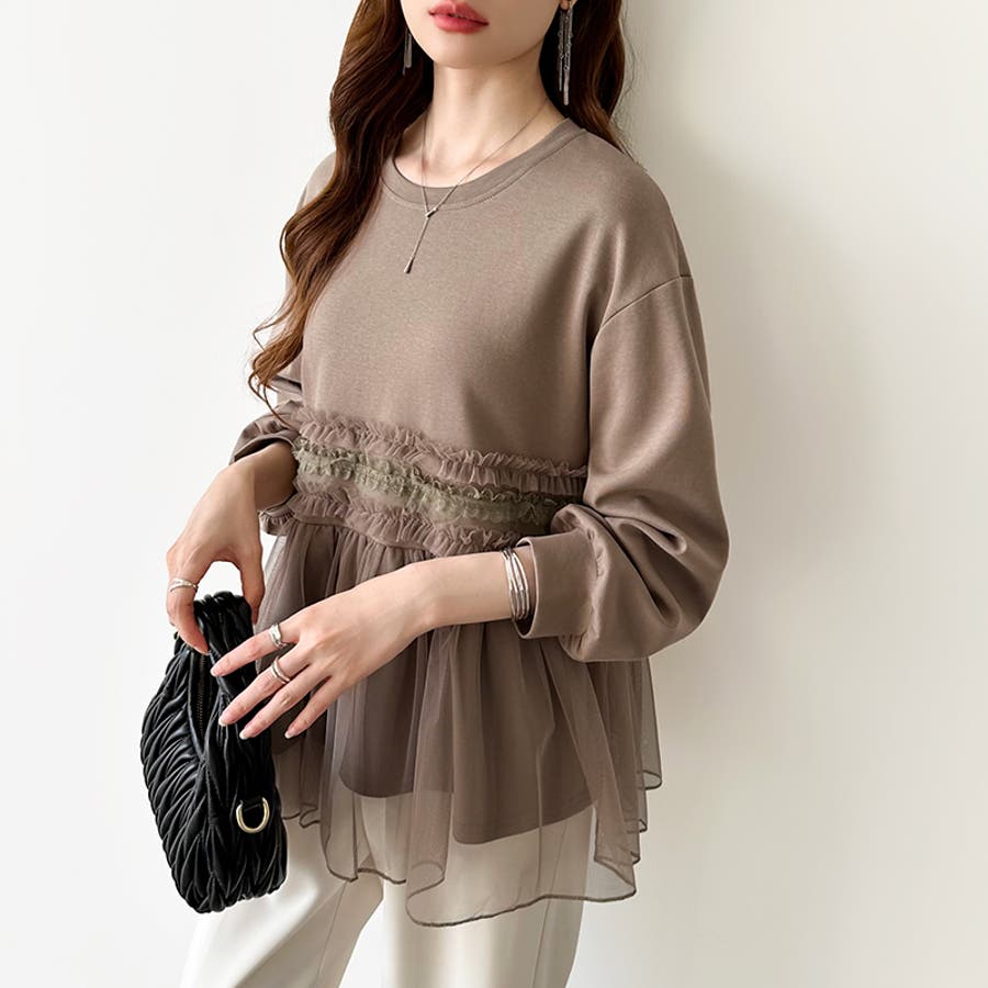チュール ドッキング ペプラム トップス レディース 長袖 ダンボール プルオーバー フリル ペプラムトップス トレーナー カットソー レース ダンボールスウェット スウェット クルーネック 体型カバー チュールトップス オーガンジー ゆったり ドロップショルダー チュールドッキング ドッキングプルオーバー チュールドッキングトップス 切り替え 切替 異素材 異素材カットソー 異素材トップス ラウンドネック 透け 透け感 シンプル 無地 長袖トップス tops 着回し 着まわし 伸縮性 伸びる ストレッチ コットン 綿 ポリエステル チクチクしない ちくちくしない 1枚で決まる 洗える 手洗い 手洗い可能 洗濯できる 洗濯 洗濯可能 洗濯可 通勤 通学 おでかけ お出かけ 旅行 服装 カジュアル フェミニン バレエコア 大人 オトナ かわいい 可愛い 大人可愛い 大人かわいい おしゃれ オシャレ 女性 母 ママ ママコーデ プチプラ 高見え トレンド コーデ コーディネート ヒット 商品 おすすめ 服 ファッション フリーサイズ フリー サイズ ベージュ ライトブラウン ブラウン 茶色 ブラック 黒 ピンク ネイビー 紺 紺色 カラー 秋色 レディース秋 レディース冬 レディース秋冬 レディース秋物 レディース秋冬トップス 秋トップス 冬トップス 長袖レディース 長袖トップスレディース 秋トップスレディース カットソーレディース 新作 秋冬 春 秋 冬 春服 秋服 冬服 秋物 冬物 春用 秋用 冬用 韓国 韓国ファッション 10代 20代 30代 40代 50代 cocomomo ココモモ