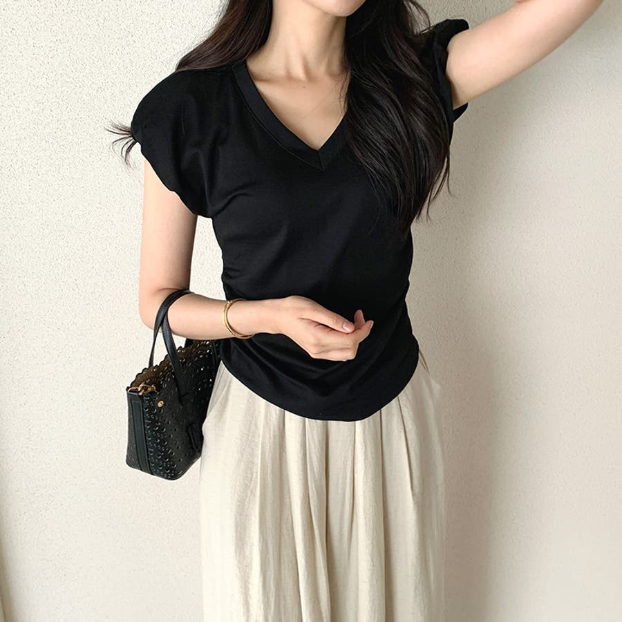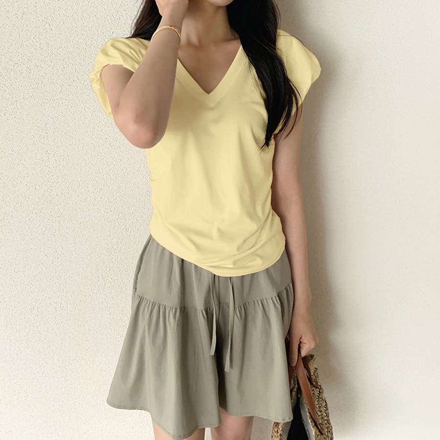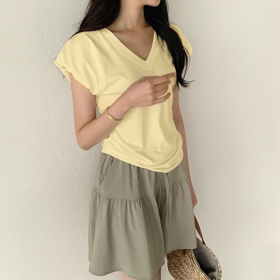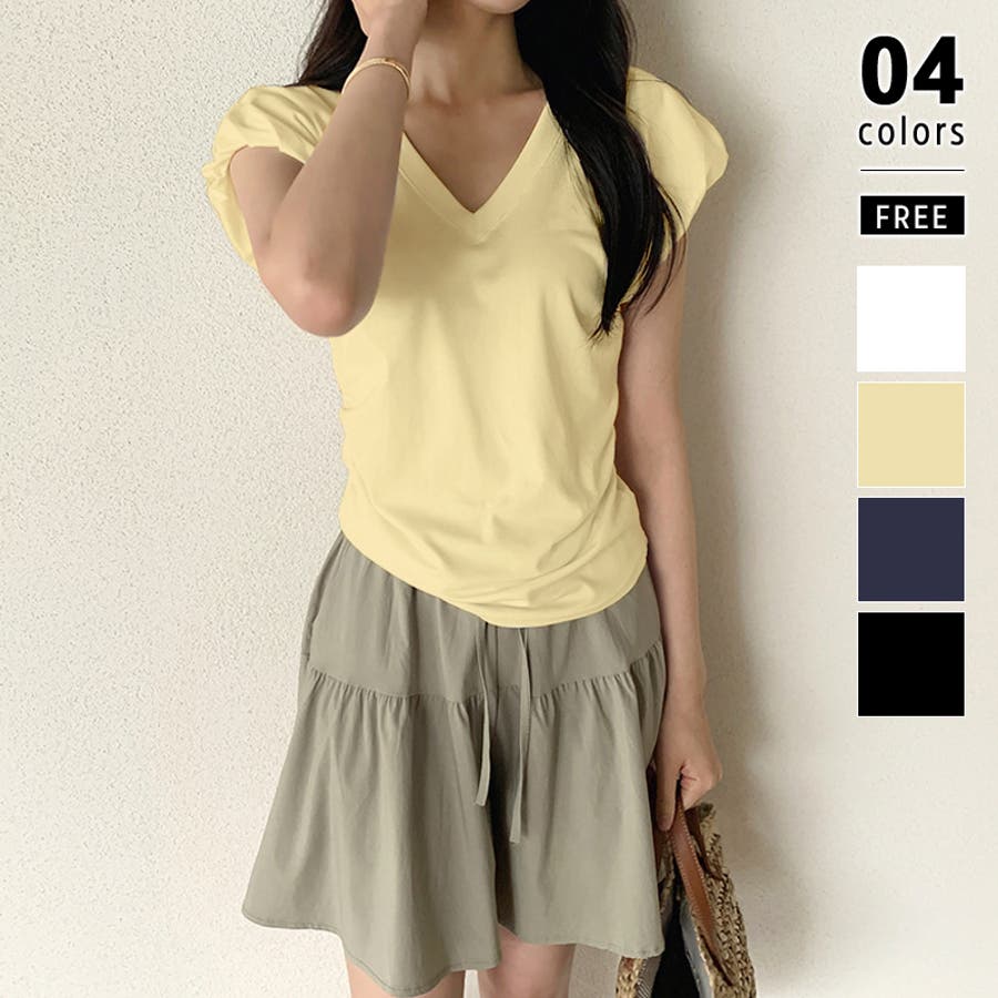 サイドギャザートップス Tシャツ パフスリーブ レディース vネック サイドギャザー カットソー ギャザー トップス おしゃれ 無地 半袖 フレンチスリーブ 大人 パフスリーブTシャツ vネックカットソー Vネック vネックTシャツ スリム vネックトップス ウエスト サイド フレンチスリーブTシャツ フレンチTシャツ プルオーバー きれいめ tシャツ 半袖Tシャツ ティーシャツ 伸縮性 ストレッチ シンプル コットン 綿 綿混 細見え 華奢見え 華奢 着痩せ 楽 楽ちん tops 洗える 洗濯機で洗える 手洗い 手洗い可能 洗濯できる 洗濯 洗濯可能 洗濯可 大人カジュアル 大人可愛いトップス オフィス オフィスカジュアル オフィスカジュアル春夏 オフィカジ カジュアル きれい め 綺麗め キレイめ 大人 かわいい 可愛い 大人可愛い オシャレ プチプラ 高見え トレンド ヒット 商品 おすすめ ファッション コーデ コーディネート 母 ママ ママコーデ 女性 服 服装 フリーサイズ フリー サイズ ホワイト 白 イエロー 黄色 ネイビー 紺 紺色 ブラック 黒 カラー レディース春夏 レディース春物 レディース夏物 レディース夏 レディース春 春トップス 夏トップス 夏Tシャツレディース トップスレディース 半袖トップスレディース トップスレディース 春物 夏物 春用 夏用 春夏 春 夏 春服 夏服 韓国 韓国ファッション 10代 20代 30代 40代 50代 60代 cocomomo ココモモ