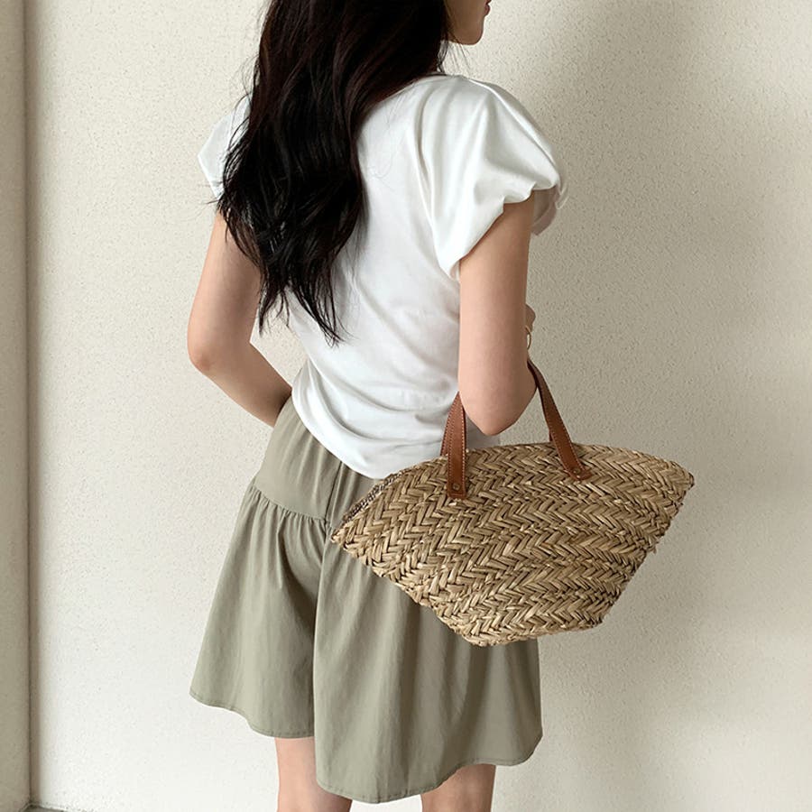 サイドギャザートップス パフスリーブ Tシャツ