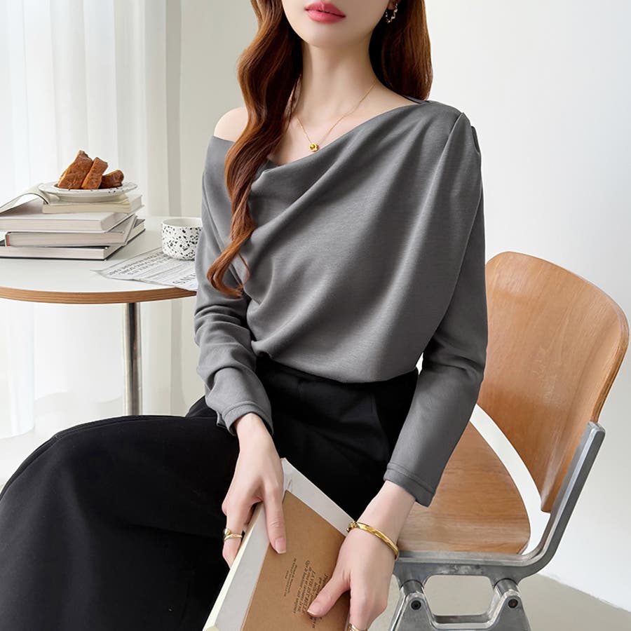 オフショルダードレープトップス。