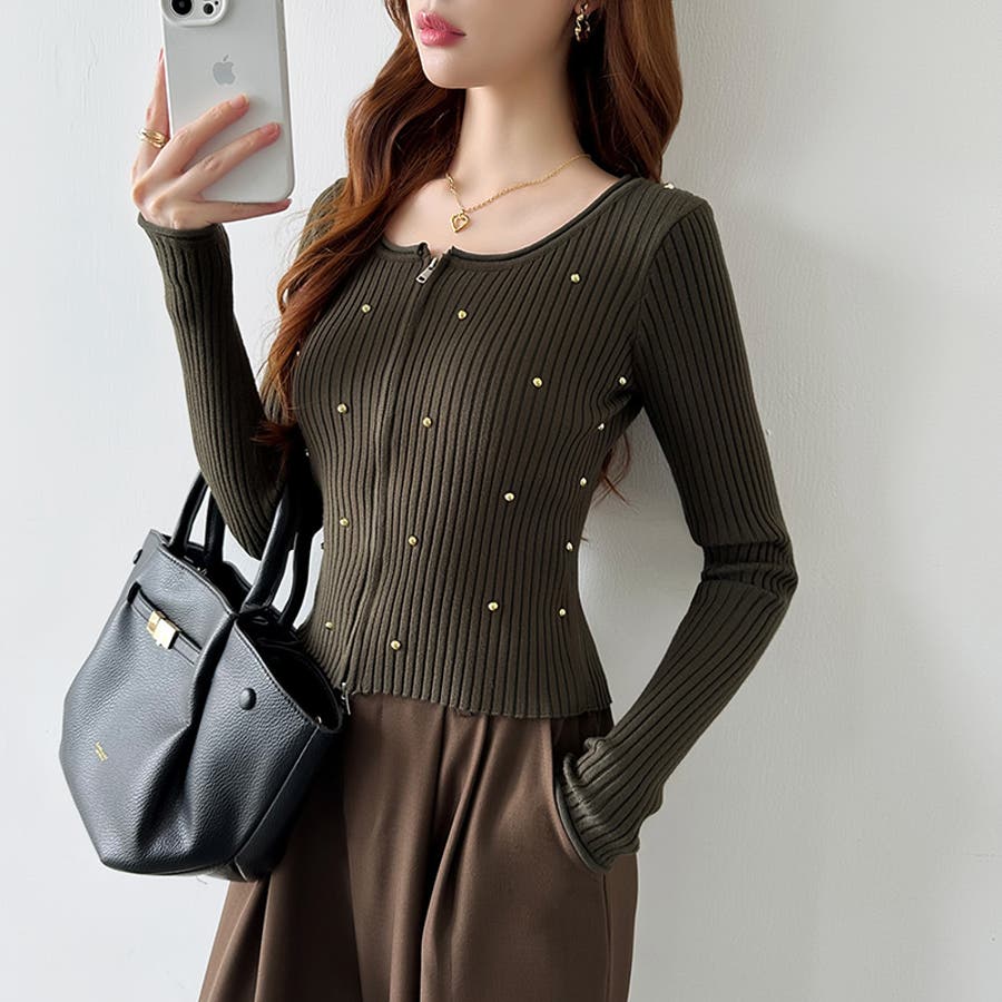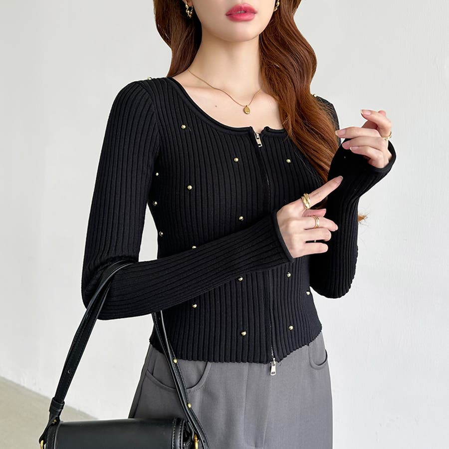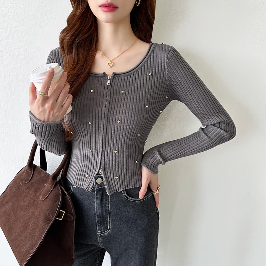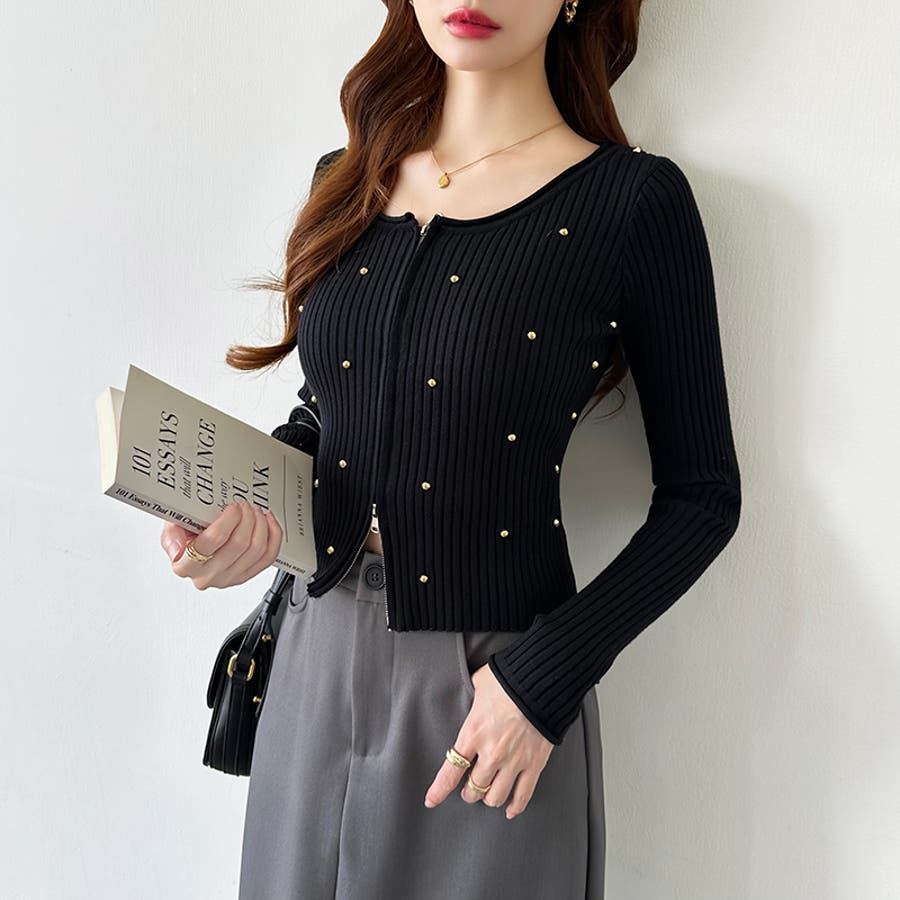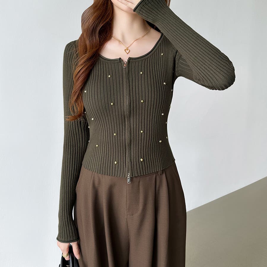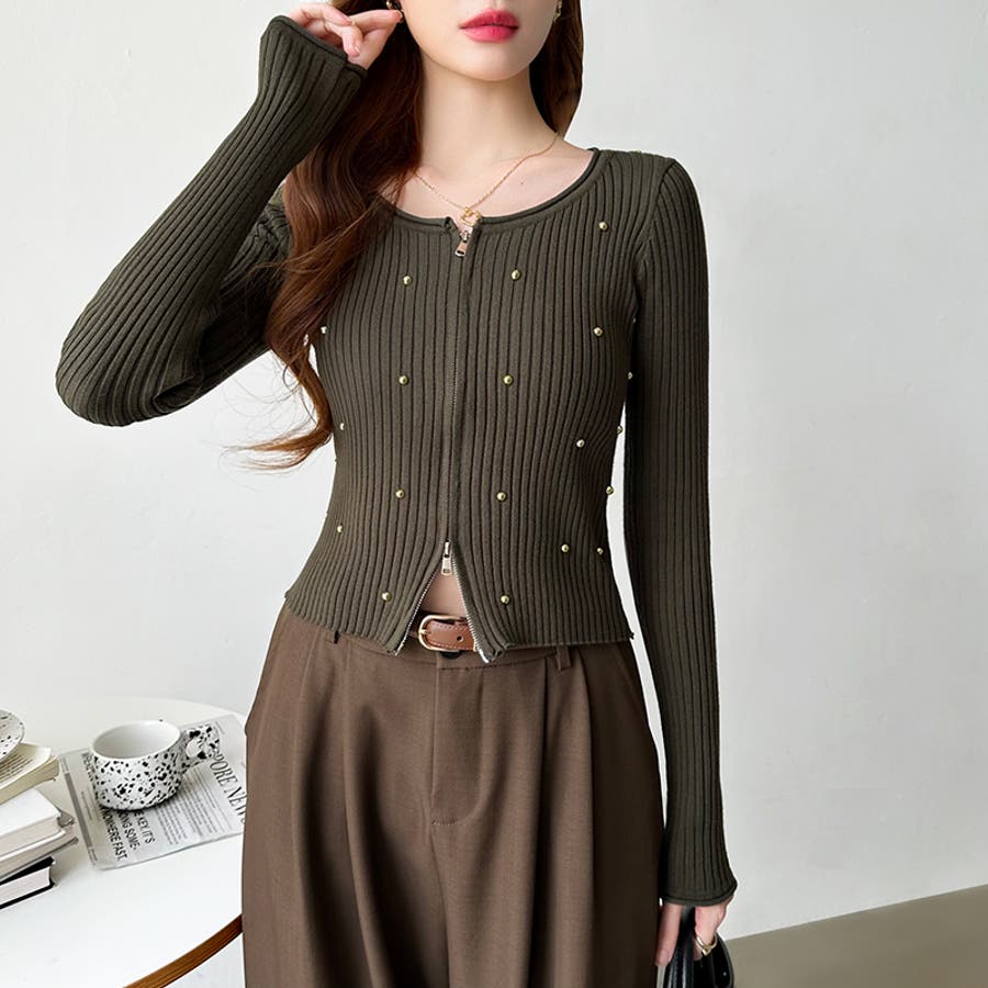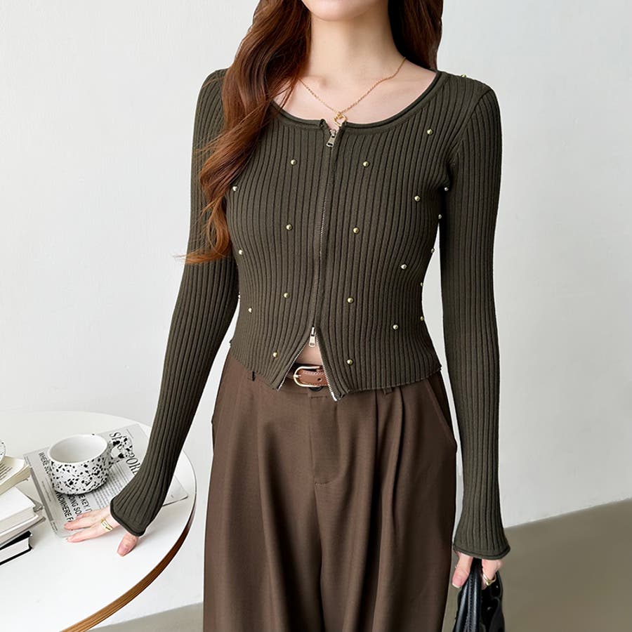 ダブルジップ ニット リブニット 長袖 トップス ショート カーディガン レディース スタッズ ニットトップス ジップ ジップアップ ショート丈 リブ カットソー 羽織 ショートトップス クロップド ニットカーディガン ショートカーディガン ジップカーディガン ショート丈トップス 丈 クロップド丈 暖かい クルーネック ニットセーター セーター ファスナー 羽織り 羽織りもの へそ出し ヘソ出し 短丈 短丈トップス 金スタッズ ゴールドスタッズ tops 着回し シンプル 無地 伸縮性 ストレッチ フィット タイト 襟なし 前開き ヤク風 ヤク風ニット しっかり 柔らかい やわらかい やわらか なめらか ふんわり ふわ ふわふわ もちもちニット ソフトな肌触り もちもち 暖 温かい 暖か あったかい あったか あたたかい おでかけ お出かけ 旅行 服装 カジュアル セクシー 大人 大人かわいい 大人可愛い かわいい 可愛い おしゃれ オシャレ 女性プチプラ 高見え トレンド ヒット 商品 おすすめ 服 ファッション コーデ コーディネート ベージュ パープル 紫 レッド グレー 灰色 ダークブラウン ブラウン 茶色 ダークグリーン グリーン カーキ 緑 ブラック 黒 カラー 秋色 レディーストップス きれい色 秋ニット 秋トップス 秋トップスレディース 冬トップス 冬ニット 長袖トップス 長袖トップスレディース レディース秋冬 レディース秋物 レディース秋冬トップス レディース冬 秋トップス 羽織りものレディース ショート丈トップスレディース 新作 秋冬 春 秋 冬 春服 秋服 冬服 秋物 秋用 韓国 韓国ファッション 10代 20代 30代 40代 50代 cocomomo ココモモ