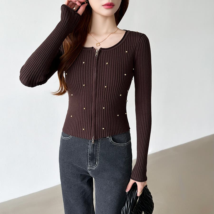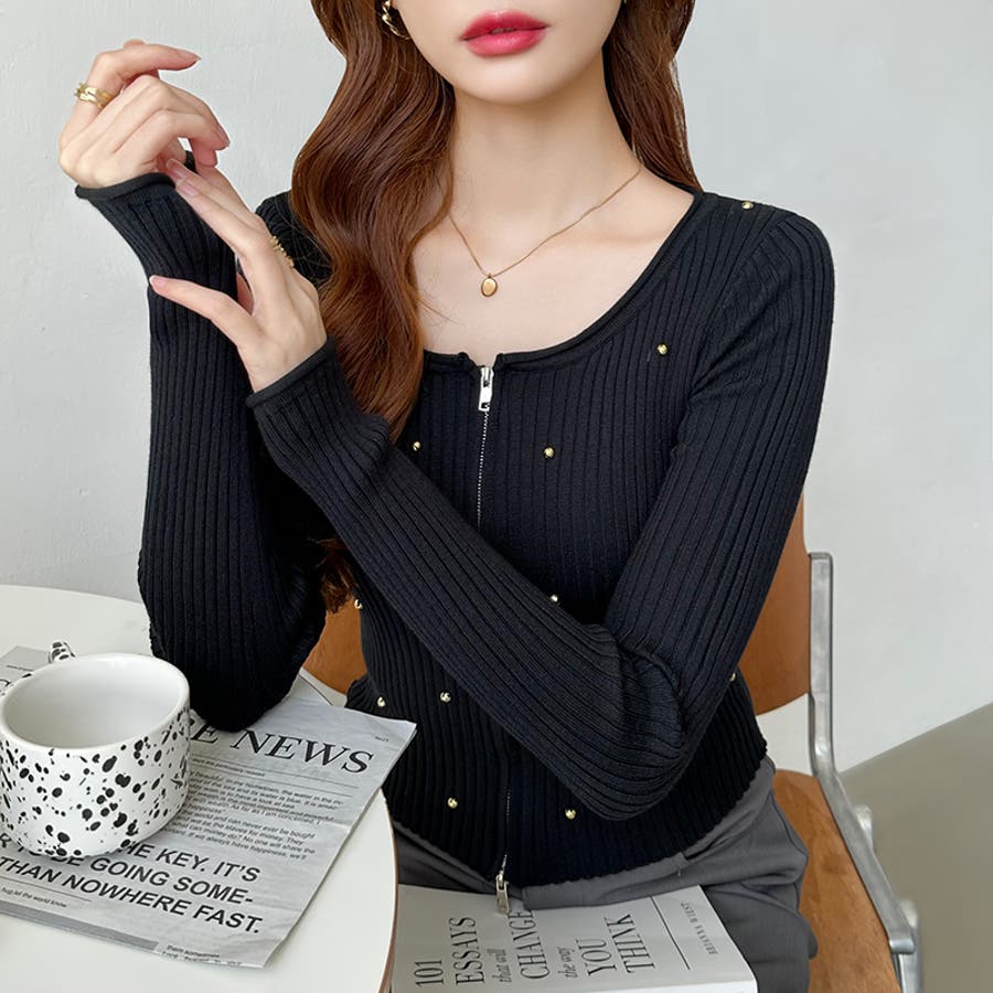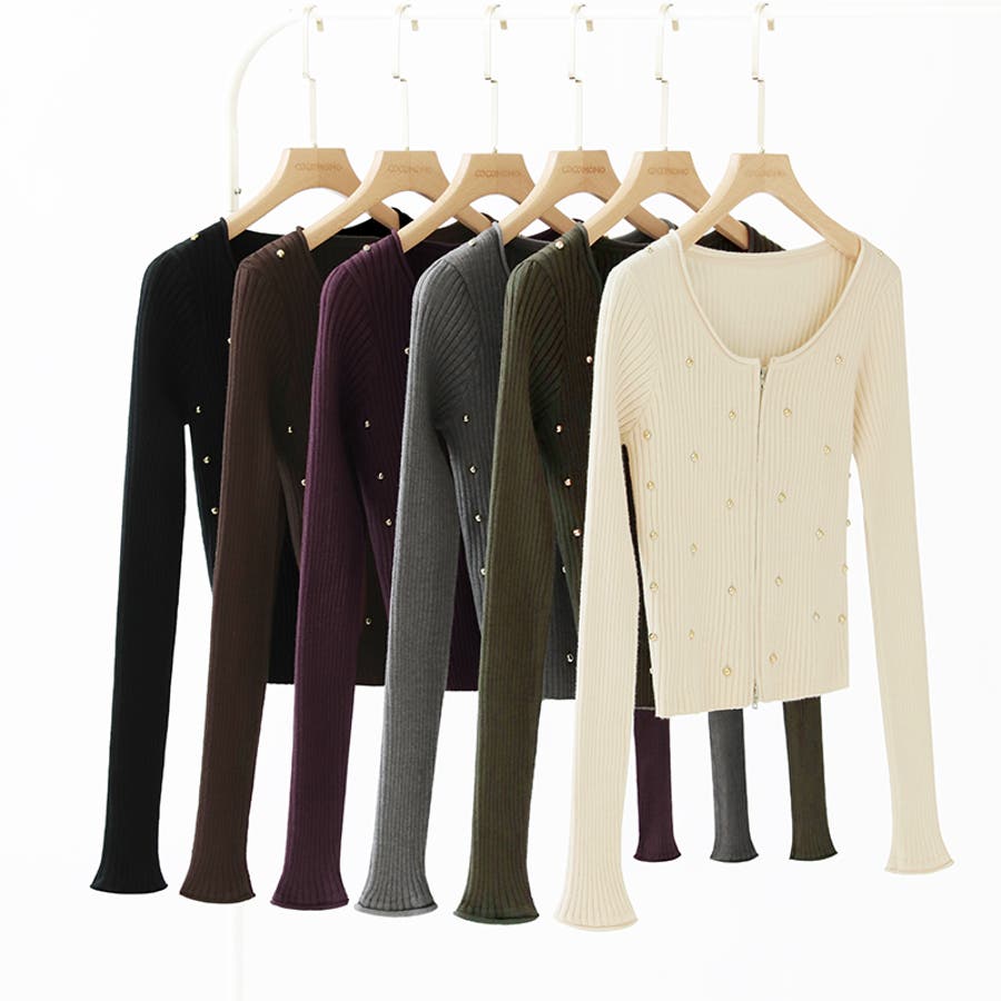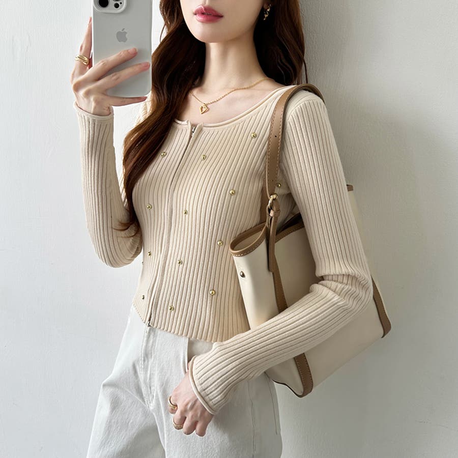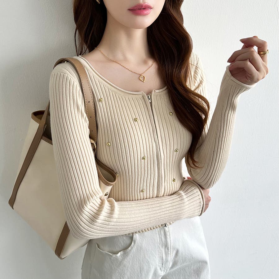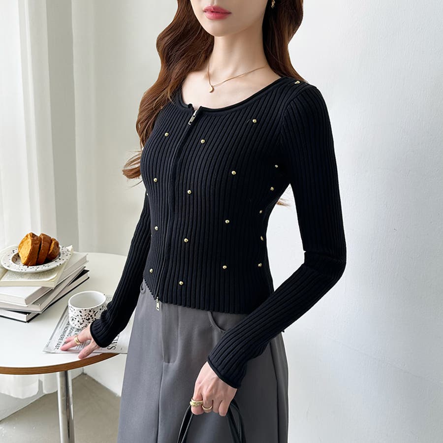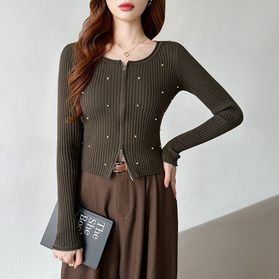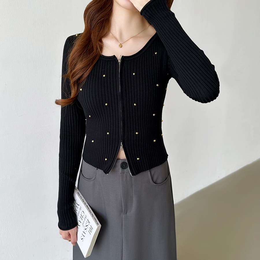 ダブルジップ ニット リブニット 長袖 トップス ショート カーディガン レディース スタッズ ニットトップス ジップ ジップアップ ショート丈 リブ カットソー 羽織 ショートトップス クロップド ニットカーディガン ショートカーディガン ジップカーディガン ショート丈トップス 丈 クロップド丈 暖かい クルーネック ニットセーター セーター ファスナー 羽織り 羽織りもの へそ出し ヘソ出し 短丈 短丈トップス 金スタッズ ゴールドスタッズ tops 着回し シンプル 無地 伸縮性 ストレッチ フィット タイト 襟なし 前開き ヤク風 ヤク風ニット しっかり 柔らかい やわらかい やわらか なめらか ふんわり ふわ ふわふわ もちもちニット ソフトな肌触り もちもち 暖 温かい 暖か あったかい あったか あたたかい おでかけ お出かけ 旅行 服装 カジュアル セクシー 大人 大人かわいい 大人可愛い かわいい 可愛い おしゃれ オシャレ 女性プチプラ 高見え トレンド ヒット 商品 おすすめ 服 ファッション コーデ コーディネート ベージュ パープル 紫 レッド グレー 灰色 ダークブラウン ブラウン 茶色 ダークグリーン グリーン カーキ 緑 ブラック 黒 カラー 秋色 レディーストップス きれい色 秋ニット 秋トップス 秋トップスレディース 冬トップス 冬ニット 長袖トップス 長袖トップスレディース レディース秋冬 レディース秋物 レディース秋冬トップス レディース冬 秋トップス 羽織りものレディース ショート丈トップスレディース 新作 秋冬 春 秋 冬 春服 秋服 冬服 秋物 秋用 韓国 韓国ファッション 10代 20代 30代 40代 50代 cocomomo ココモモ