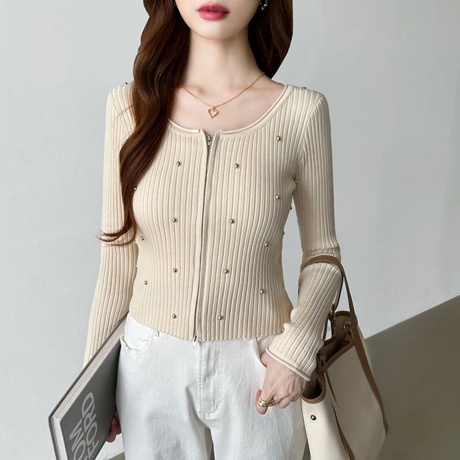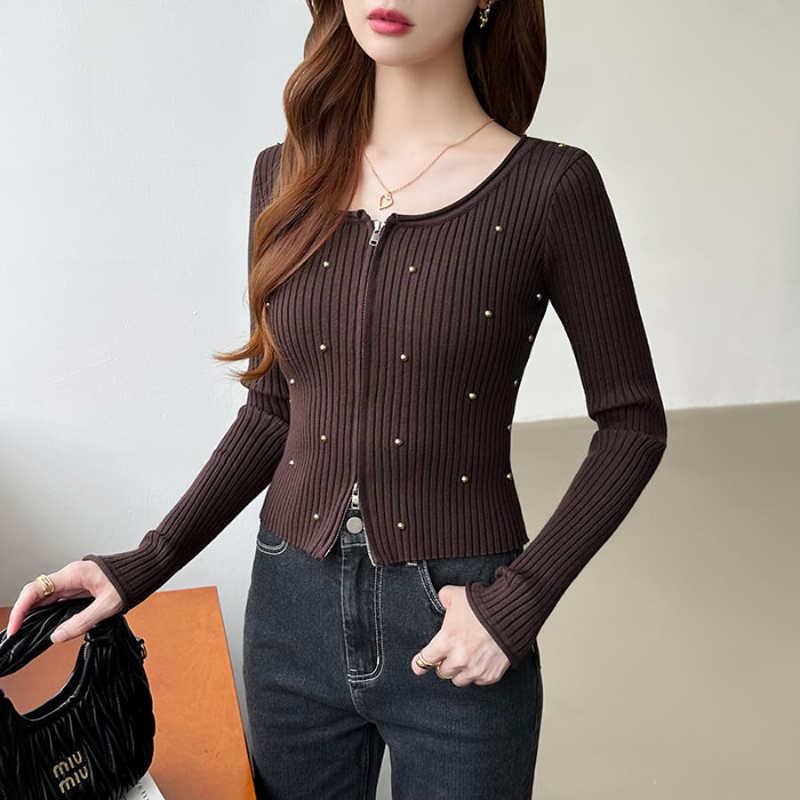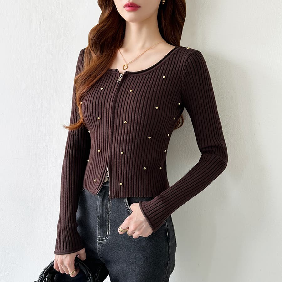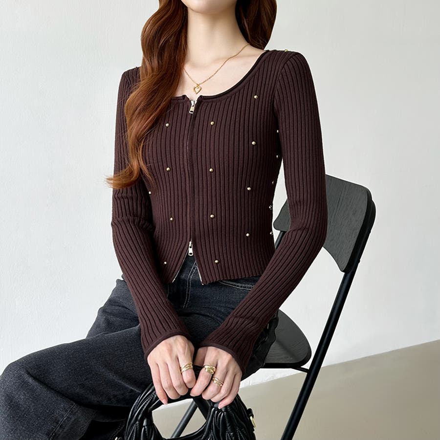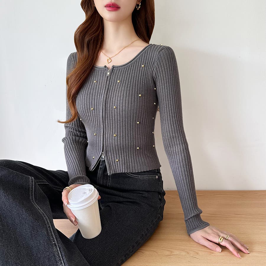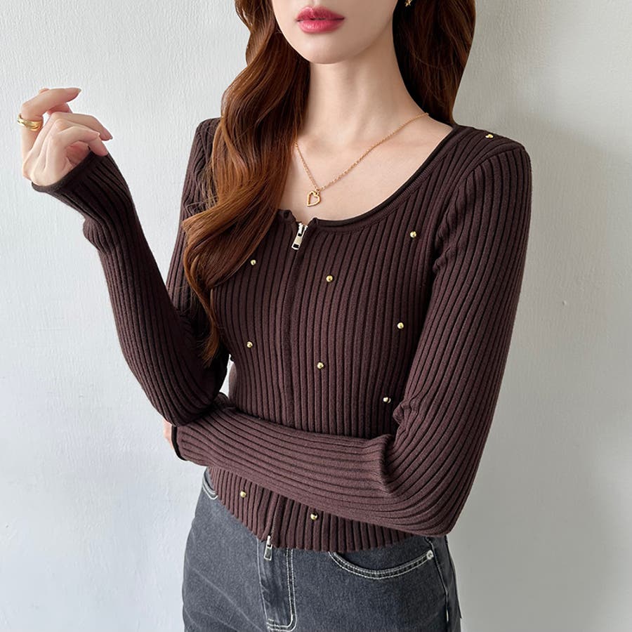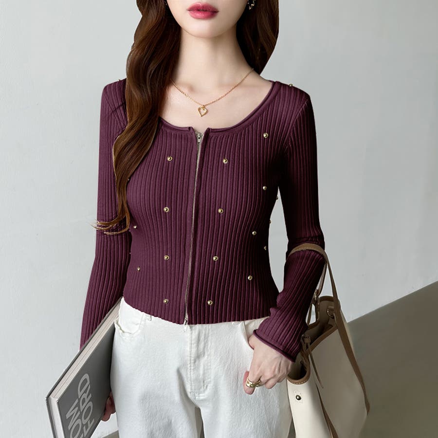 ダブルジップ ニット リブニット 長袖 トップス ショート カーディガン レディース スタッズ ニットトップス ジップ ジップアップ ショート丈 リブ カットソー 羽織 ショートトップス クロップド ニットカーディガン ショートカーディガン ジップカーディガン ショート丈トップス 丈 クロップド丈 暖かい クルーネック ニットセーター セーター ファスナー 羽織り 羽織りもの へそ出し ヘソ出し 短丈 短丈トップス 金スタッズ ゴールドスタッズ tops 着回し シンプル 無地 伸縮性 ストレッチ フィット タイト 襟なし 前開き ヤク風 ヤク風ニット しっかり 柔らかい やわらかい やわらか なめらか ふんわり ふわ ふわふわ もちもちニット ソフトな肌触り もちもち 暖 温かい 暖か あったかい あったか あたたかい おでかけ お出かけ 旅行 服装 カジュアル セクシー 大人 大人かわいい 大人可愛い かわいい 可愛い おしゃれ オシャレ 女性プチプラ 高見え トレンド ヒット 商品 おすすめ 服 ファッション コーデ コーディネート ベージュ パープル 紫 レッド グレー 灰色 ダークブラウン ブラウン 茶色 ダークグリーン グリーン カーキ 緑 ブラック 黒 カラー 秋色 レディーストップス きれい色 秋ニット 秋トップス 秋トップスレディース 冬トップス 冬ニット 長袖トップス 長袖トップスレディース レディース秋冬 レディース秋物 レディース秋冬トップス レディース冬 秋トップス 羽織りものレディース ショート丈トップスレディース 新作 秋冬 春 秋 冬 春服 秋服 冬服 秋物 秋用 韓国 韓国ファッション 10代 20代 30代 40代 50代 cocomomo ココモモ