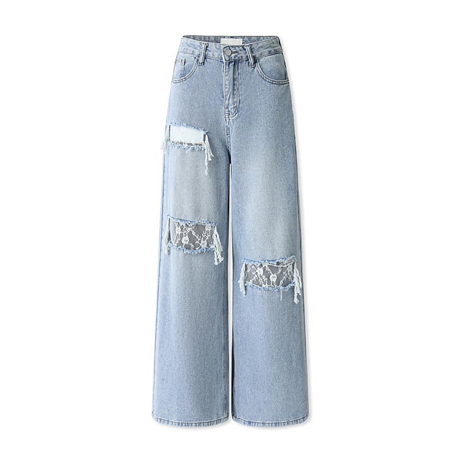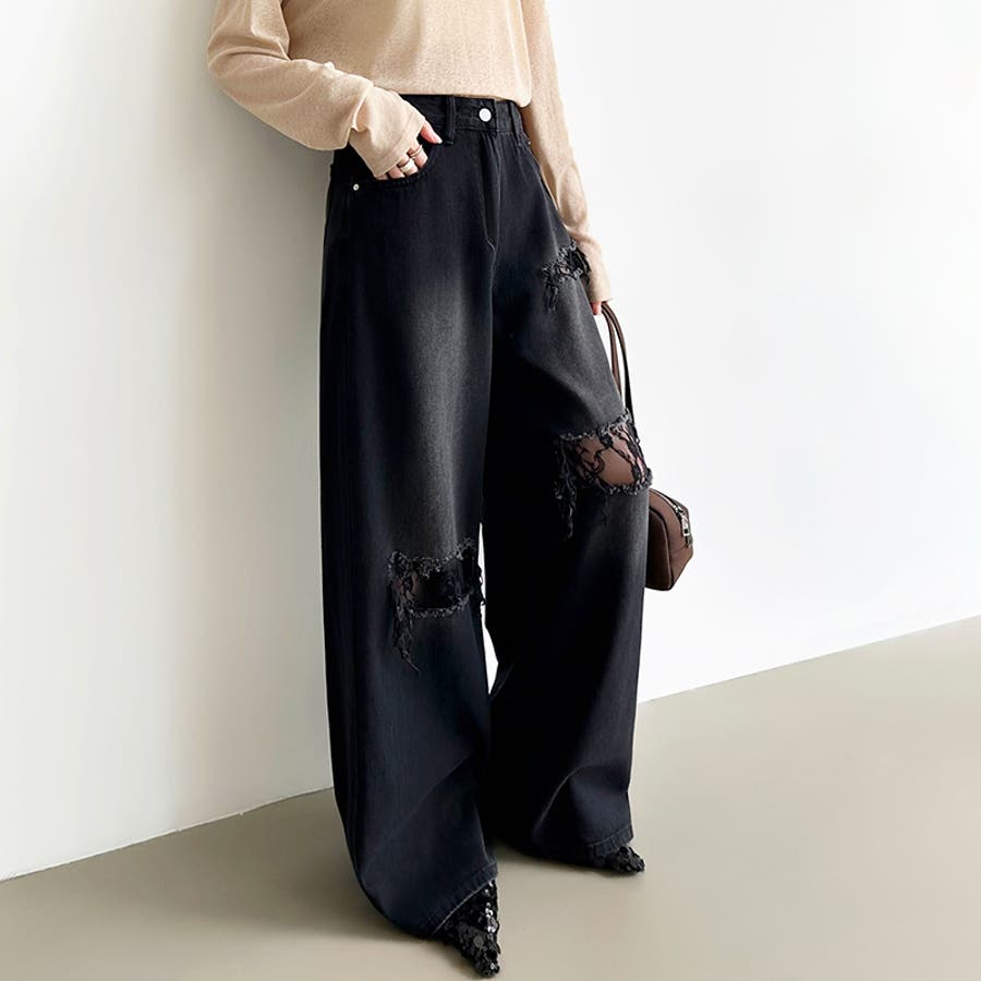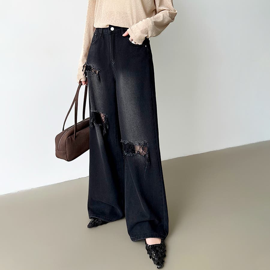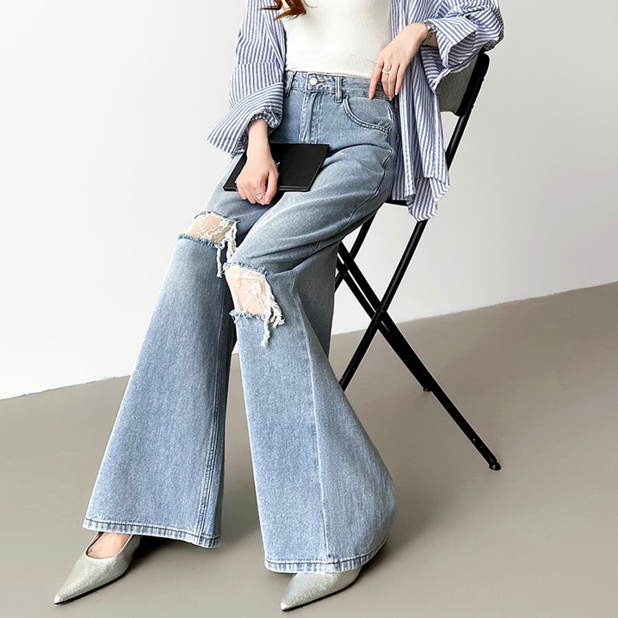ダメージレースデニム デニムパンツ ダメージジーンズ