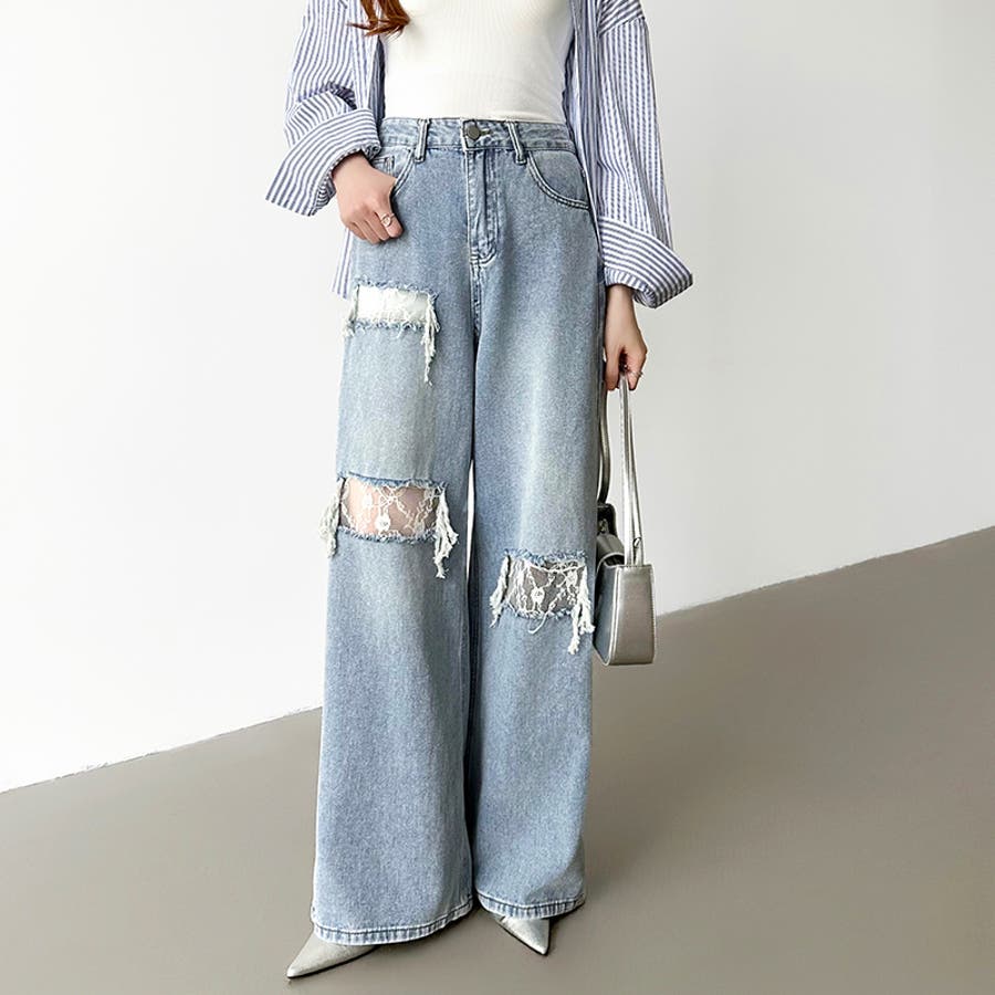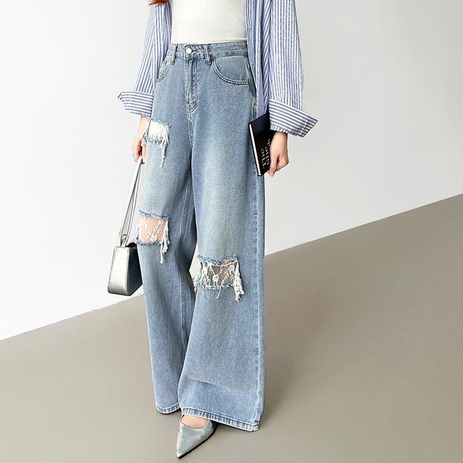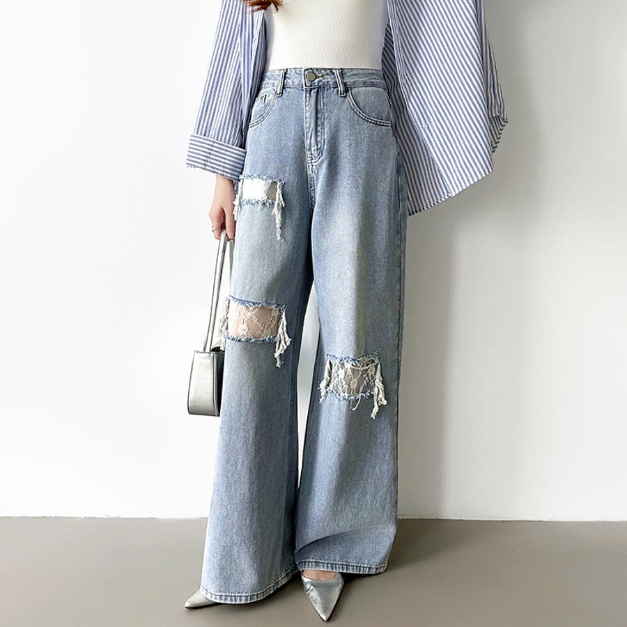 ダメージレースデニム デニムパンツ レース ダメージ ジーンズ レディース ワイド デニム パンツ ワイドパンツ ワイドデニムパンツ おしゃれ ゆったり ダメージデニム 穴あき ストレート クラッシュデニム 穴あきジーンズ レースデニム デニムレース ワイドデニム ハイウエスト ボトムス ダメージパンツ ジーパン ストレートデニム ストレートパンツ ストレートデニムパンツ デニムワイドパンツ 美シルエット 美脚デニム 大きめ 大きい 大きいサイズ 体型カバー 美脚スタイル ズボン 太もも ロング 長ズボン ロングパンツ ハイウエストパンツ ハイウエストデニム ハイウエストデニムパンツ ストレートワイドパンツ ワイドジーンズ ボトム カジュアルパンツ ダメージ加工 クラッシュ 色落ち 色落ち加工 ウォッシュ ウォッシュ加工 ヴィンテージ調 ヴィンテージ風 ビンテージ風 カバー 隠し 太ももゆったり ポケット ポケット付き おでかけ お出かけ 外出 旅行 イベント ストリート ギャル カジュアル かわいい 可愛い 大人可愛い 大人かわいい オシャレ 大人 母 ママ ママコーデ おすすめ トレンド ランキング 人気 コーデ コーディネート ワンツーコーデ ライトブルー ブルー 青 ブルージーンズ ブルーデニム ブラック 黒 ブラックデニム カラー s m l S M L サイズ Sサイズ Mサイズ Lサイズ 大きいサイズレディース ワイドデニムパンツレディース ワイドデニムレディース ストレートデニムレディース ジーンズレディース レディースデニム ストレートパンツレディース デニムワイドパンツレディース デニムパンツレディース デニムレディース レディースワイドパンツ ダメージジーンズレディース 新作 春夏 春 夏 秋 冬 春服 夏服 春物 夏物 春用 夏用 韓国 韓国ファッション 10代 20代 30代 40代 50代 cocomomo ココモモ