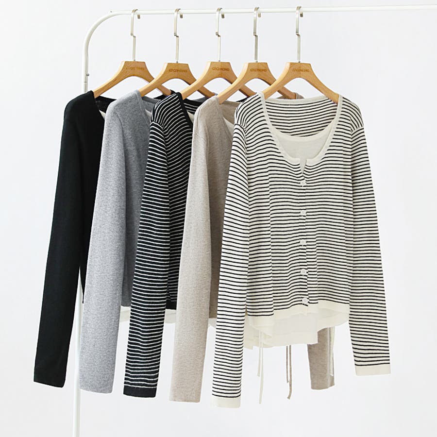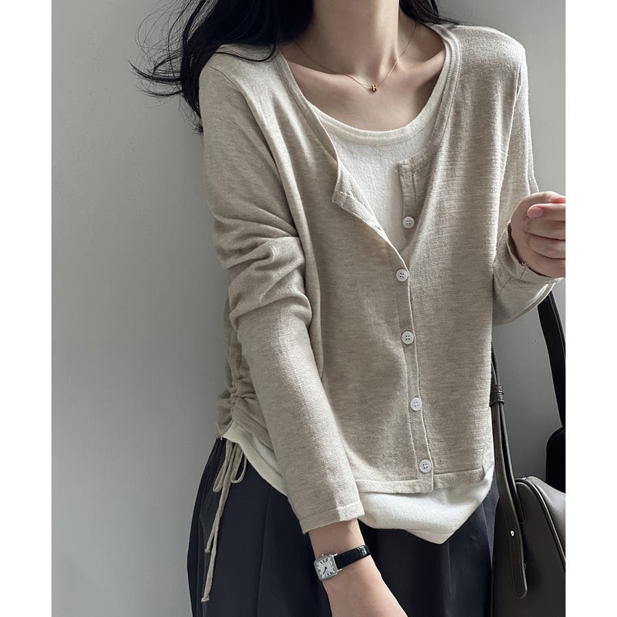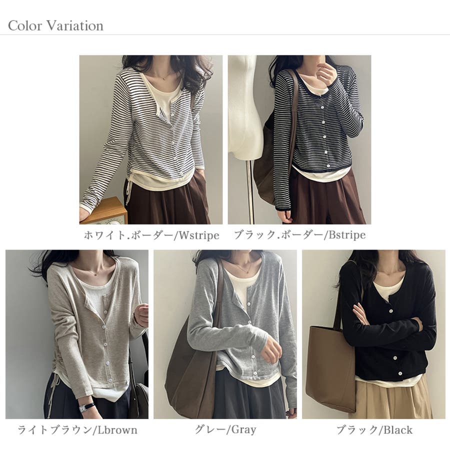 レイヤード風 ニット ボーダー 無地 レディース 長袖 カーディガン 重ね着風 レイヤード 風 トップス サイドギャザー ボーダーニット ボーダー柄 重ね着 ギャザー ギャザートップス サイド ラウンドヘム ドロスト 紐 リボン カットソー ニットトップス クルーネック 柔らかい 長袖トップス ニットセーター ボーダートップス やわらかニット ボタン クルーネック ラウンドネック tops 着回し ストレッチ 伸縮性 やわらかい やわらか なめらか おでかけ お出かけ 旅行 韓国風 韓国服 カジュアル 大人 大人かわいい 大人可愛い 大人カジュアル かわいい 可愛い おしゃれ オシャレ 女性 プチプラ 高見え トレンド ヒット 商品 おすすめ 服 服装 ファッション コーデ コーディネート フリー サイズ フリーサイズ ホワイト 白 ブラック 黒 白黒 ライトブラウン 茶色 グレー 灰色 カラー 秋色 きれい色 レディーストップス 秋ニット 秋トップス 秋トップスレディース 冬トップス 冬ニット 長袖トップス 長袖トップスレディース レディース秋冬 レディース秋物 レディース秋冬トップス レディース冬 秋トップス 作 春秋 秋冬 春 秋 冬 春服 秋服 冬服 秋物 冬物 秋用 冬用 韓国 韓国ファッション 10代 20代 30代 40代 50代 60代 cocomomo ココモモ
