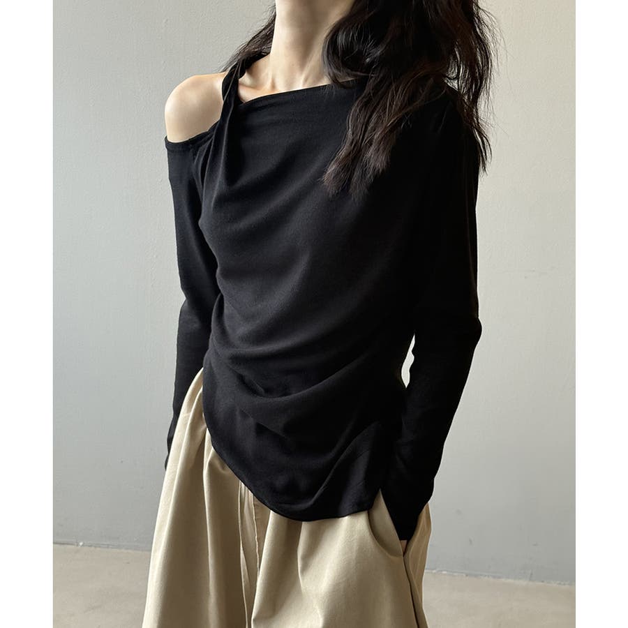 アシメワンショルニット。