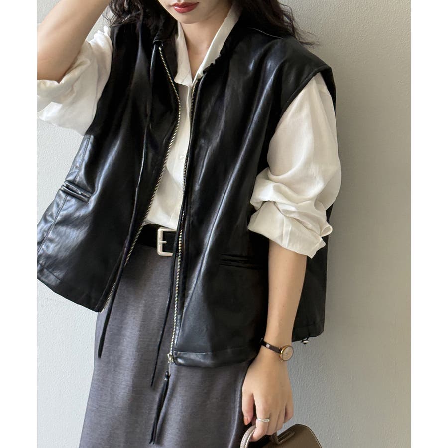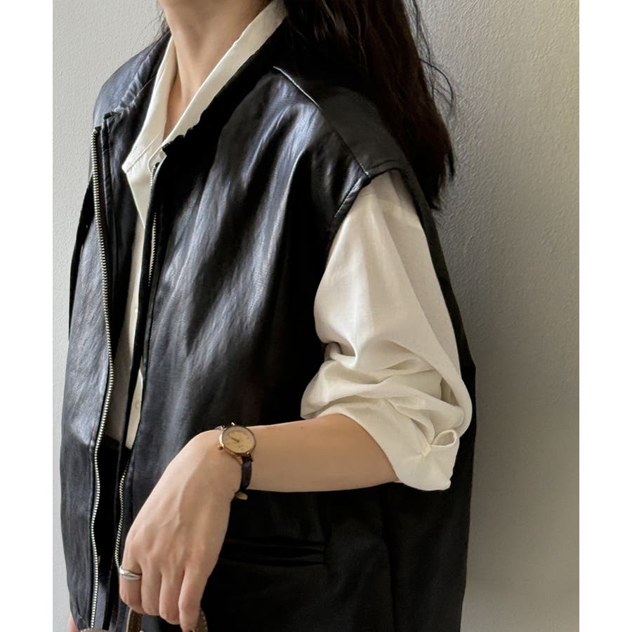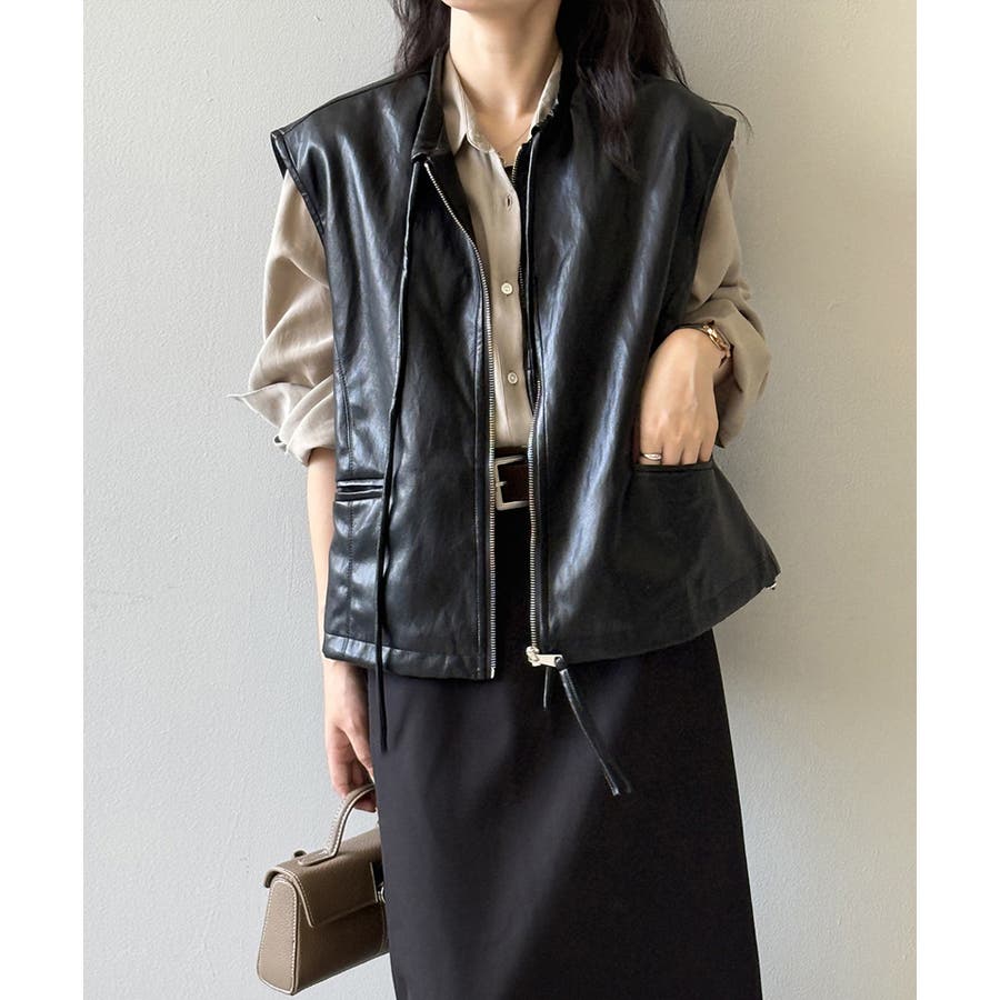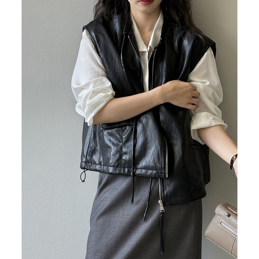 フェイクレザーベスト。