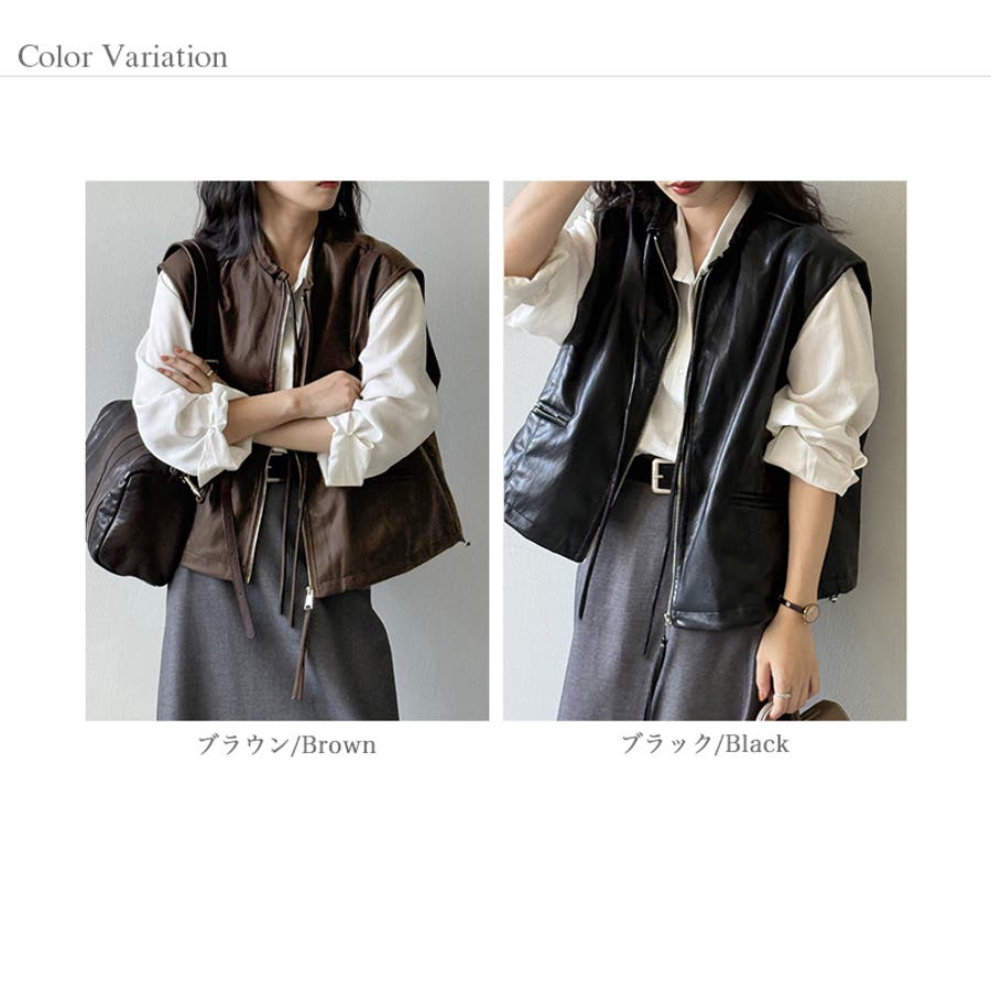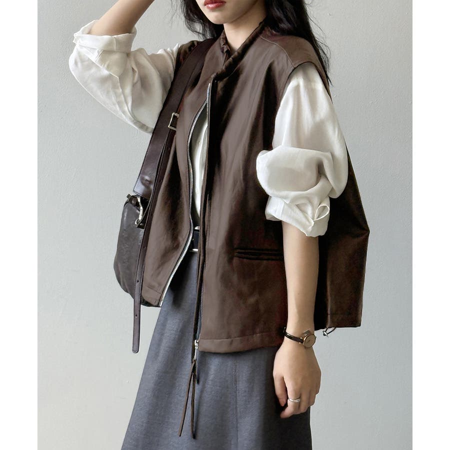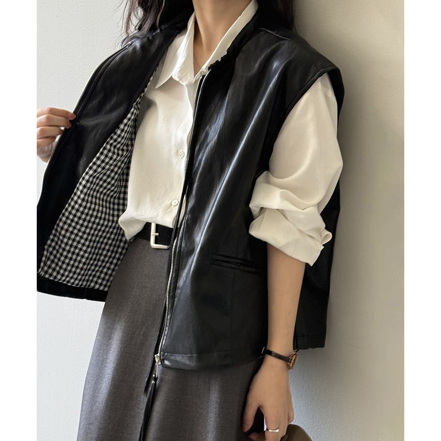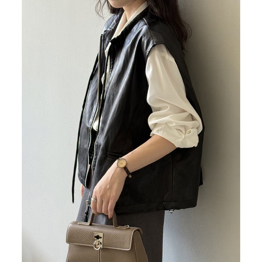 フェイクレザーベスト。