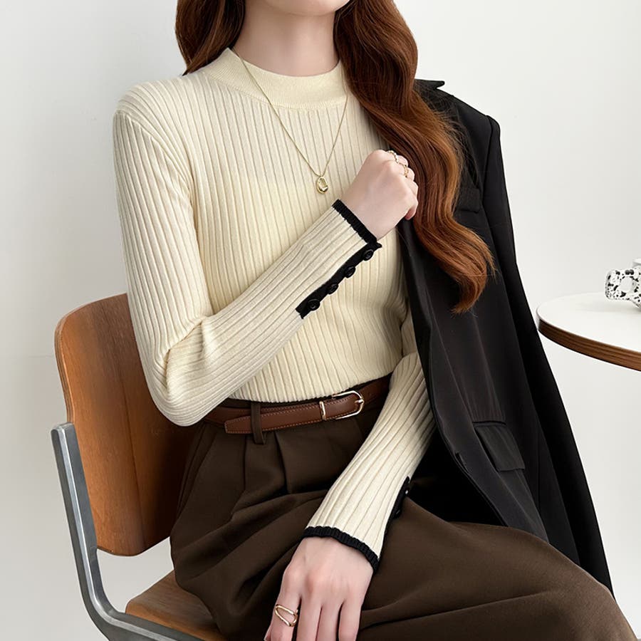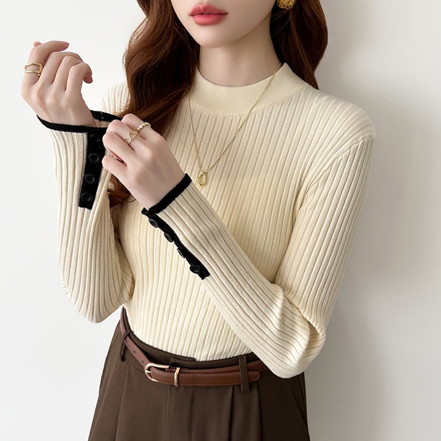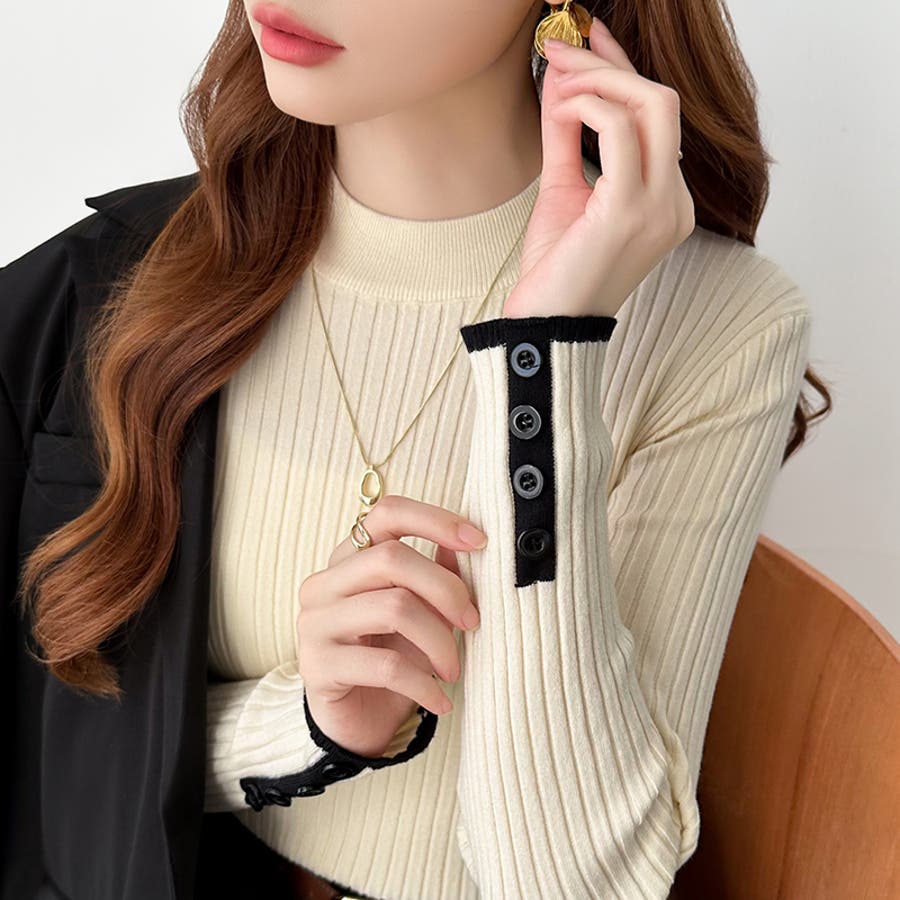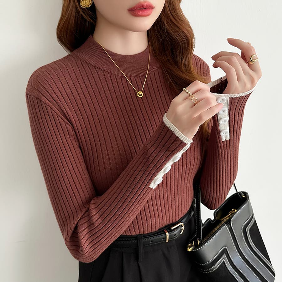 ニット 配色 トップス リブニット 長袖 レディース 配色ニット 袖ボタン バイカラー バイカラーニット モックネック リブ ニットセーター レイヤード インナー レイヤードトップス 重ね着 袖口ボタン フィット タイト ニットトップス きれいめ プルオーバー シンプル 無地 セーター 長袖ニット 配色トップス バイカラートップス プチハイネック 袖 袖口 ボタン 生地 ストレッチ生地 リブ編み tops 着回し 伸縮性 ストレッチ 細見え 華奢見え 1枚で決まる 洗える あたたかい 暖かい あったかい あったか オフィス オフィスカジュアル オフィスカジュアル秋冬 オフィカジ ベーシック 定番 カジュアル 大人 オトナ かわいい 可愛い 大人可愛い きれい め 綺麗め キレイめ おしゃれ オシャレ 女性 母 ママ ママコーデ プチプラ 高見え トレンド ヒット 商品 おすすめ 服 ファッション コーデ コーディネート フリーサイズ フリー サイズ アイボリー ブラウン 茶色 ダークグレー グレー 灰色 ブラック 黒 ホワイト 白 カラー レディース春 レディース秋 レディース冬 レディース秋冬 レディース秋物 レディース秋冬トップス 春トップス 秋トップス 冬トップス 長袖レディース 長袖トップスレディース 春トップスレディース 秋トップスレディース 冬トップスレディース カットソーレディース 春ニット 秋ニット 冬ニット 春トップス 秋トップス 冬トップス 二ットレディース 長袖トップスレディース 長袖トップスおしゃれ トップスレディース トップスレディース長袖 新作 春秋 秋冬 春 秋 冬 春服 秋服 冬服 春物 秋物 冬物 春用 秋用 冬用 韓国 韓国ファッション 10代 20代 30代 40代 50代 60代 70代 cocomomo ココモモ