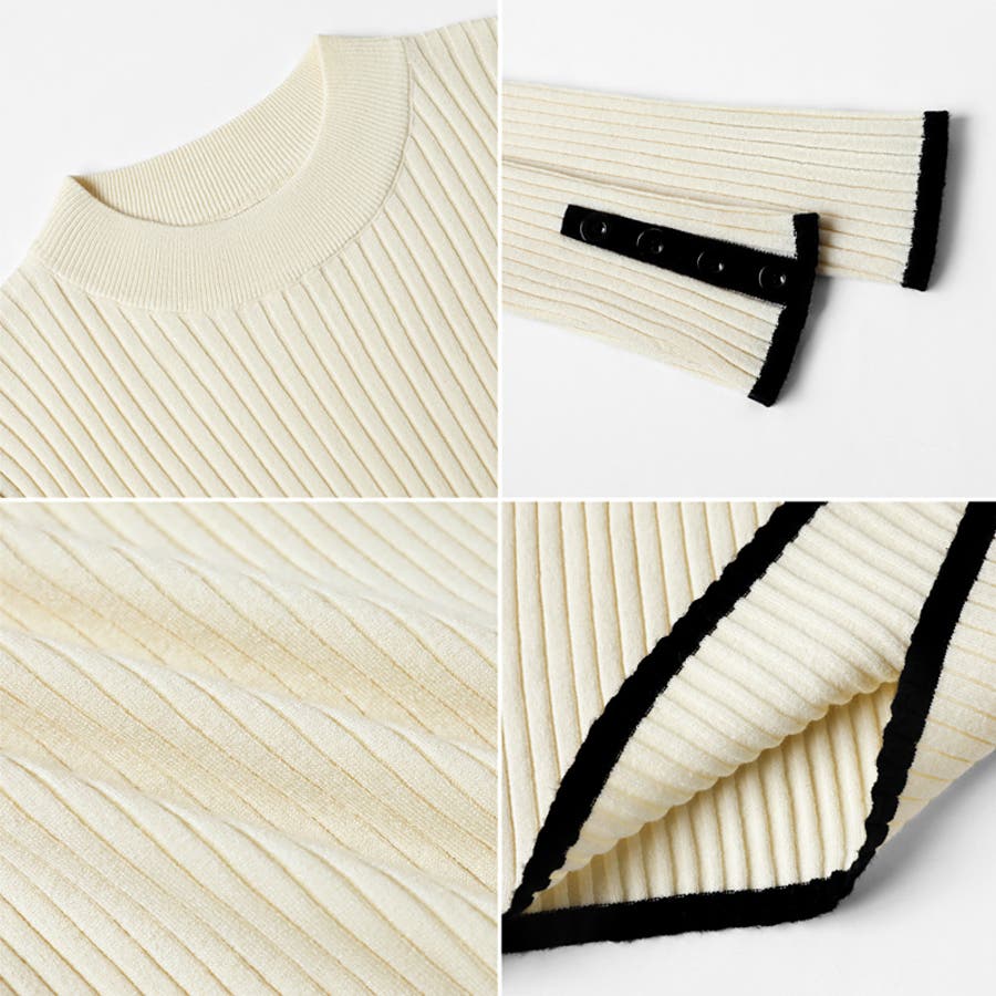 新色登場!袖ボタン配色ニット リブニット バイカラーニット