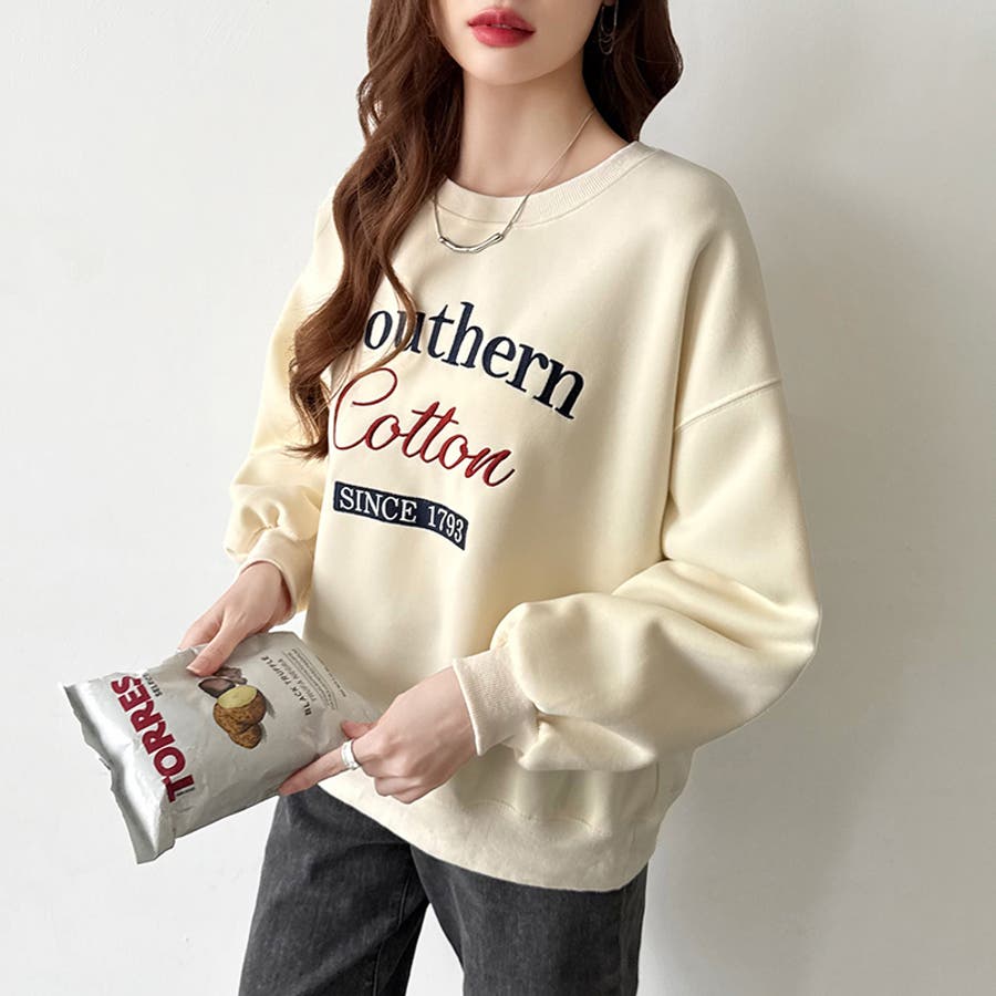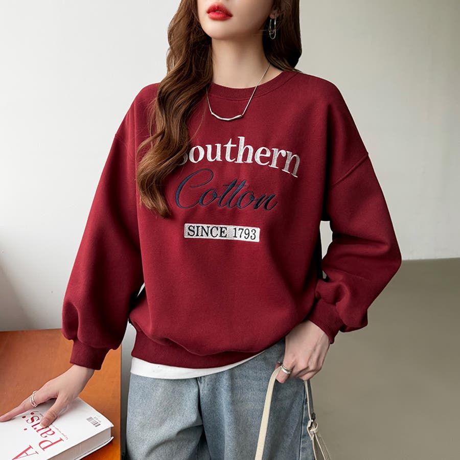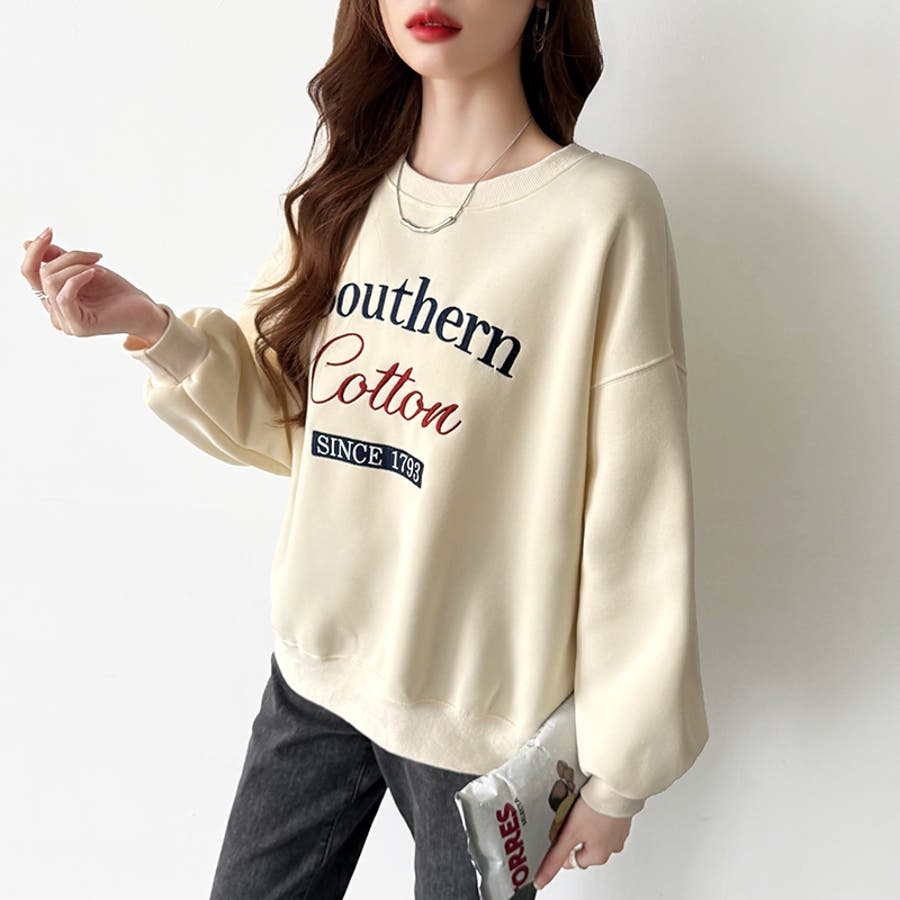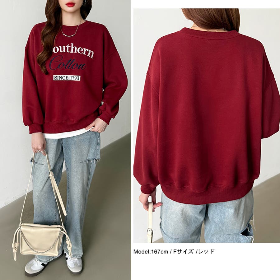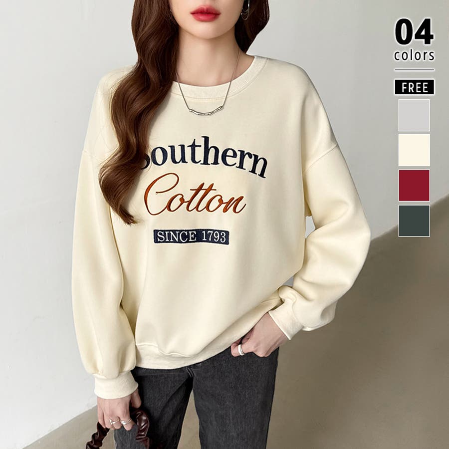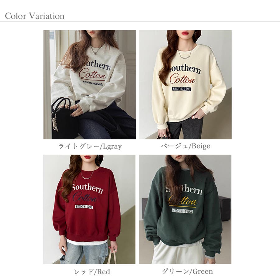 ロゴ刺繍 トレーナー スウェット レディース ゆったり トップス 長袖 ロゴ 刺繍 ロゴトレーナー おしゃれ クルーネック カットソー ボリューム袖 長袖スウェット ロゴスウェット オーバーサイズ クルーネックスウェット ボリューム袖トップス ボリュームスリーブ 上 カレッジ ドロップショルダー プルオーバー スウェットトレーナー 大きいサイズ 体型カバー オーバーサイズスウェット 大人 スエット 英字 アルファベット 大きい 大きめ ゆる ゆったりトップス ゆったりシルエット ラウンドネック ボリューム 袖 ボリューム袖トップス 英字ロゴ 文字 前 フロント 前ロゴ フロントロゴ リブ袖 リブ 袖 袖リブ 体型 カバー 隠し 着回し 着まわし 着痩せ 楽 楽ちん 楽チン tops 伸縮性 ストレッチ 洗える 手洗い可 手洗い 洗濯機で洗える リラックス カジュアル ストリート ストリート系 アメカジ スポーティー スポーティ スポーツ ワンマイル 韓国風 大人 かわいい 可愛い 大人可愛い 大人カジュアル オシャレ プチプラ 高見え トレンド ヒット 商品 おすすめ 服 服装 ファッション コーデ 母 ママ ママコーデ 女性 カジュアルコーデ フリーサイズ フリー サイズ ライトグレー 灰色 ベージュ レッド 赤 グリーン 緑 カラー 春トップス 秋トップス 冬トップス 春トップスレディース 秋トップスレディース 冬トップスレディース レディース春 レディース秋 レディース冬 レディース秋冬 レディース秋物 レディース秋冬トップス 長袖トップス トップス長袖 長袖トップスレディース 長袖トップスおしゃれ トップスレディース トップスレディース長袖 レディーストップス 長袖レディース 長袖トレーナーレディース 可愛いトレーナー ロゴトレーナーレディース スウェットレディース 春秋 秋冬 春 秋 冬 春服 秋服 冬服 秋用 冬用 秋物 冬物 韓国 韓国ファッション 10代 20代 30代 40代 50代 60代 cocomomo ココモモ