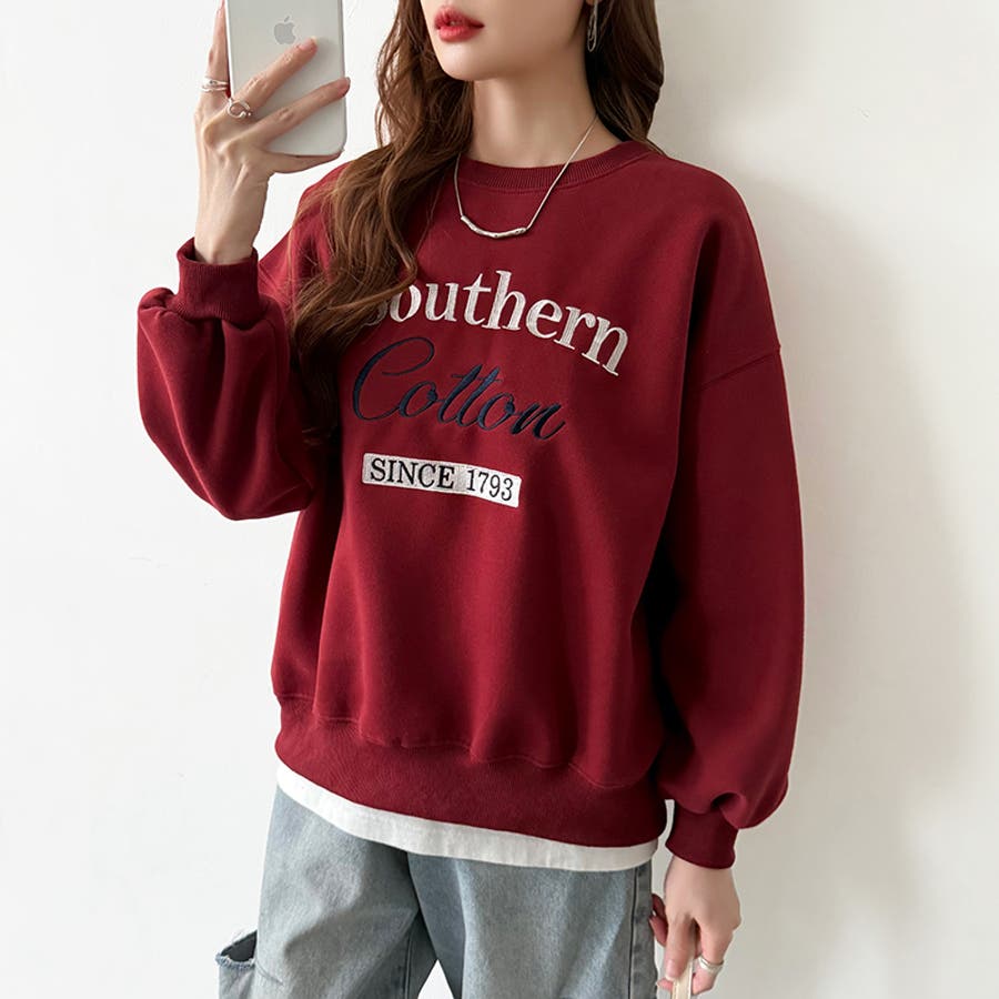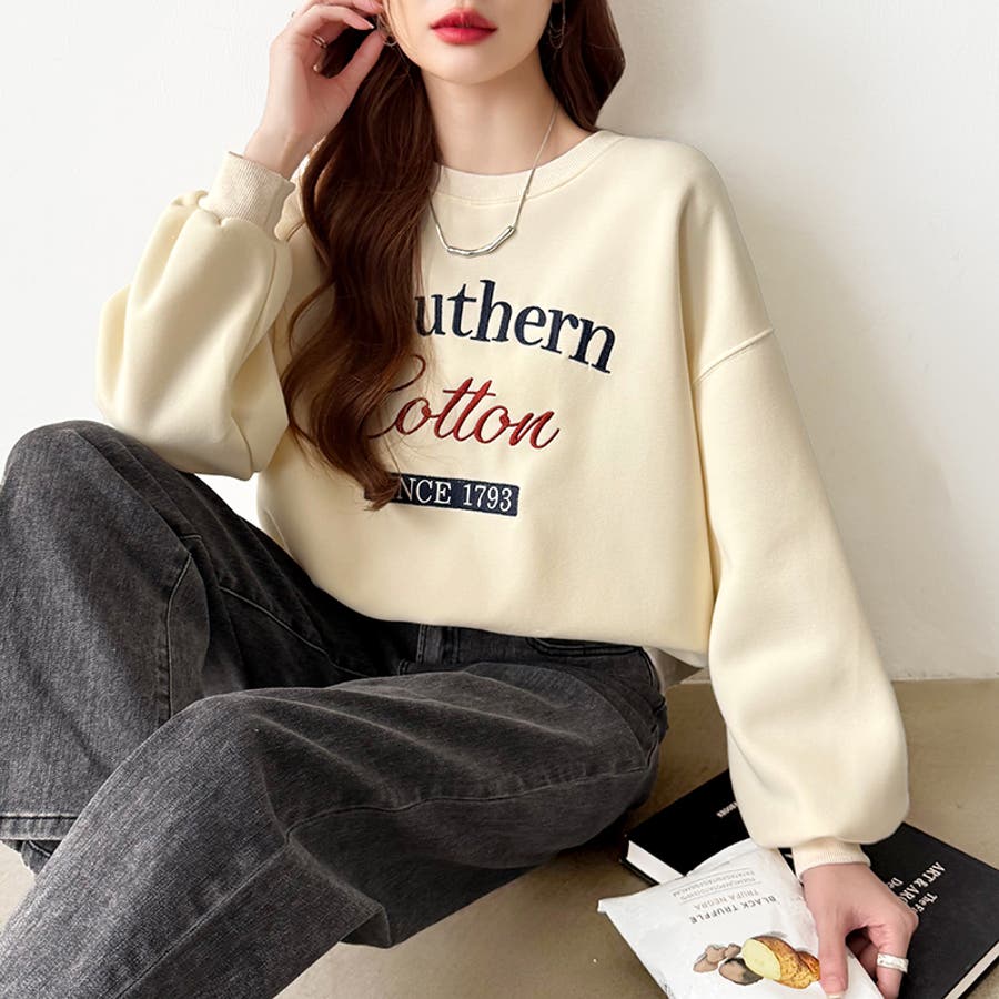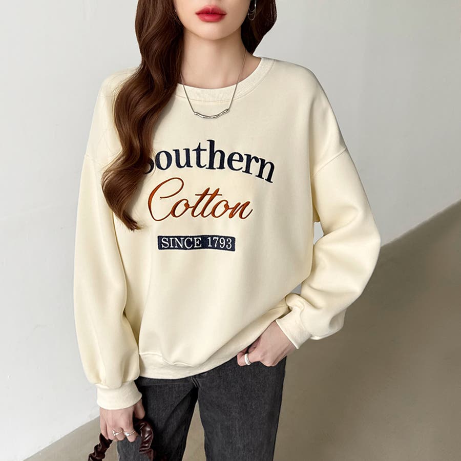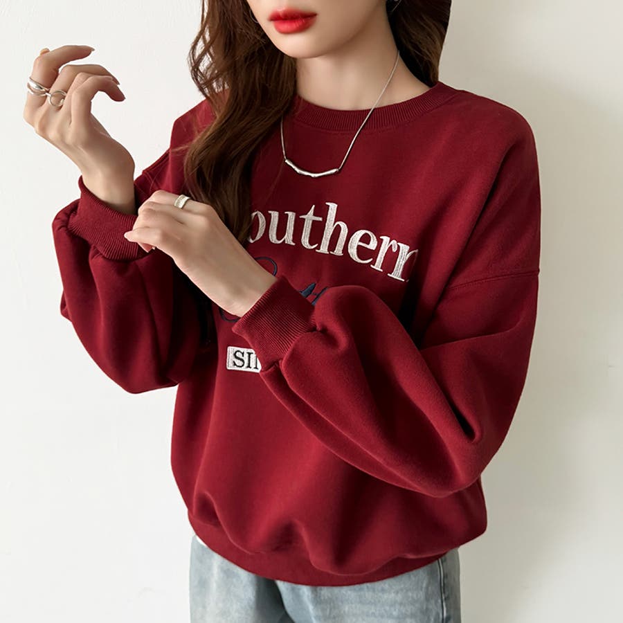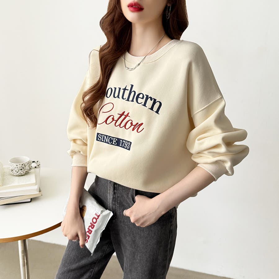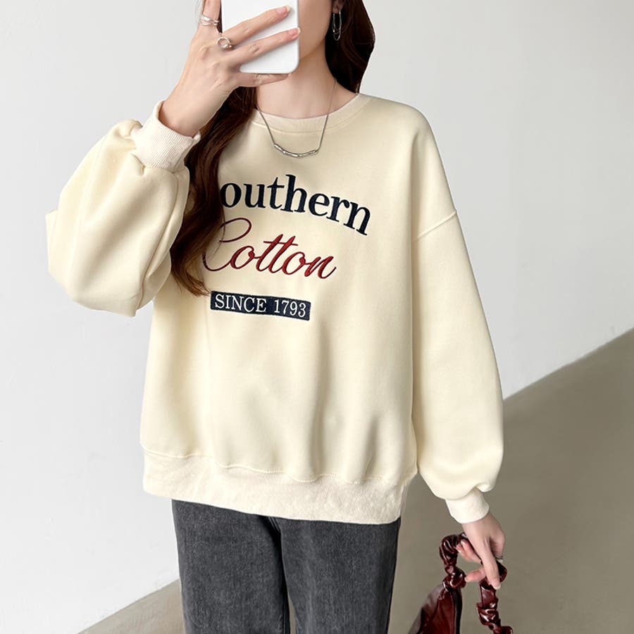 ロゴ刺繍 トレーナー スウェット レディース ゆったり トップス 長袖 ロゴ 刺繍 ロゴトレーナー おしゃれ クルーネック カットソー ボリューム袖 長袖スウェット ロゴスウェット オーバーサイズ クルーネックスウェット ボリューム袖トップス ボリュームスリーブ 上 カレッジ ドロップショルダー プルオーバー スウェットトレーナー 大きいサイズ 体型カバー オーバーサイズスウェット 大人 スエット 英字 アルファベット 大きい 大きめ ゆる ゆったりトップス ゆったりシルエット ラウンドネック ボリューム 袖 ボリューム袖トップス 英字ロゴ 文字 前 フロント 前ロゴ フロントロゴ リブ袖 リブ 袖 袖リブ 体型 カバー 隠し 着回し 着まわし 着痩せ 楽 楽ちん 楽チン tops 伸縮性 ストレッチ 洗える 手洗い可 手洗い 洗濯機で洗える リラックス カジュアル ストリート ストリート系 アメカジ スポーティー スポーティ スポーツ ワンマイル 韓国風 大人 かわいい 可愛い 大人可愛い 大人カジュアル オシャレ プチプラ 高見え トレンド ヒット 商品 おすすめ 服 服装 ファッション コーデ 母 ママ ママコーデ 女性 カジュアルコーデ フリーサイズ フリー サイズ ライトグレー 灰色 ベージュ レッド 赤 グリーン 緑 カラー 春トップス 秋トップス 冬トップス 春トップスレディース 秋トップスレディース 冬トップスレディース レディース春 レディース秋 レディース冬 レディース秋冬 レディース秋物 レディース秋冬トップス 長袖トップス トップス長袖 長袖トップスレディース 長袖トップスおしゃれ トップスレディース トップスレディース長袖 レディーストップス 長袖レディース 長袖トレーナーレディース 可愛いトレーナー ロゴトレーナーレディース スウェットレディース 春秋 秋冬 春 秋 冬 春服 秋服 冬服 秋用 冬用 秋物 冬物 韓国 韓国ファッション 10代 20代 30代 40代 50代 60代 cocomomo ココモモ
