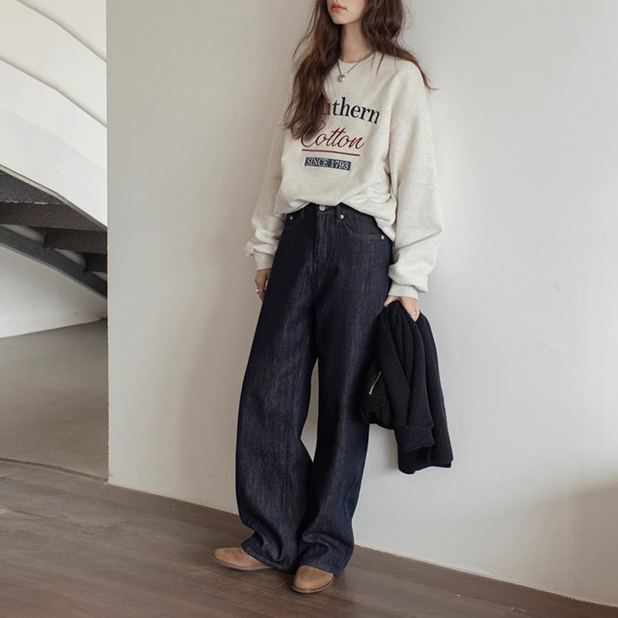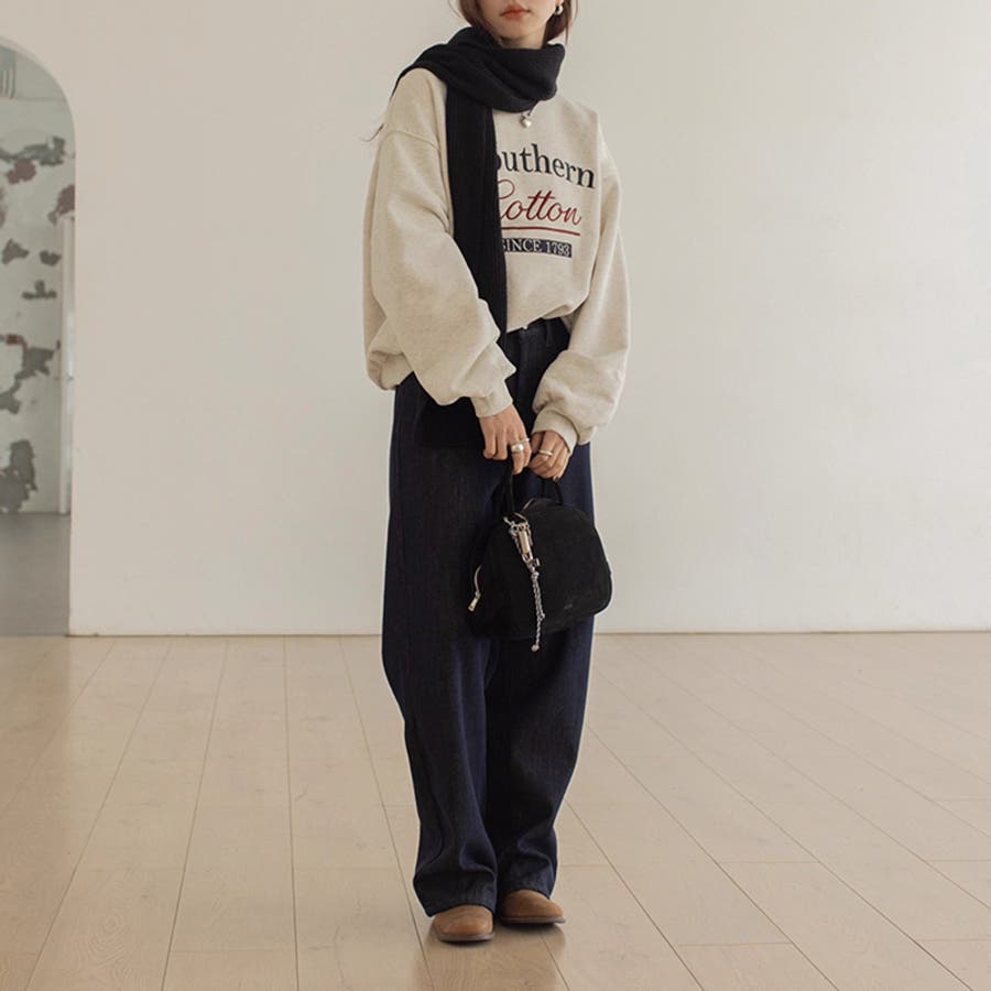 立体的なロゴ刺繍がさりげなく映える ロゴスウェット。 ゆとりをもたせたドロップショルダーに コンパクトな丈感ですっきりバランスに。 カットソーやシャツのレイヤード コーデにもおすすめです。