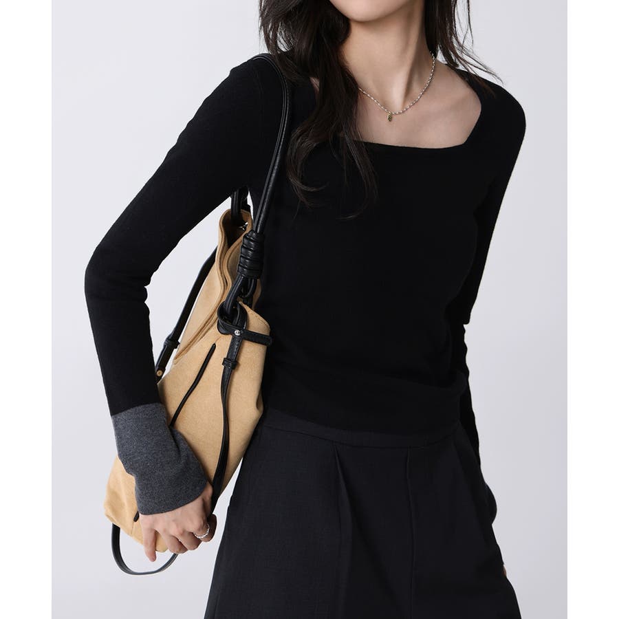 バイカラートップス 配色ニット スクエアネック