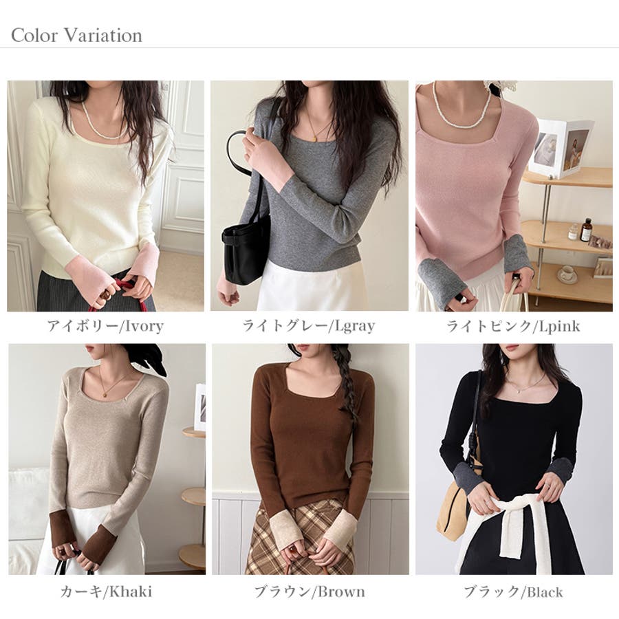 ニット バイカラー 配色 トップス 長袖 レディース 配色ニット スクエアネック 袖 切り替え バイカラーニット ニットセーター レイヤード インナー レイヤードトップス 重ね着 スクエアネックニット バイカラートップス デコルテ 見せ 開き フィット タイト ニットトップス きれいめ プルオーバー 切替 シンプル 無地 セーター 長袖ニット 配色トップス 袖口 生地 ストレッチ生地 tops 着回し 伸縮性 ストレッチ 細見え 華奢見え 1枚で決まる 洗える あたたかい 暖かい あったかい あったか オフィス オフィスカジュアル オフィスカジュアル秋冬 オフィカジ ベーシック 定番 個性 個性派 モード フェミニン カジュアル 大人 オトナ かわいい 可愛い 大人可愛い きれい め 綺麗め キレイめ おしゃれ オシャレ 女性 母 ママ ママコーデ プチプラ 高見え トレンド ヒット 商品 おすすめ 服 ファッション コーデ コーディネート フリーサイズ フリー サイズ アイボリー 白 ライトグレー 灰色 ライトピンク ピンク カーキ ブラウン 茶色 ブラック 黒 カラー レディース春 レディース秋 レディース冬 レディース秋冬 レディース秋物 レディース秋冬トップス 春トップス 秋トップス 冬トップス 長袖レディース 長袖トップスレディース 長袖トップスおしゃれ 春トップスレディース 秋トップスレディース 冬トップスレディース カットソーレディース 春ニット 秋ニット 冬ニット 春トップス 秋トップス 冬トップス 二ットレディース 長袖トップスレディース 長袖トップスおしゃれ トップスレディース トップスレディース長袖 新作 春秋 秋冬 春 秋 冬 春服 秋服 冬服 春物 秋物 冬物 春用 秋用 冬用 韓国 韓国ファッション 10代 20代 30代 40代 50代 60代 70代 cocomomo ココモモ