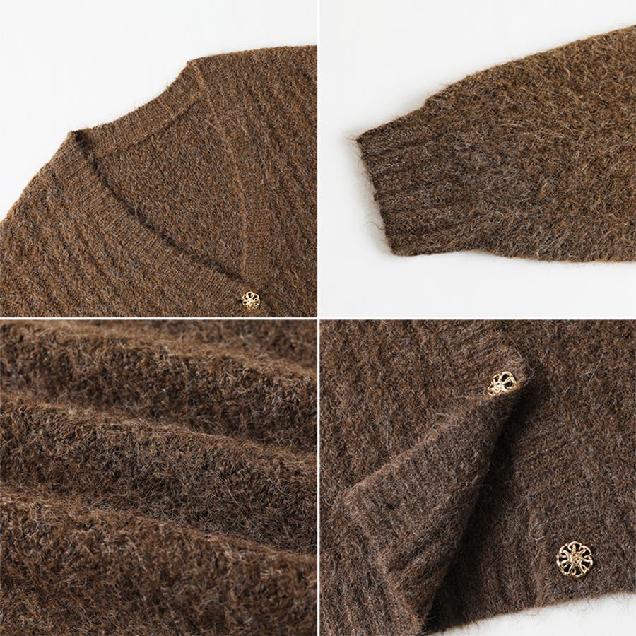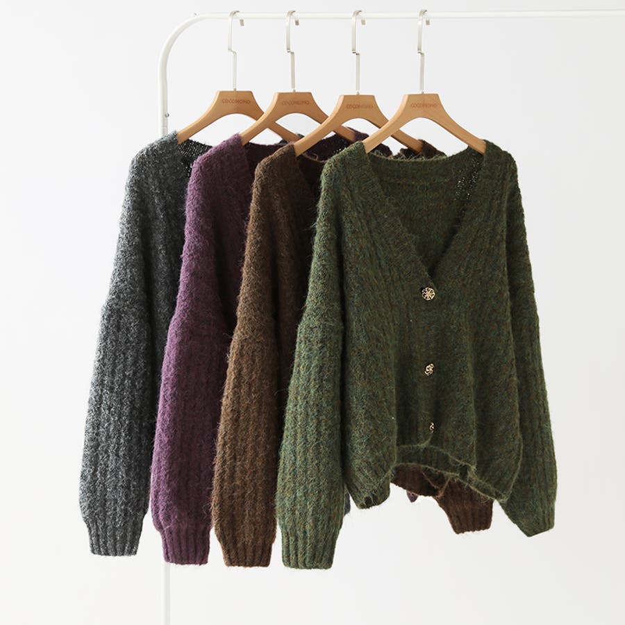 カーディガン vネック ニットカーディガン レディース ゆったり ニット ドロップショルダー ボリューム袖 トップス 長袖 羽織り 暖かい ショート丈 ショートカーディガン 厚手 ウール混 メランジ ミックスカラー Vネック Vネックカーディガン Vネックカーディガン長袖 ボリュームスリーブ ぽわん ぽわん袖 上着 羽織もの 羽織 前あき 前開き ウール ショート 丈 コンパクト クロップド クロップド丈 大きい 大きめ 金ボタン ボタン 前開き ニットトップス ニットセーター ニットレディース シンプル 無地 ゆる tops 着回し 伸縮性 ストレッチ 暖か あたたかい あったかい 韓国風 韓国コーデ カジュアル 大人 オトナ かわいい 可愛い 大人可愛い おしゃれ オシャレ プチプラ ママ ママコーデ コーデ 母 女性 トレンド ヒット 商品 おすすめ 服 ファッション コーデ コーディネート フリーサイズ パープル 紫 ブラウン 茶色 ダークグレー グレー 灰色 グリーン 緑 カラー ニットカーディガンレディース 新作 秋冬 春 秋 冬 秋服 冬服 秋用 冬用 秋物 冬物 韓国 韓国ファッション 10代 20代 30代 40代 50代 60代 70代 cocomomo ココモモ