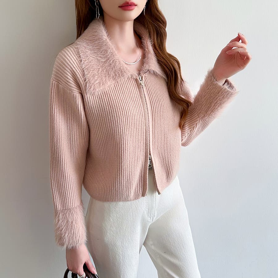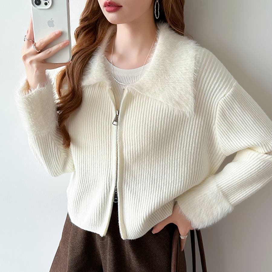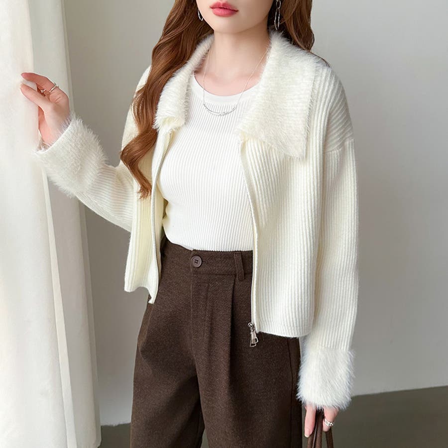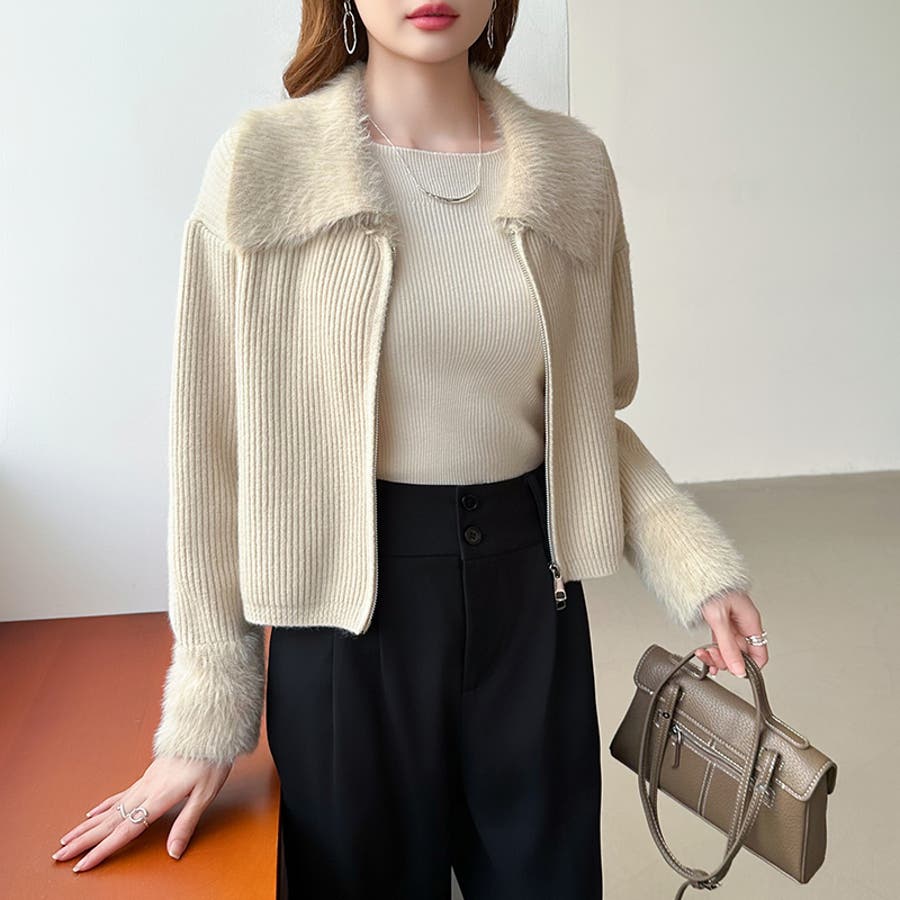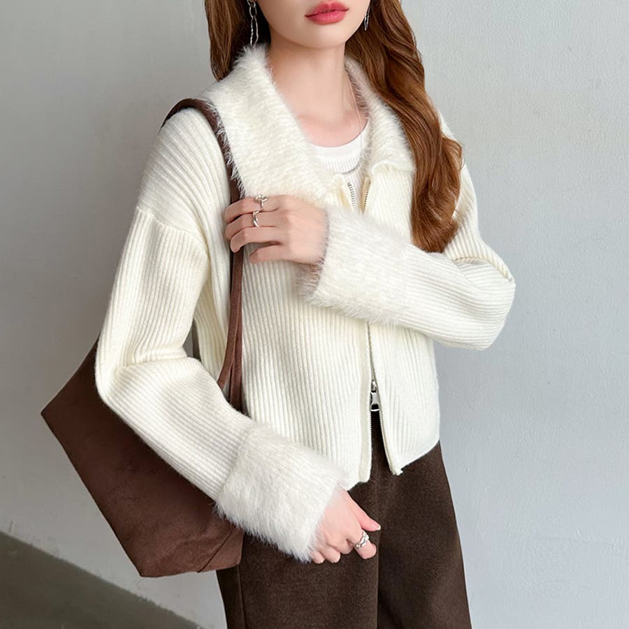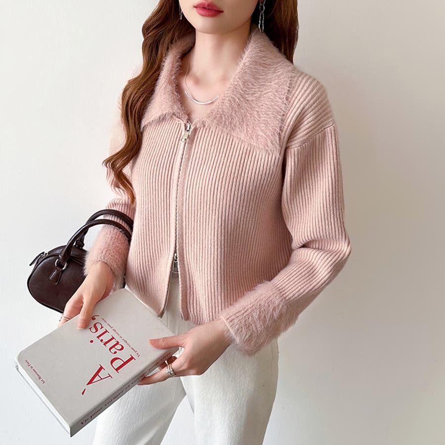 ダブルジップ リブニット カーディガン ふわふわ シャギー ショート丈 レディース シャギーニット ニット トップス ニットカーディガン 長袖 ジップアップ リブ 羽織り ファー付き 襟 袖 シャギーカーディガン シャギーニットカーディガン ショート 丈 ショートトップス ショートカーディガン ショート丈トップス リブニットカーディガン ジップカーディガン ニットトップス ジップ クロップド クロップド丈 暖かい ニットセーター セーター ファー 付き ファスナー 羽織 羽織りもの 短丈 短丈トップス tops 着回し シンプル 無地 伸縮性 ストレッチ 前開き 柔らかい やわらかい やわらか なめらか ふんわり ふわ もちもちニット 暖 温かい 暖か あったかい あったか あたたかい おでかけ お出かけ 旅行 カジュアル フェミニン ガーリー 韓国風 韓国服 大人 大人可愛い 大人かわいい かわいい 可愛い きれいめ おしゃれ オシャレ 女性プチプラ 高見え トレンド ヒット 商品 おすすめ 服 服装 ファッション コーデ コーディネート ホワイト 白 杢ベージュ ベージュ ピンク ブラウン 茶色 グレー 灰色 ブラック 黒 カラー 白ニット ベージュニット ピンクニット ブラウンニット 茶色ニット グレーニット 黒ニット レディーストップス きれい色 秋ニット 秋トップス 秋トップスレディース 冬トップス 冬ニット 長袖トップス 長袖トップスレディース 長袖トップスおしゃれ レディース秋冬 レディース秋 レディース冬 レディース秋物 レディース秋冬トップス 秋トップス 羽織りものレディース ショート丈トップスレディース トップスレディース トップスレディース長袖 レディーストップス 長袖レディース 二ットレディース ニットカーディガンレディース 新作 秋冬 春 秋 冬 春服 秋服 冬服 秋物 冬物 秋用 冬用 韓国 韓国ファッション 10代 20代 30代 40代 50代 60代 cocomomo ココモモ