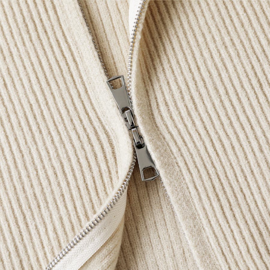 シャギー付きダブルジップカーディガン リブニット カーディガン