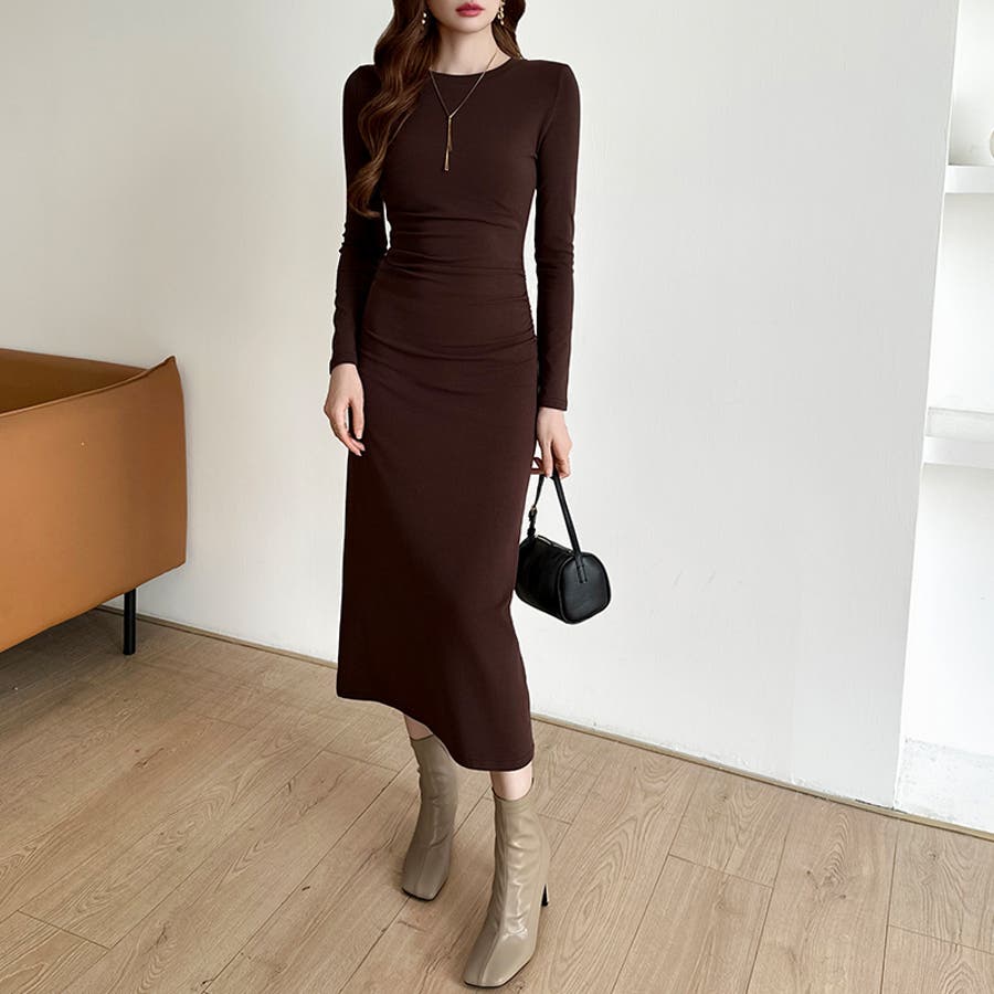 ワンピース ウエストギャザー Tシャツワンピース 長袖 ロング タイト tシャツ レディース 着痩せ タイトワンピース ロングワンピース カジュアル ロング丈 ワンピ 長袖ワンピース サイドギャザー 細見え 痩せ見え 美シルエット 美シルエットワンピース ぴったり ギャザーワンピース タイトワンピ 長袖ワンピ ロング丈ワンピース クルーネック Tシャツ ティーシャツ Tシャツワンピ 大きいサイズ ウエスト ギャザー ウエストマーク 膝下 丈 ひざ下 らくちん 楽ちん 楽チン 着やせ 華奢 シェイプライン シェイプ シンプル 無地 伸縮性 ストレッチ 部屋着 ルームウェア ナチュラル セクシー エレガント 綺麗 きれいめ きれい きれい め キレイめ かわいい 可愛い 大人 大人可愛い 大人っぽい オトナ女子 オシャレ 女性 女子 ママ ママコーデ 母 プチプラ 高見え トレンド ヒット 商品 おすすめ 服 洋服 ファッション コーデ コーディネート m l M L サイズ Mサイズ Lサイズ グレー 灰色 ブラウン 茶色 ブラック 黒 ダークグレー 灰色 グレー カラー ワンピース春 ワンピース秋 ワンピース冬 春ワンピース 春ワンピ 秋ワンピース 秋ワンピ 夏ワンピースレディース レディース春 レディース秋 レディース秋物 レディース秋冬ワンピース レディース秋冬ファッション きれいめカジュアル 大人可愛いワンピース ロングワンピースレディース 大人ワンピース 大人ワンピ 楽ちんワンピース 着やせワンピース 着痩せワンピース 夏きれいめ カジュアルワンピース 長袖ワンピースレディース 長袖ワンピース秋 新作 春秋 春 秋 冬 春服 秋服 春物 秋物 春用 秋用 韓国 韓国ファッション 10代 20代 30代 40代 50代 60代 cocomomo ココモモ