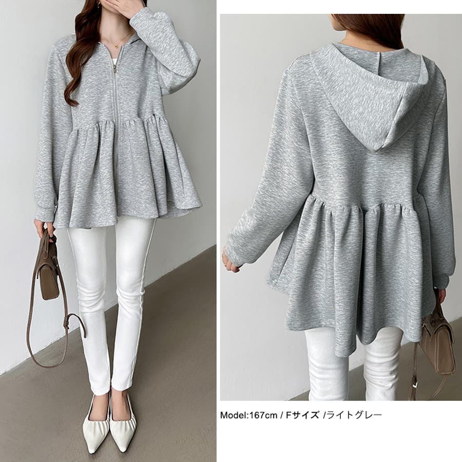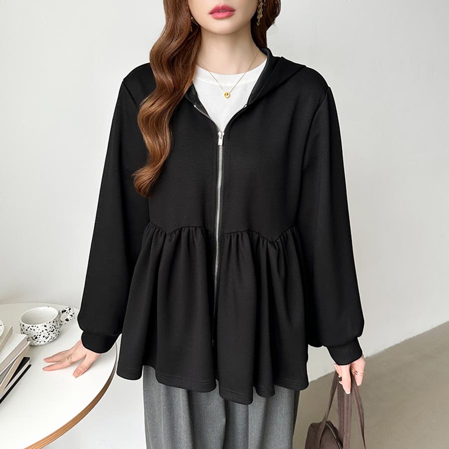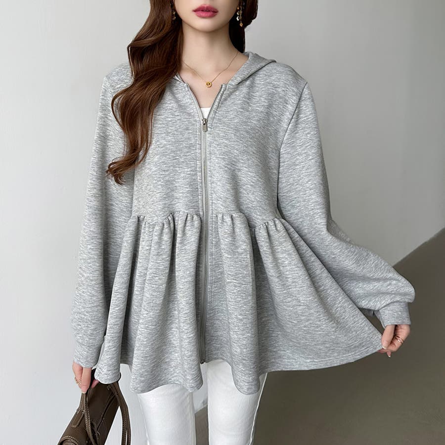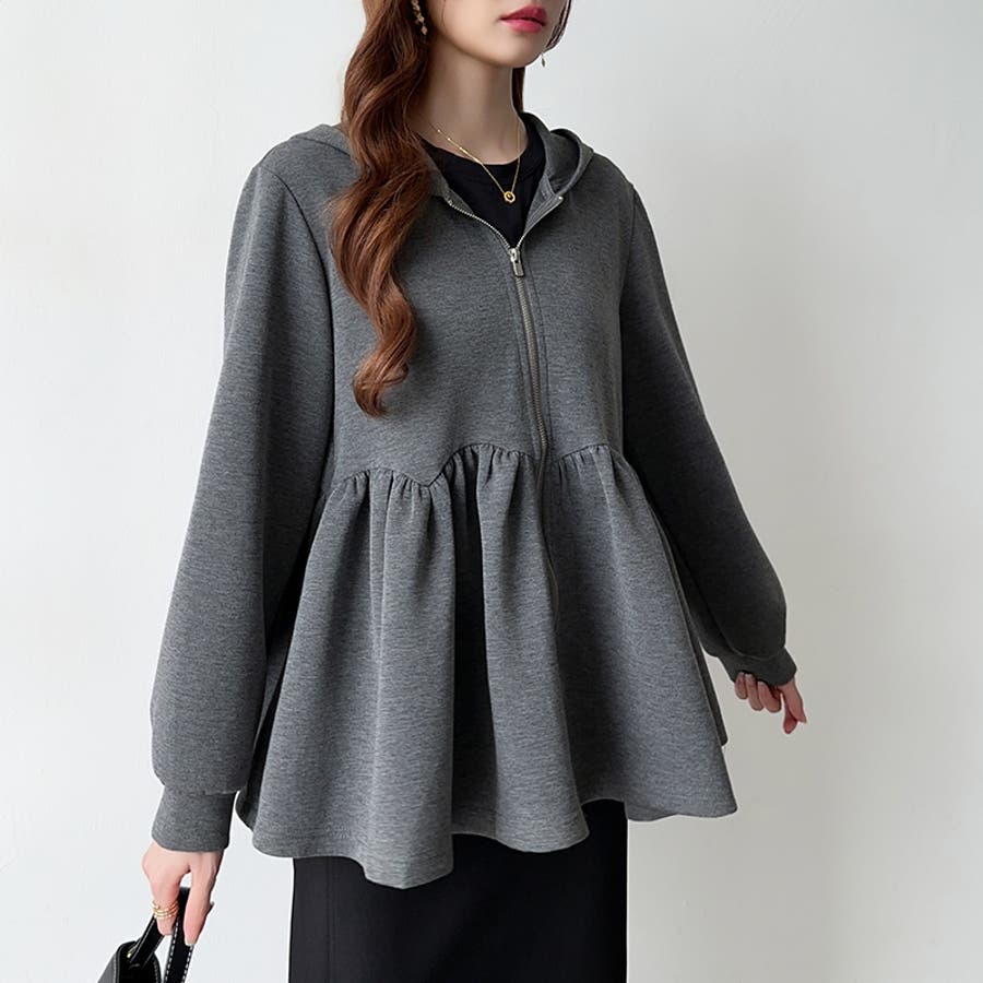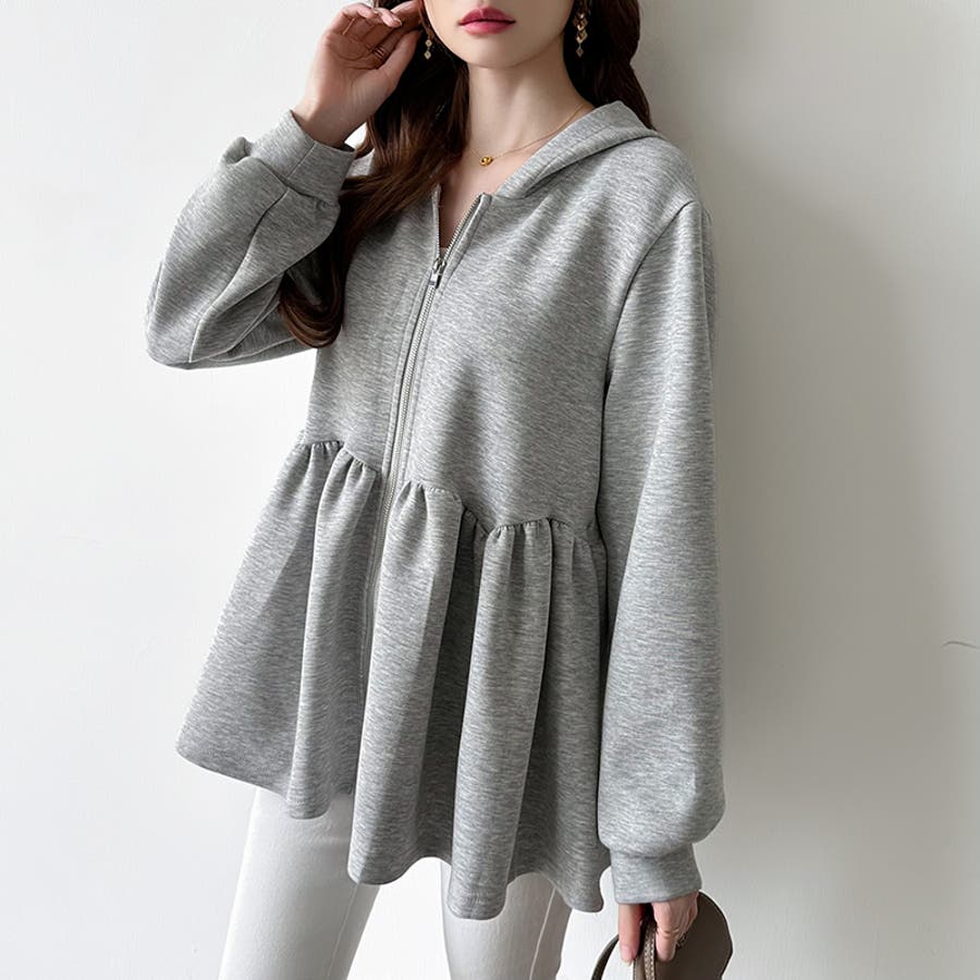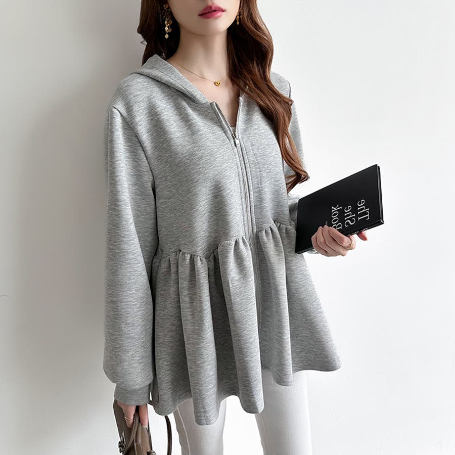 カジュアルに、大人フェミニン。 ペプラムパーカー ジップパーカー