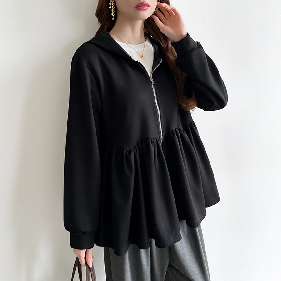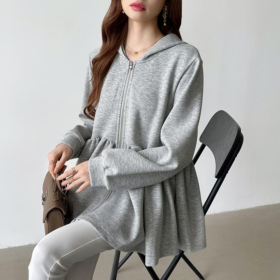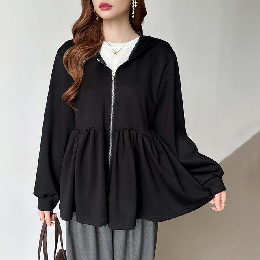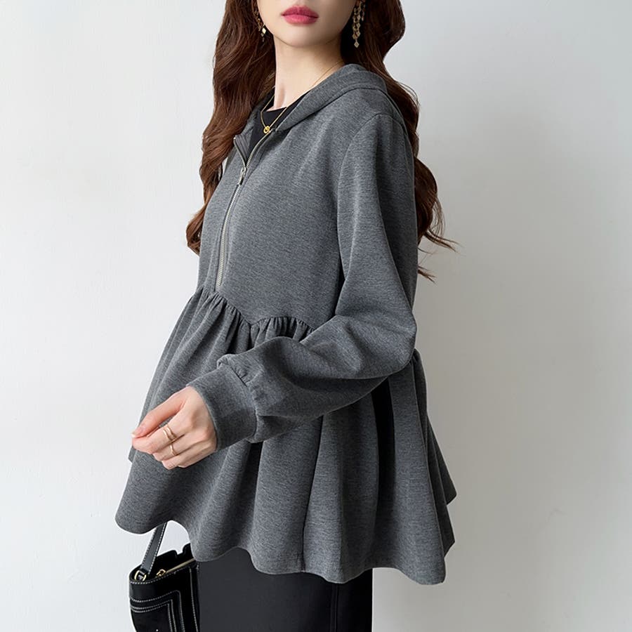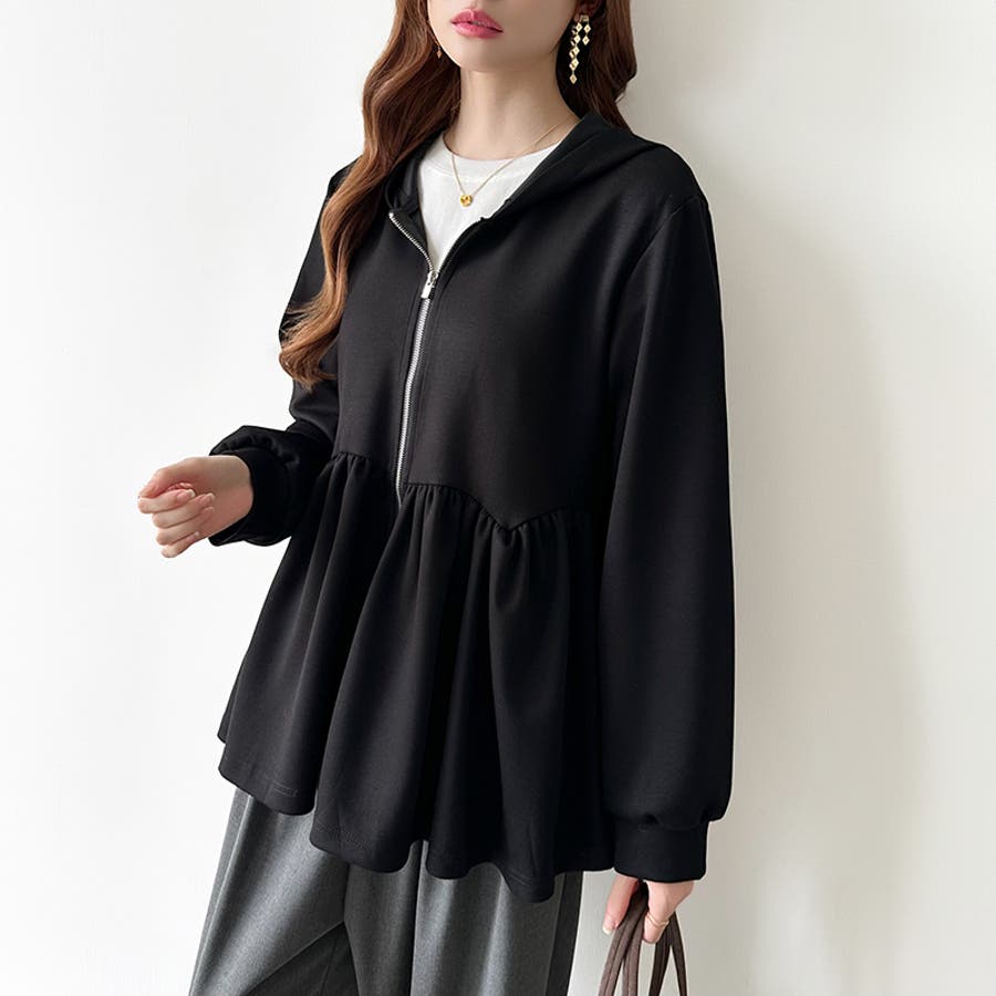 カジュアルに、大人フェミニン。 ペプラムパーカー ジップパーカー