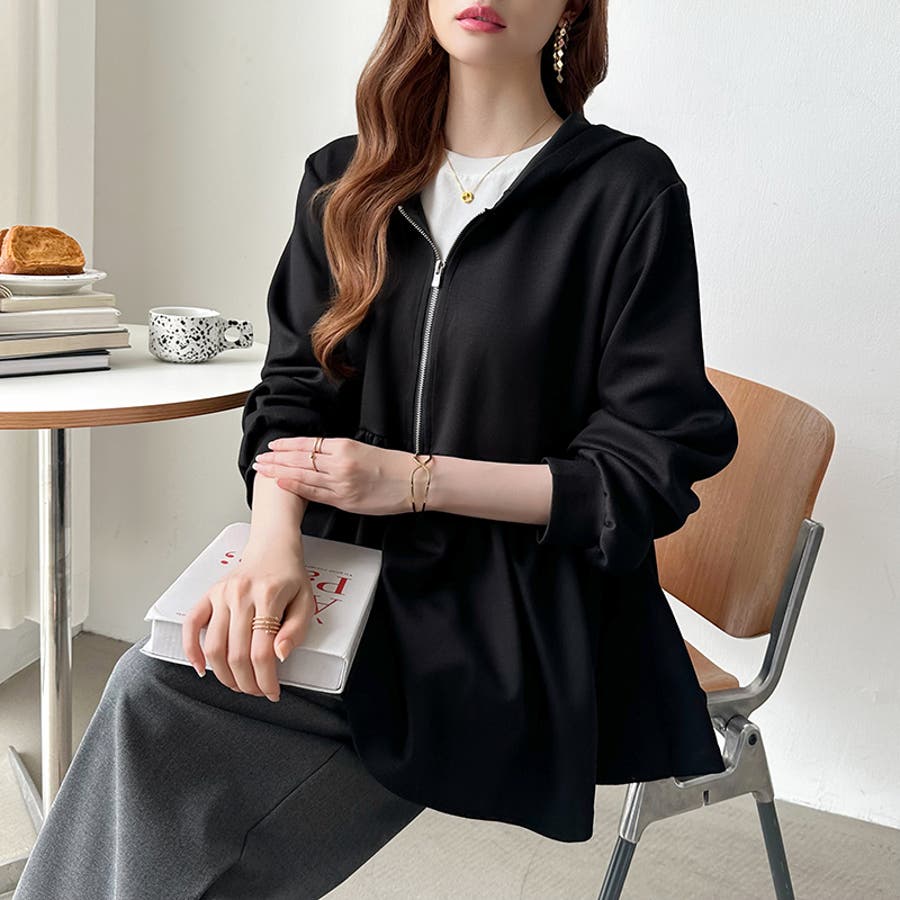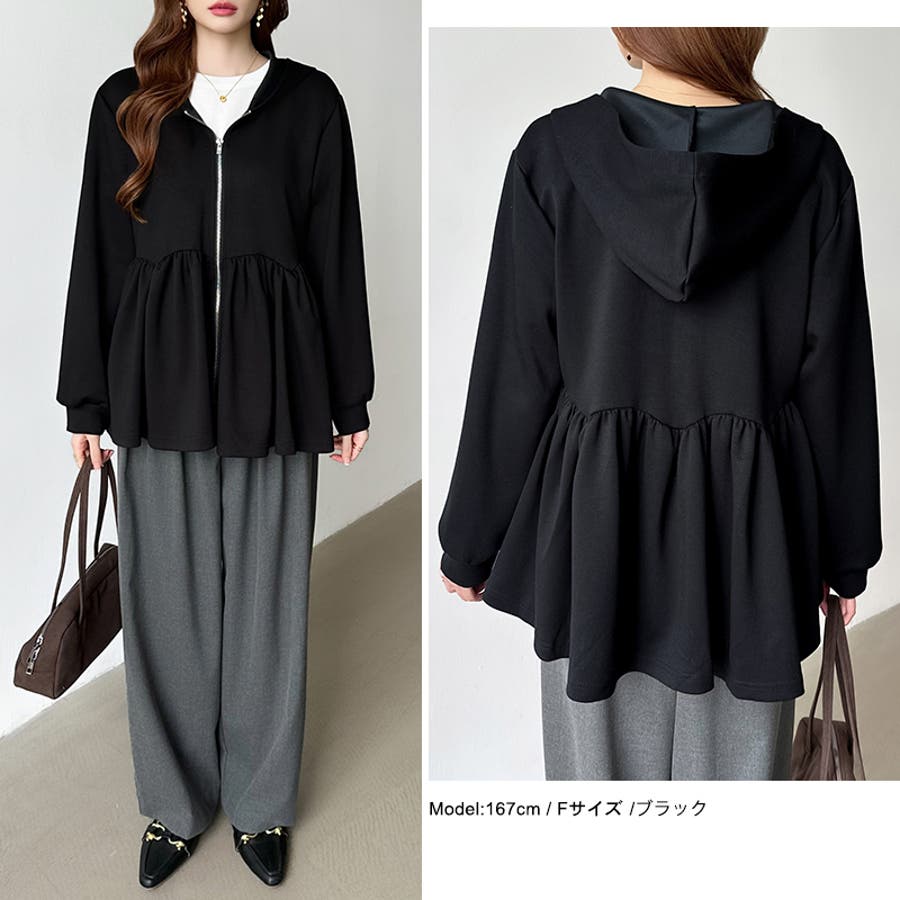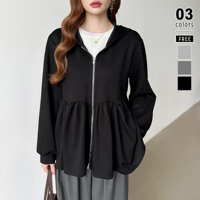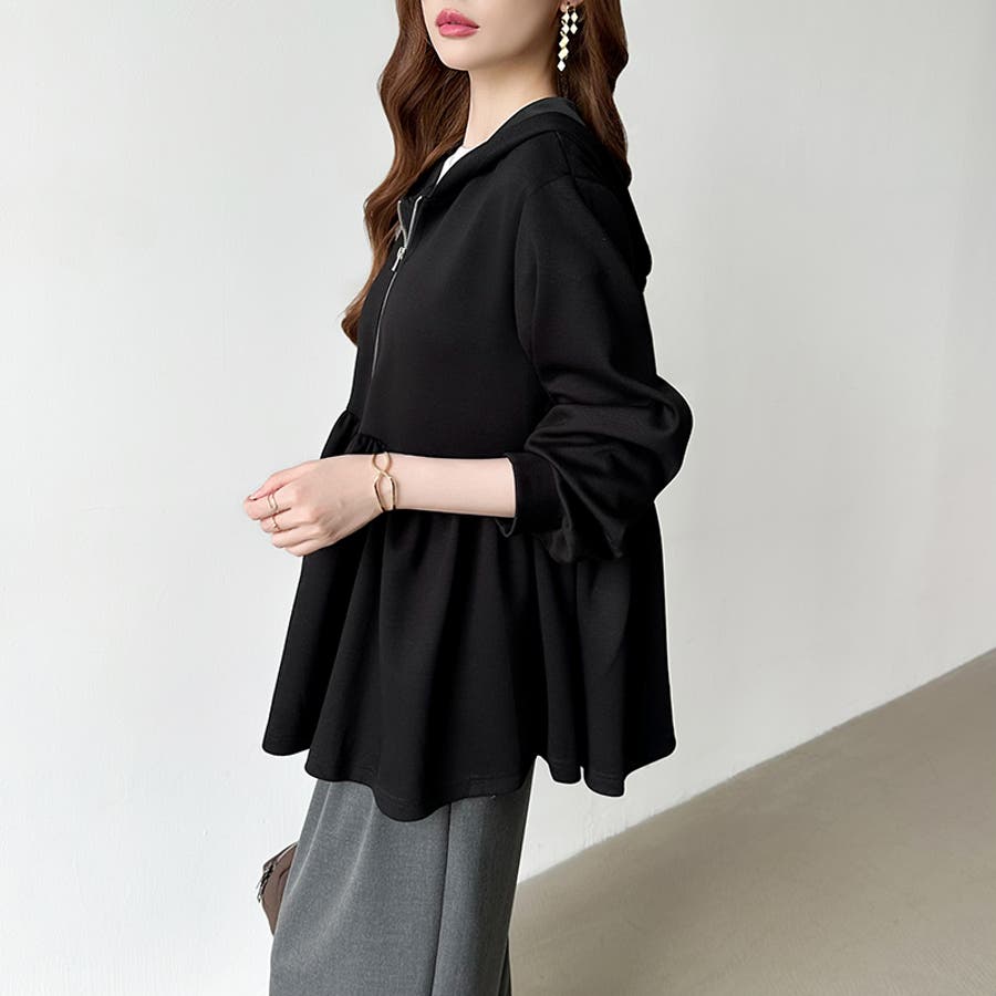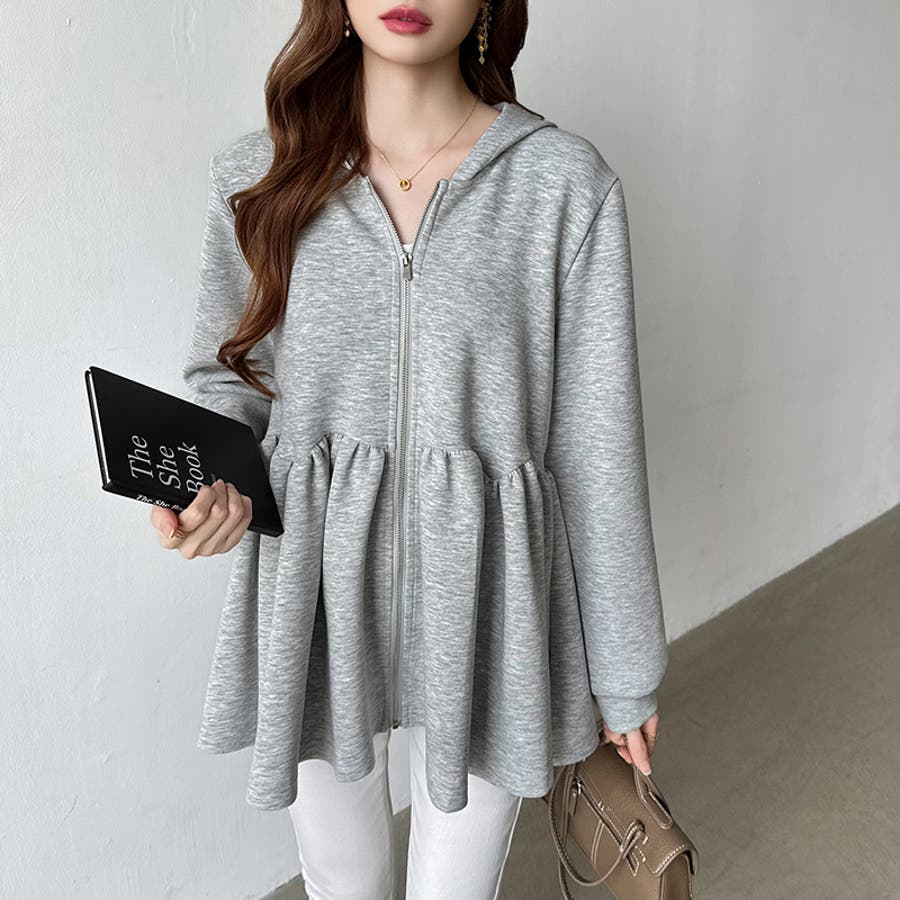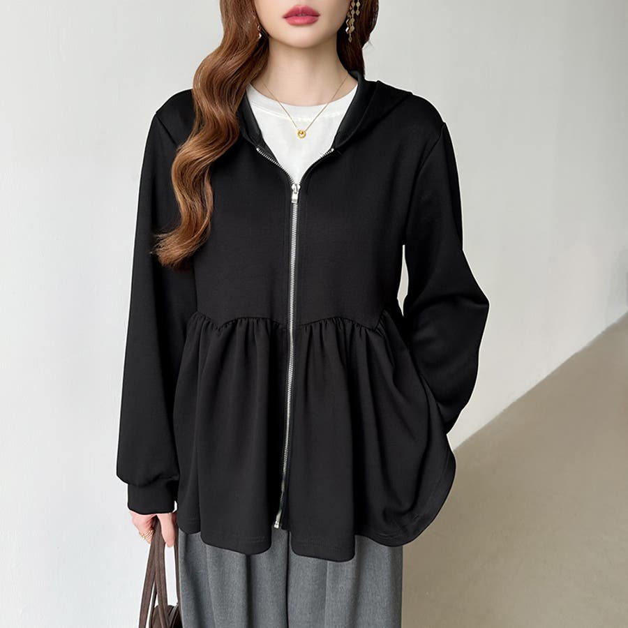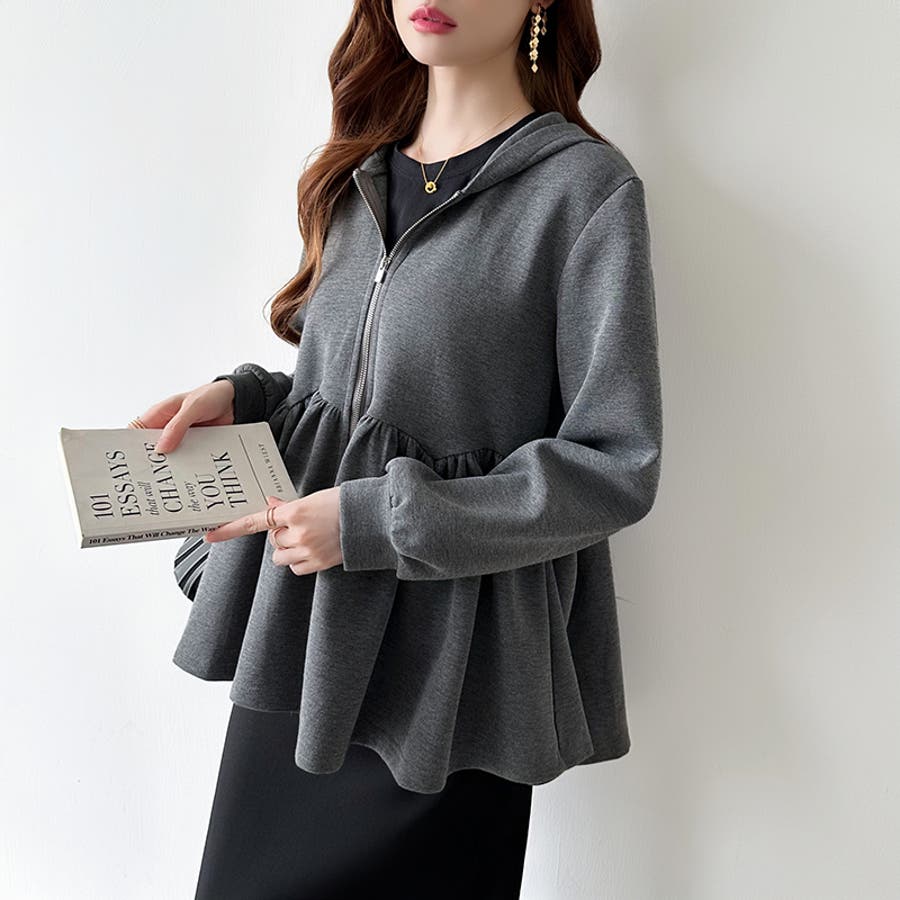 カジュアルに、大人フェミニン。 ペプラムパーカー ジップパーカー