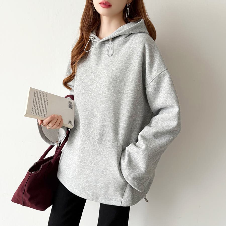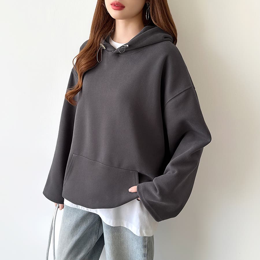 ゆったりとしたシルエットが魅力の オーバーサイズパーカー。 フードや袖口、裾部分にドロストを施し ドロストを絞ればシルエットに ニュアンスをつけられるデザインに。 フード部分のロゴ刺繍がさりげない アクセントになり、フロントには 便利なポケット付きで、機能性も抜群。