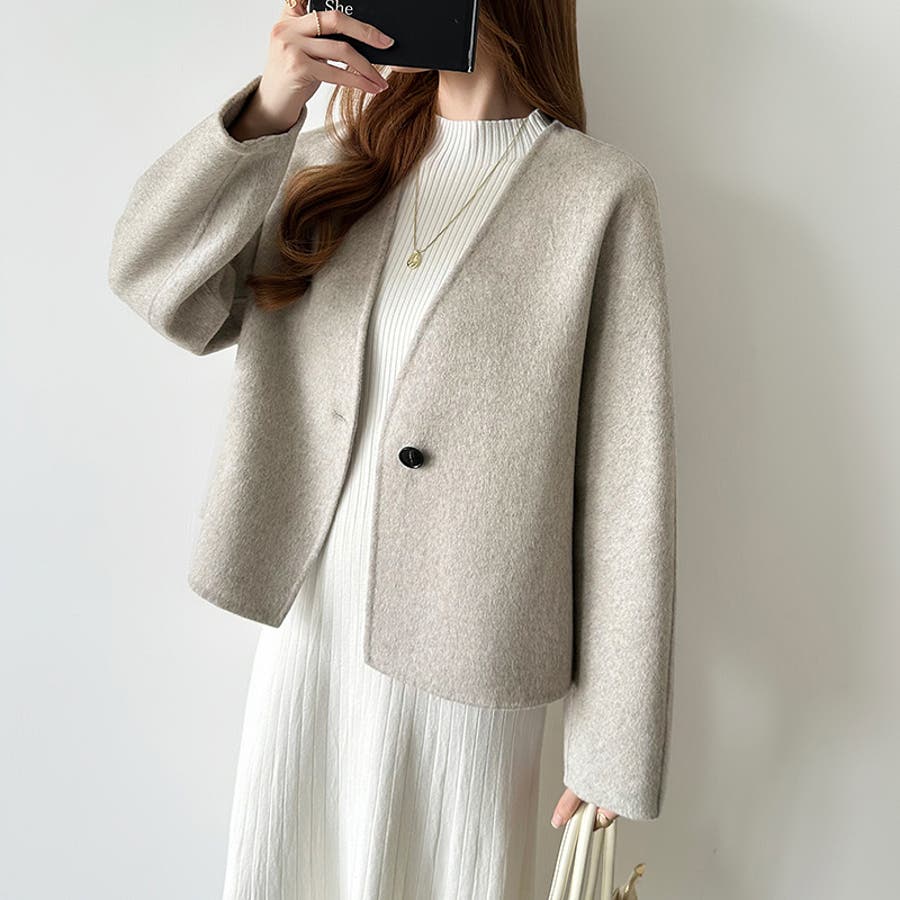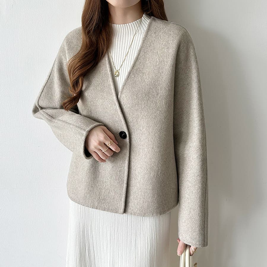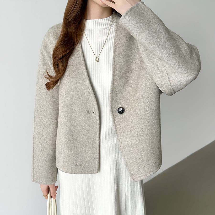 ノーカラー ジャケット vネック ノーカラーコート ショート レディース きれいめ コート ショートコート ノーカラージャケット アウター 上品 カジュアル 長袖 羽織り フォーマル ウール ウール混 ショート丈 丈 コートジャケット Vネックジャケット ショートアウター ブルゾン ノーカラーブルゾン ボタン オフィス オフィスカジュアル ショートブルゾン ノーカラーアウター おしゃれ 上着 羽織 羽織もの はおり 起毛 暖かい あたたかい あったか あったかい 前開き 前あき コンパクト お出かけ おでかけ 旅行 通勤 通学 会社 仕事 オケージョン セレモニー オフィスカジュアル秋冬 オフィカジ 大人 きれい め 綺麗め 綺麗 きれいめカジュアル 綺麗めカジュアル かわいい 可愛い 大人可愛い 大人かわいい 大人カジュアル オトナ女子 大人女子 女子 オシャレ 母 ママ ママコーデ プチプラ 高見え 高級感 トレンド ヒット 商品 おすすめ 服 ファッション コーデ コーディネート 人気 女性 ママ 母 フリーサイズ フリー サイズ 杢ベージュ ベージュ グレー 灰色 ダークグレー カラー 秋アウター アウター冬 秋アウターレディース ライトアウターレディース ノーカラージャケットレディース アウターレディース アウターレディース秋 アウターレディース冬 ノーカラーコートレディース ショートコートレディース 新作 秋冬 秋 冬 秋服 冬服 秋物 春用 秋用 韓国 韓国ファッション 10代 20代 30代 40代 50代 60代 70代 cocomomo ココモモ