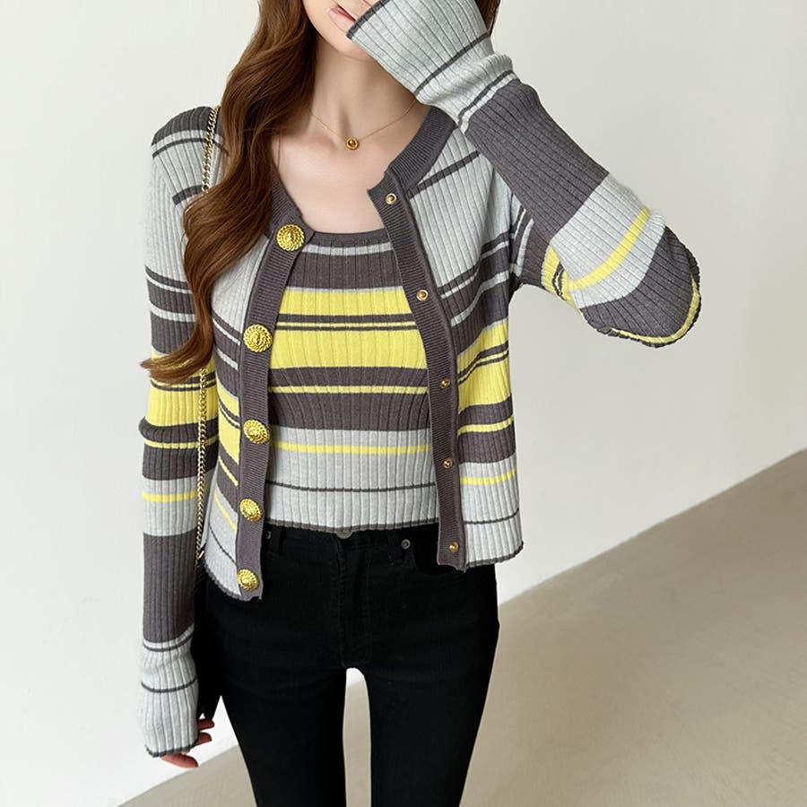 アンサンブル ニット カーディガン セット レディース ボーダー 長袖 きれいめ キャミソール アンサンブルニット 金ボタン ニットカーディガン マルチボーダー ショート丈 トップス ツインニット アンサンブルニットカーディガン 2点セット リブニット 羽織り アンサンブルSET ボーダー柄 柄 ボーダーニット 金ボタンニットカーディガン 丸首 キャミ ニットキャミ ニットキャミソール 重ね着 レイヤード 袖長め 袖 長い 長め ショートニット ショート 丈 クロップド クロップド丈 クロップド丈ニット ゴールドボタン ゴールドボタンニット ノースリーブ セットアップ 羽織 リブ おしゃれ プルオーバー 長袖ニット キレイめトップス キレイめカジュアル きれいめカットソー キレイめカットソー ニットソー tops 着回し 着まわし 伸縮性 伸びる ストレッチ フィット タイト 細見え 華奢見え 着痩せ 洗える 手洗い 手洗い可能 洗濯できる 洗濯 洗濯可能 洗濯可 通勤 デート おでかけ お出かけ 旅行 服装 オフィス オフィスカジュアル オフィスカジュアル秋冬 オフィカジ フェミニン カジュアル エレガント 上品 大人 大人カジュアル オトナ かわいい 可愛い 大人可愛い 大人かわいい 大人っぽい きれいめ きれい め キレイめ 綺麗め きれいめカジュアル オシャレ 女性 母 ママ ママコーデ プチプラ 高見え トレンド ヒット 商品 おすすめ 服 服装 洋服 ファッション コーデ コーディネート フリーサイズ フリー サイズ イエロー 黄色 ブルー 青 水色 カラー レディース春 レディース秋 レディース冬 レディース秋冬 レディース春物 レディース秋物 レディース秋冬トップス 春トップス 秋トップス 冬トップス 春トップスレディース 秋トップスレディース 冬トップスレディース 春ニット 秋ニット 冬ニット 二ットレディース 長袖レディース 長袖トップスレディース 長袖トップスおしゃれ トップスレディース トップスレディース長袖 リブニットレディース セットレディース ニットカーディガンレディース ボーダーニットレディース 新作 春秋 秋冬 春 秋 冬 春服 秋服 冬服 春物 秋物 冬物 春用 秋用 冬用 韓国 韓国ファッション 10代 20代 30代 40代 50代 60代 70代 cocomomo ココモモ