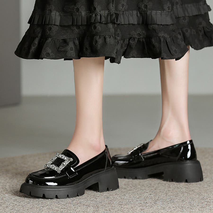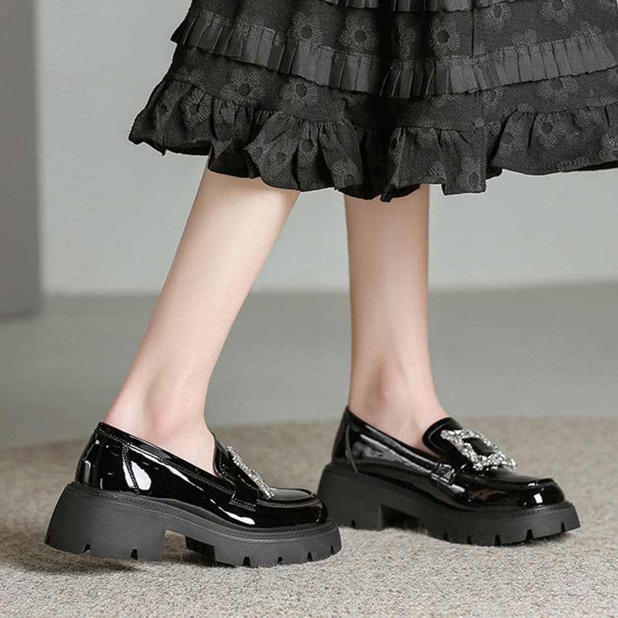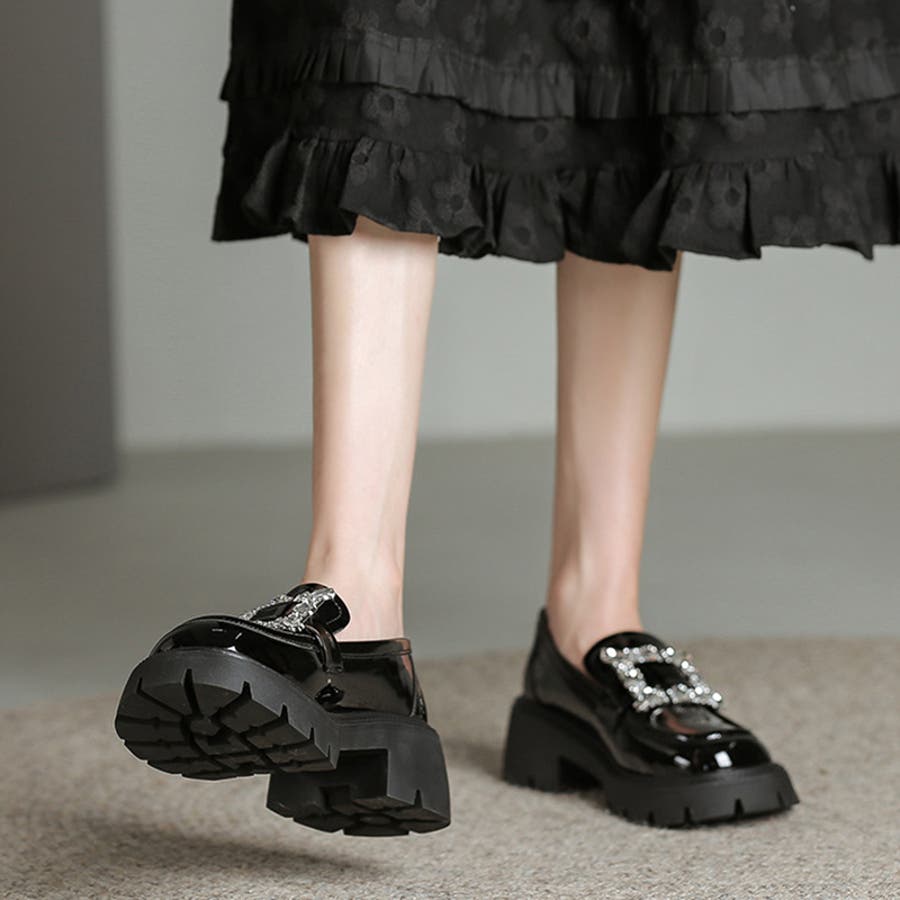 ローファー ビジュー 厚底 エナメル レディース ビジューローファー 厚底ローファー ラインストーン キラキラ おしゃれ 靴 幅広 痛くない 歩きやすい ラウンドトゥ 滑り止め エナメルローファー ビジューパーツ ビジュー付き シューズ パンプス ボリュームソール ボリューム 厚底シューズ フェイクレザー 合皮 合成皮革 革靴 小さいサイズ 大きいサイズ 大きい フォーマル フォーマル靴 ローカット 通勤 通学 仕事 パーティ 食事会 デート スクール 入学式 卒業式 学生 おでかけ お出かけ 女子 女性 オフィス オフィスカジュアル オフィカジ カジュアル ガーリー エレガント 上品 華やか 大人 かわいい 可愛い 大人可愛い オシャレ コーデ プチプラ 高見え トレンド デザイン ヒット 商品 おすすめ ブラック 黒 22cm 22.5cm 23cm 23.5cm 24cm 24.5cm 22 22.5 23 23.5 24 24.5 cm サイズ センチ 5.5cm ソール ヒール レディース靴 レディースくつ 新作 春夏 秋冬 春 夏 秋 冬 韓国 韓国ファッション 10代 20代 30代 40代 50代 60代 70代 cocomomo ココモモ