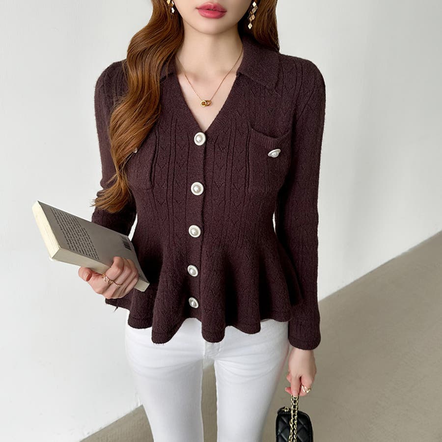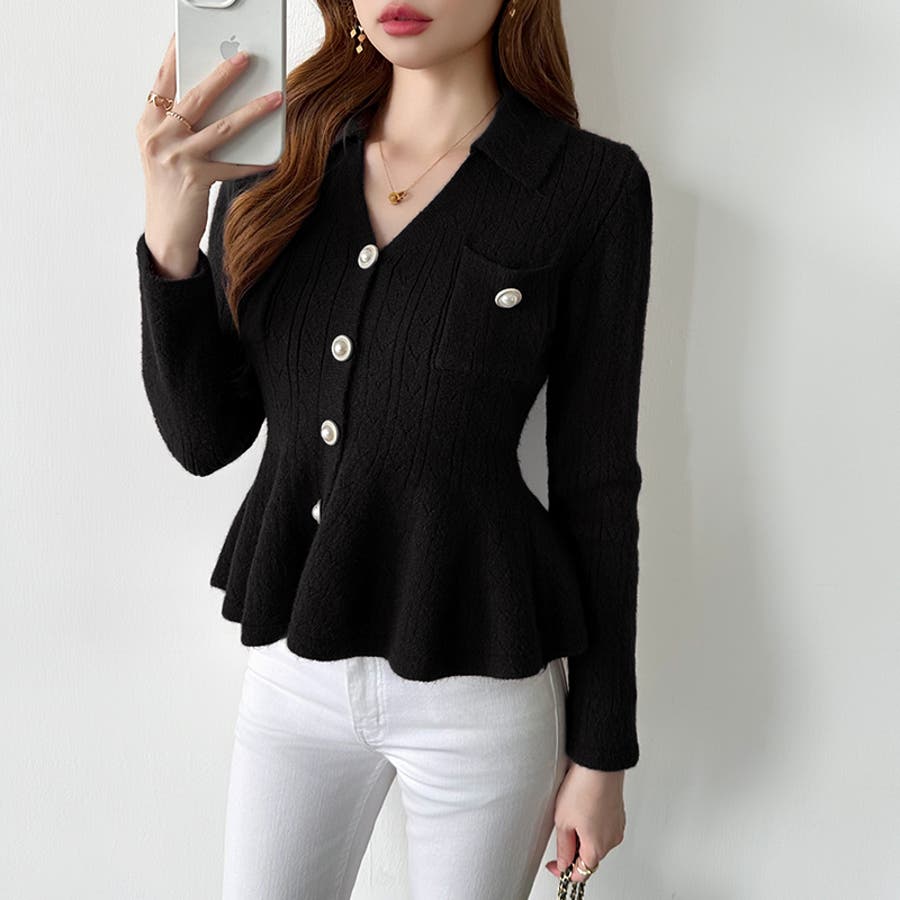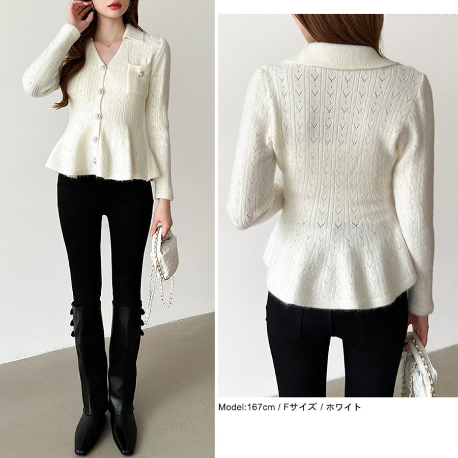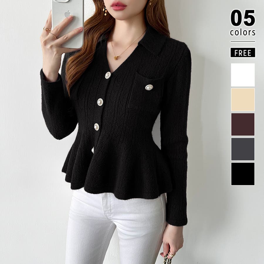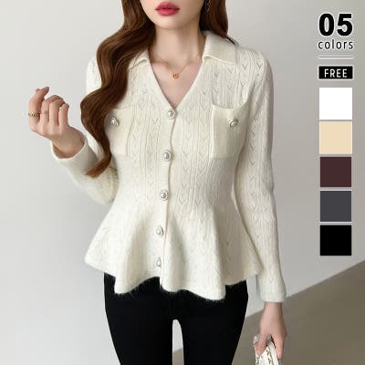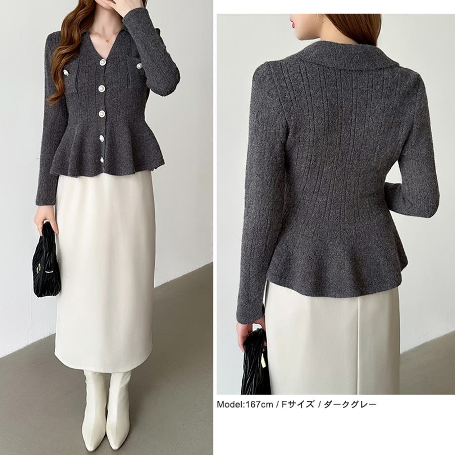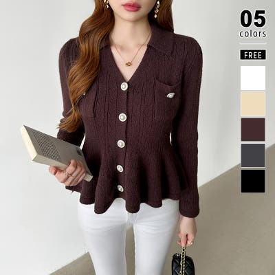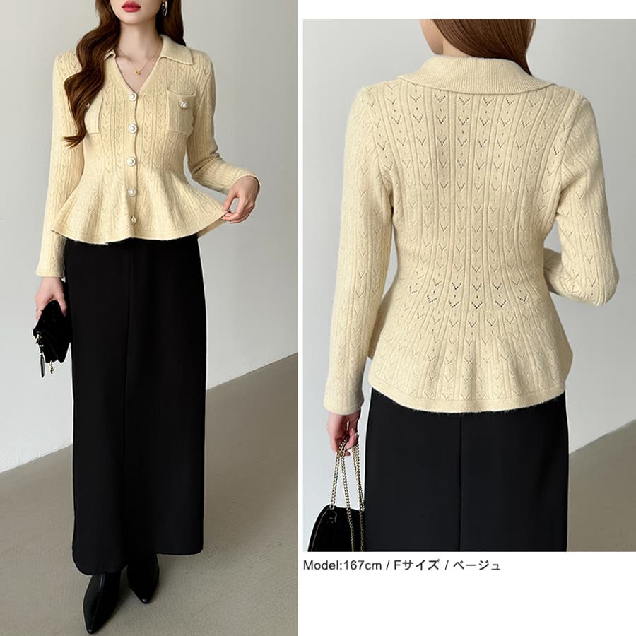 ペプラムニットカーディガン カーディガン ペプラムトップス