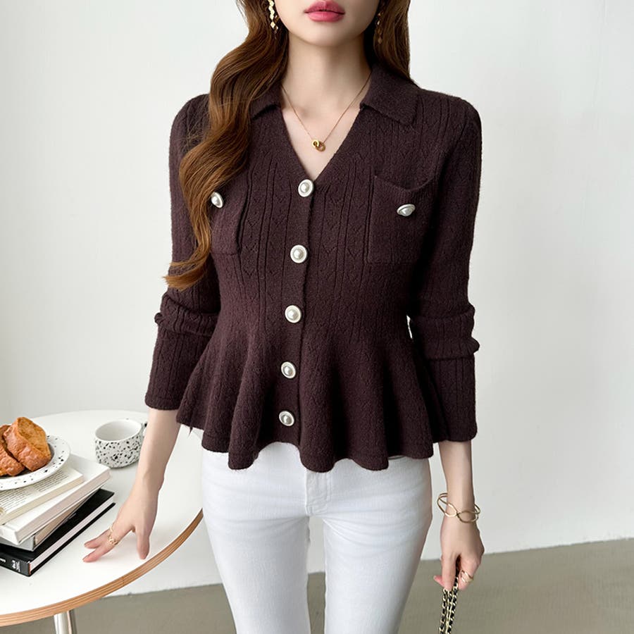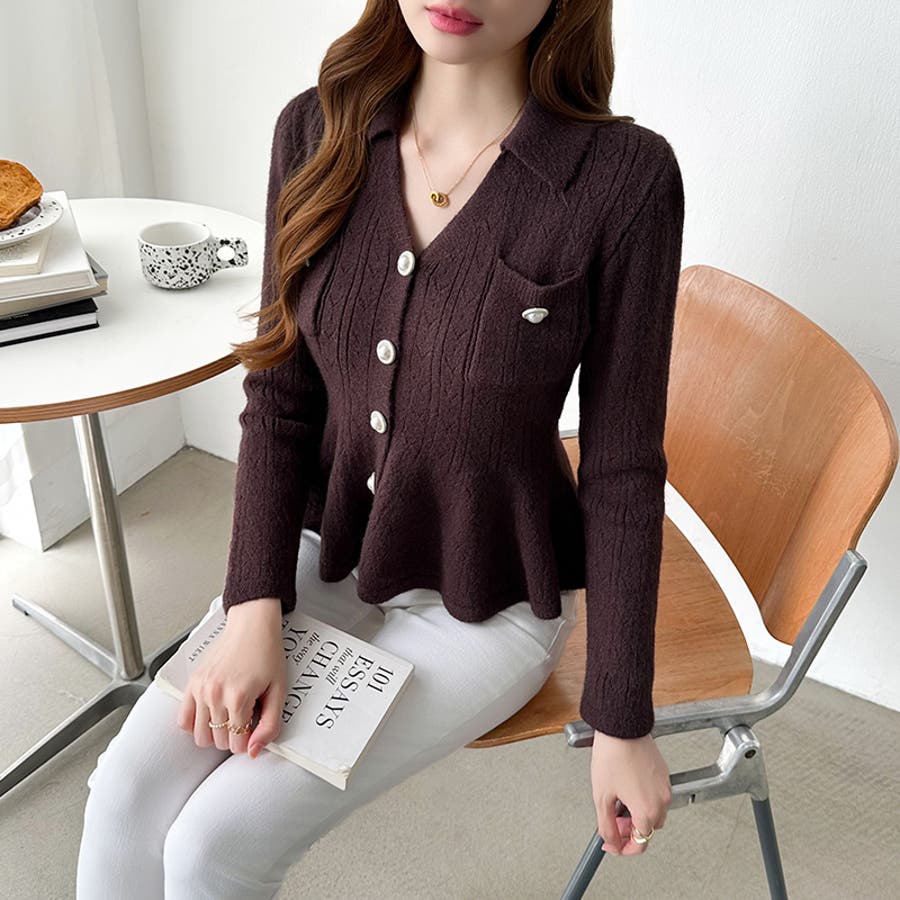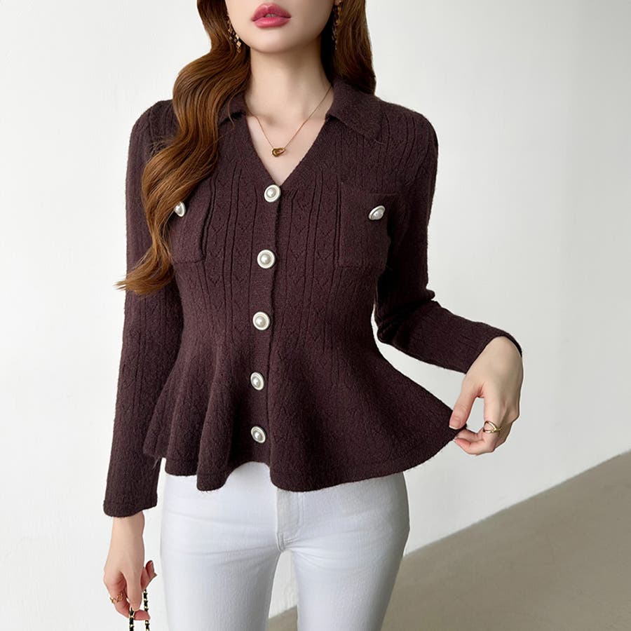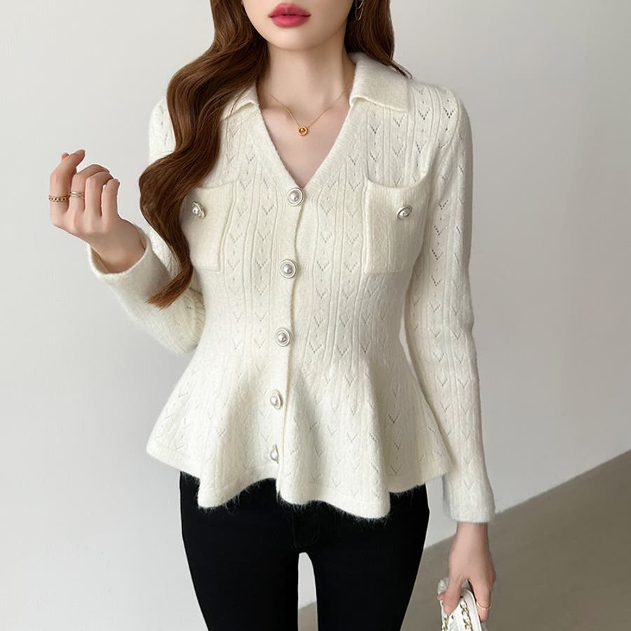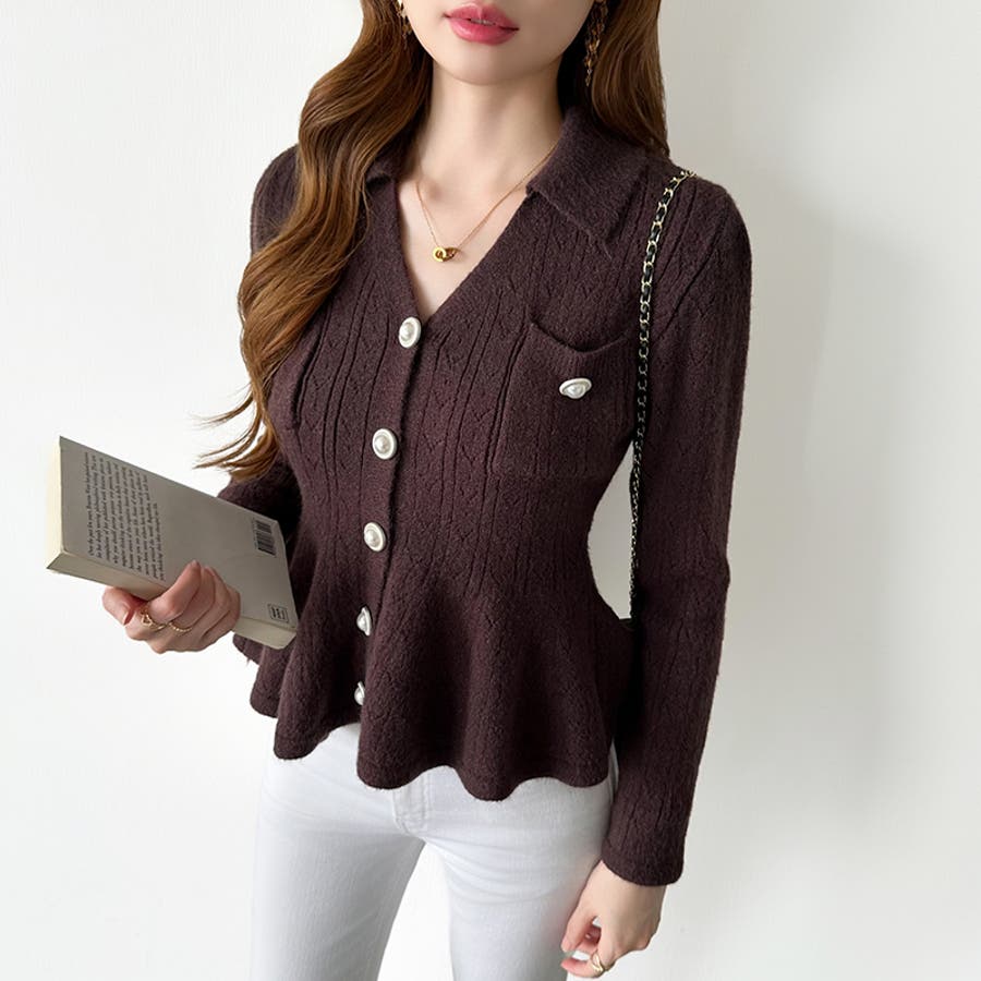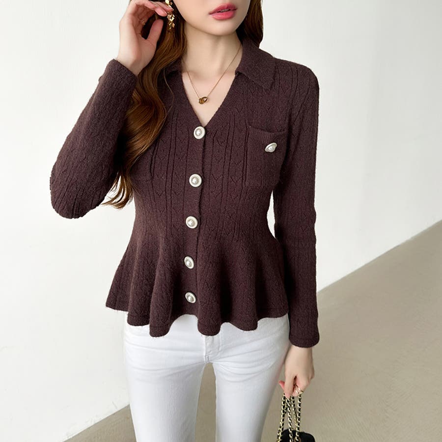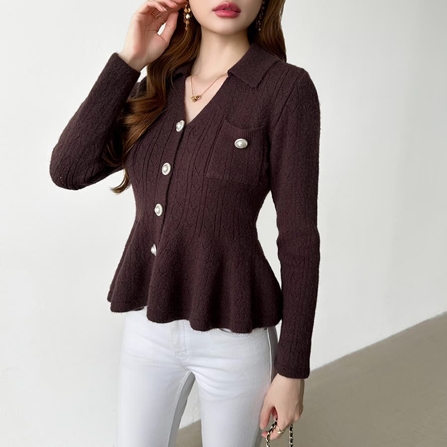 ペプラムニットカーディガン カーディガン ペプラムトップス