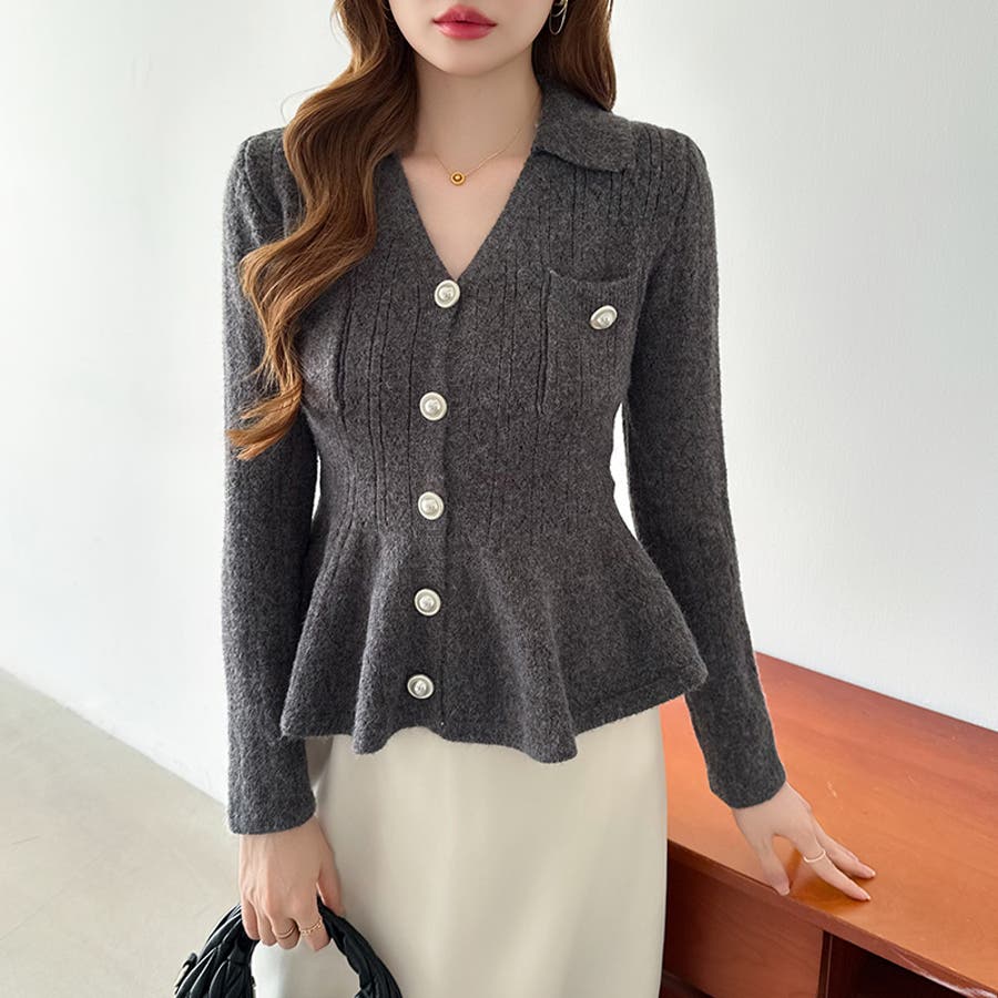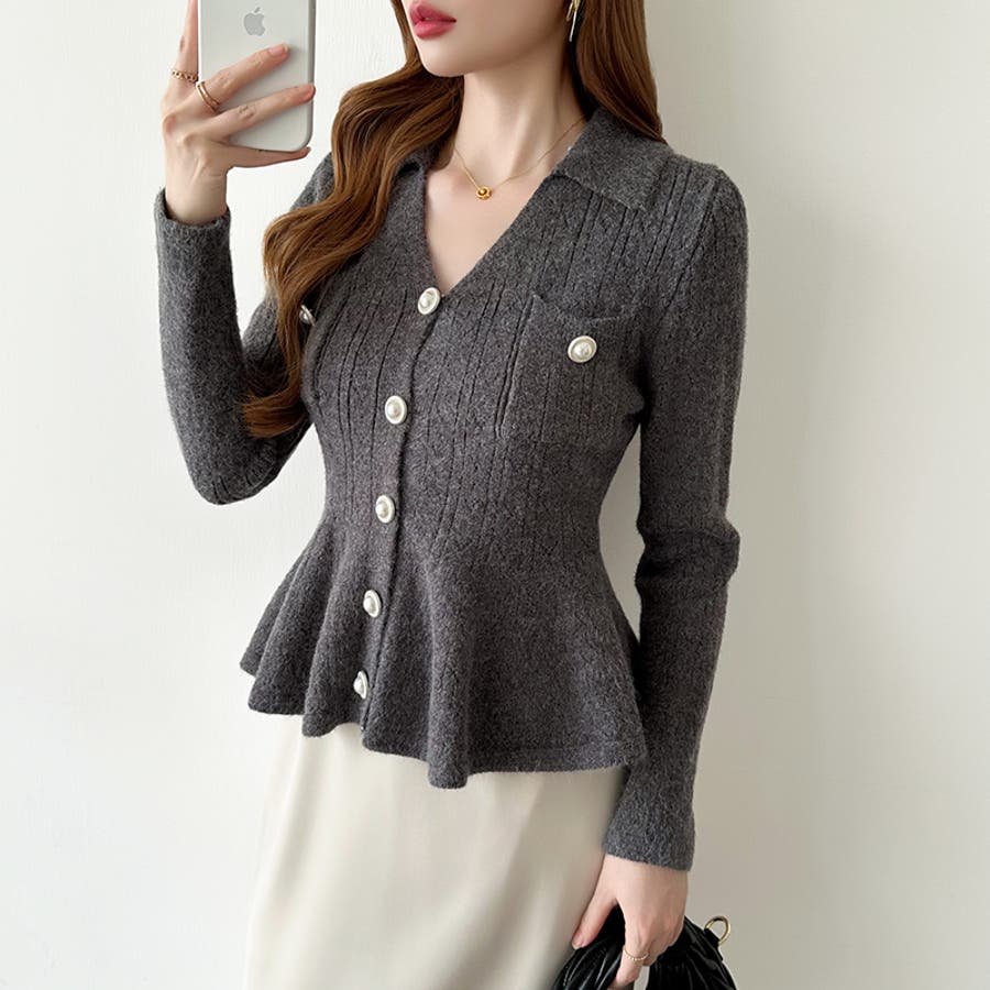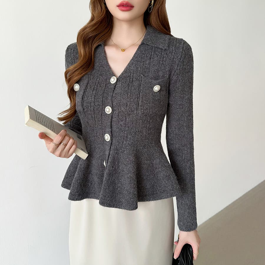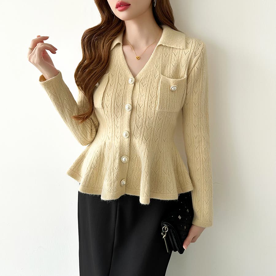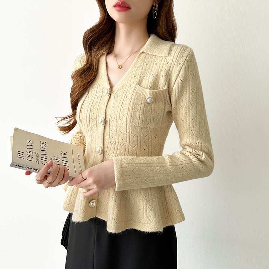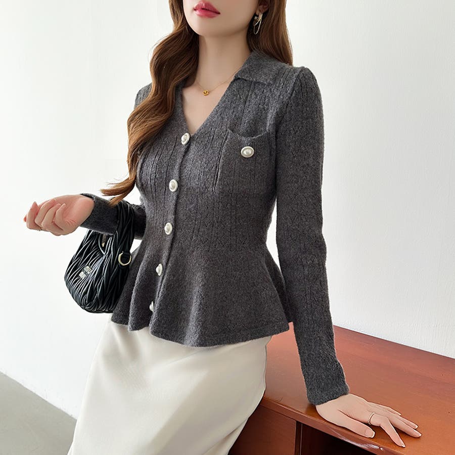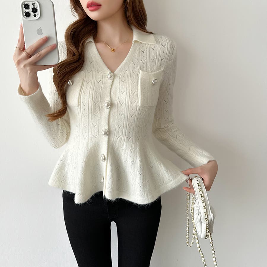 ペプラムニットカーディガン カーディガン ペプラムトップス