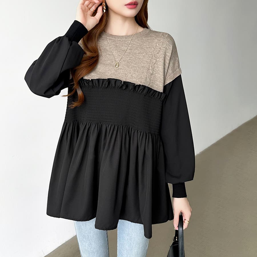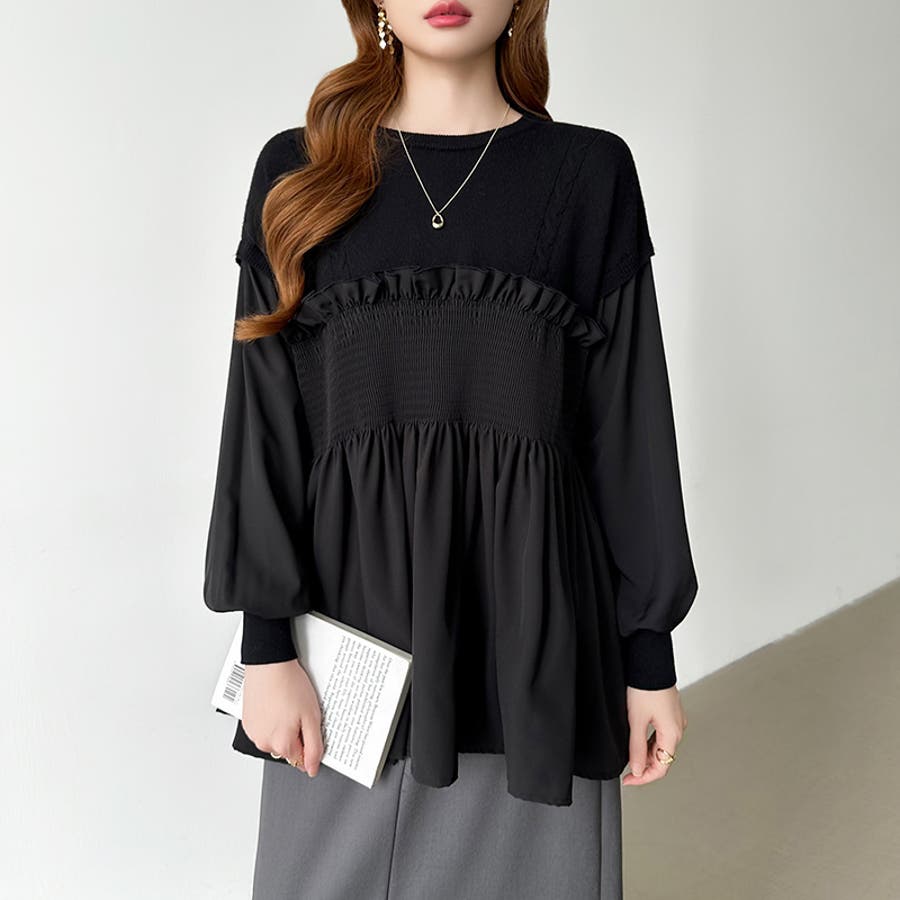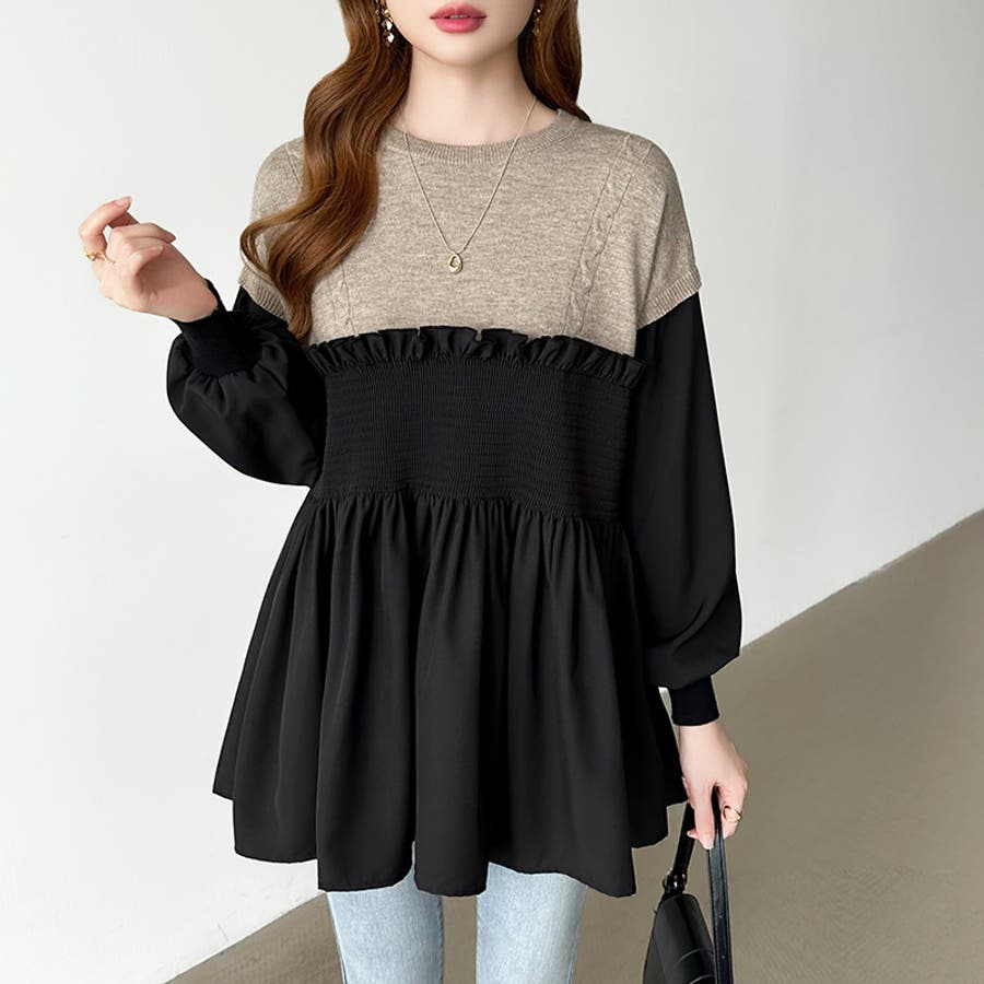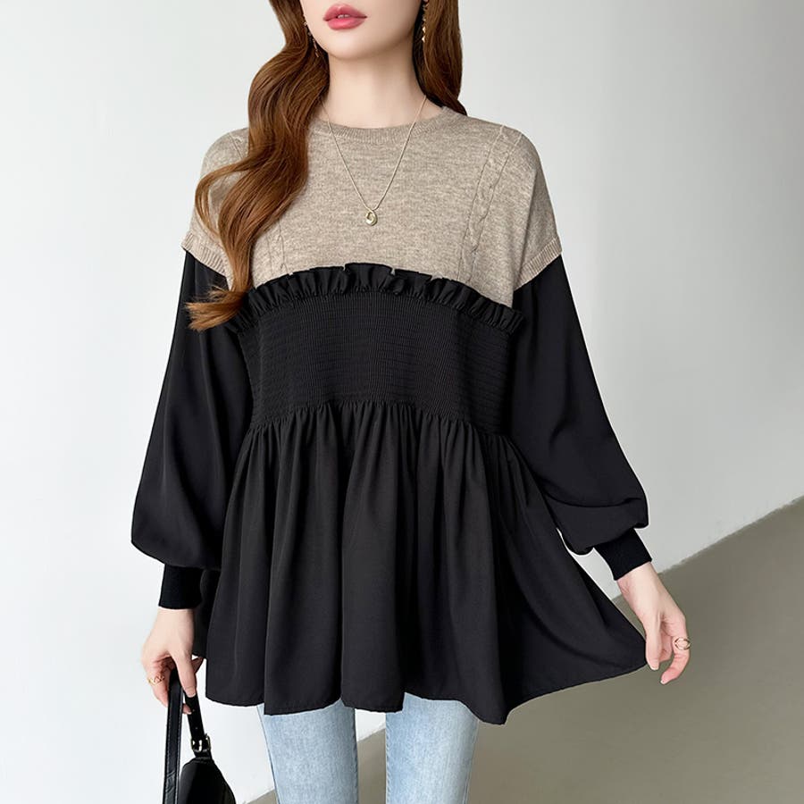 ペプラムドッキングニット チュニックブラウス ペプラム
