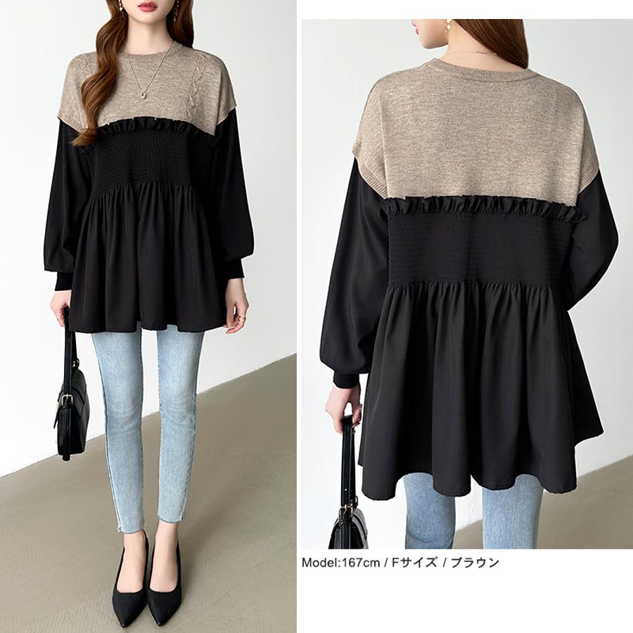 ペプラム ドッキング ニット チュニック トップス レディース ペプラムトップス 長袖 フレア カットソー ブラウス フリル ゆったり 体型カバー ボリューム袖 クルーネック 大きいサイズ 大人可愛い ケーブル柄 ドッキングブラウス チュニックブラウス フレアトップス ドッキングニット ドッキングトップス チュニックシャツ シャーリング プルオーバー クルーネックニット ボリュームスリーブ ケーブル編み ビスチェ風ニット ビスチェ ビスチェ風 ビスチェ風トップス 長袖ニット フレアトップス レイヤード風 シャーリング ペプラムニット レイヤード 風 重ね着 フェイクレイヤード aライン フリルトップス シャーリングトップス ドッキングプルオーバー お尻隠し お尻隠れる 切り替え 切替 ラウンドネック シンプル 無地 長袖トップス tops 着回し 着まわし 伸縮性 ストレッチ 1枚で決まる 洗える 手洗い可能 洗濯できる 洗濯 洗濯可能 洗濯可 通勤 通学 おでかけ お出かけ 旅行 服装 カジュアル フェミニン 大人 オトナ かわいい 可愛い 大人かわいい 大人カジュアル おしゃれ オシャレ 女性 母 ママ ママコーデ プチプラ 高見え トレンド コーデ コーディネート ヒット 商品 おすすめ 服 ファッション フリーサイズ フリー サイズ ブラウン 茶色 ブラック 黒 カラー レディース春 レディース秋 レディース冬 レディース秋冬 レディース春物 レディース秋物 レディース秋冬トップス 春トップス 秋トップス 冬トップス 長袖レディース 春トップスレディース 秋トップスレディース 冬トップスレディース カットソーレディース 二ットレディース 長袖レディース 長袖トップスレディース 長袖トップスおしゃれ トップスレディース トップスレディース長袖 新作 春秋 秋冬 春 秋 冬 春服 秋服 冬服 秋物 冬物 春用 秋用 冬用 韓国 韓国ファッション 10代 20代 30代 40代 50代 60代 70代 cocomomo ココモモ