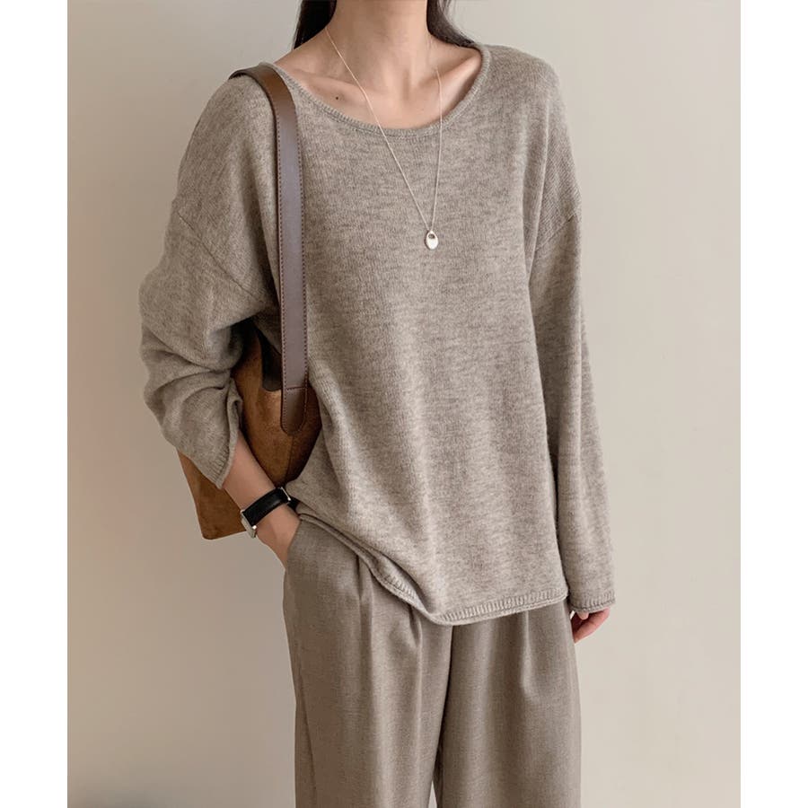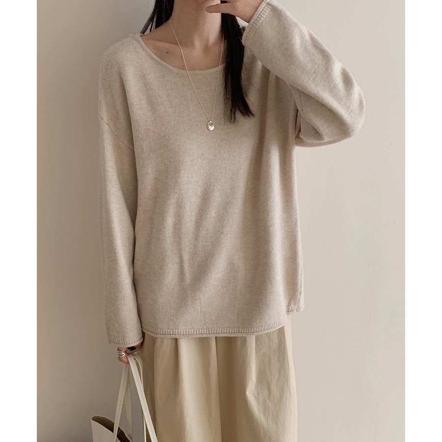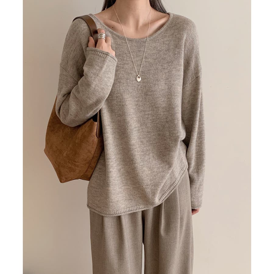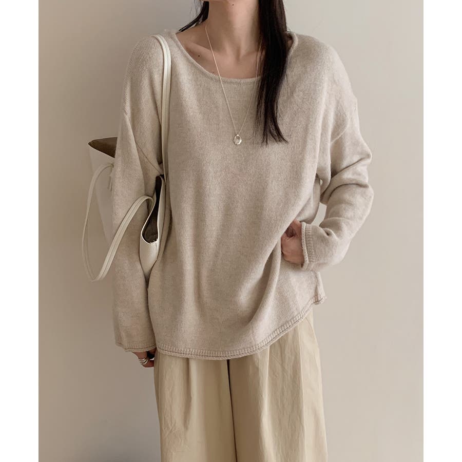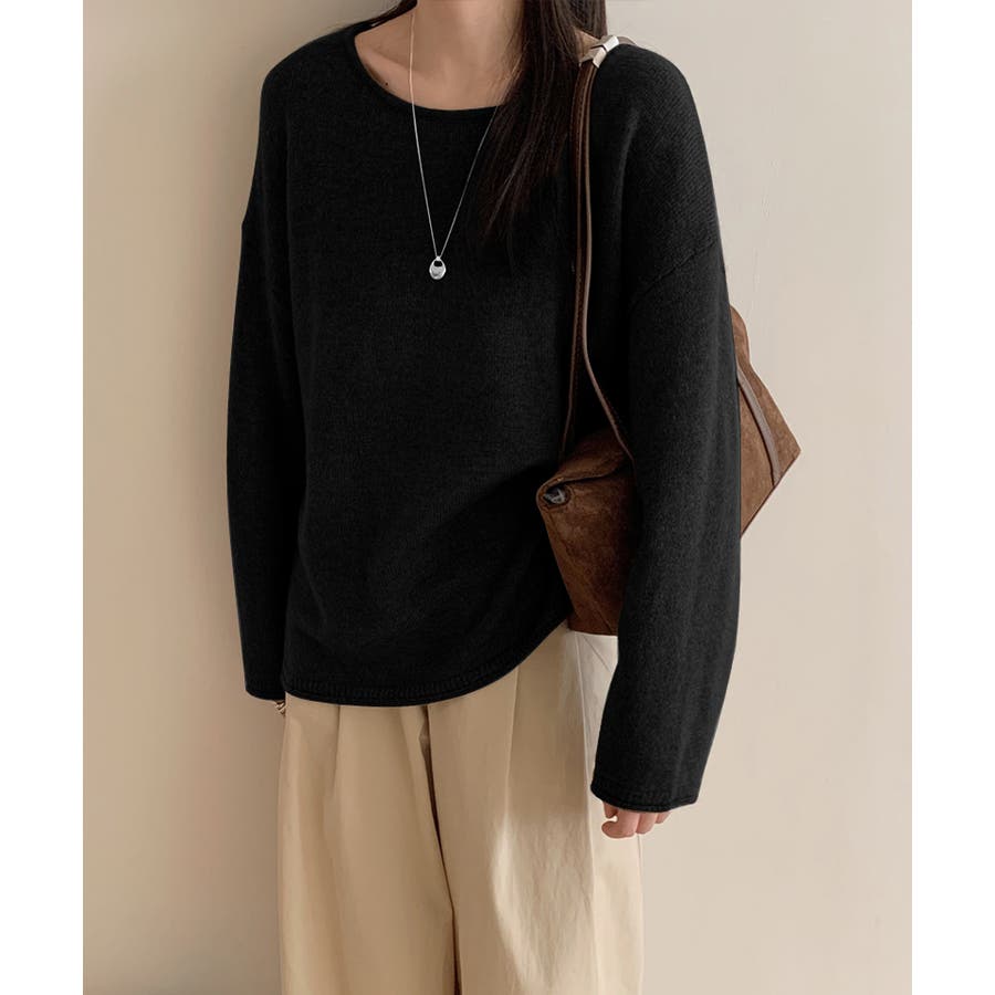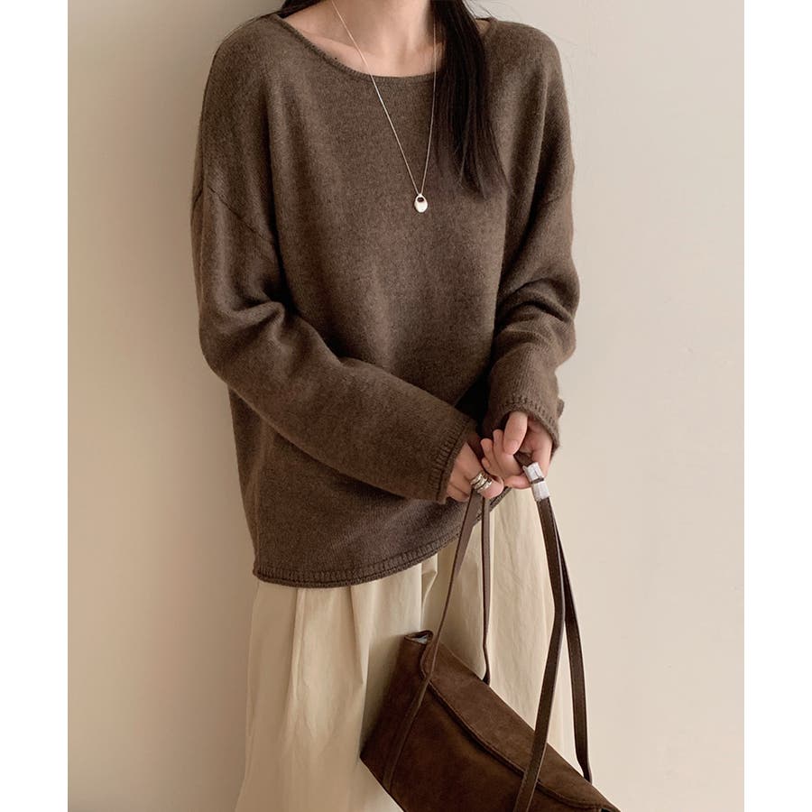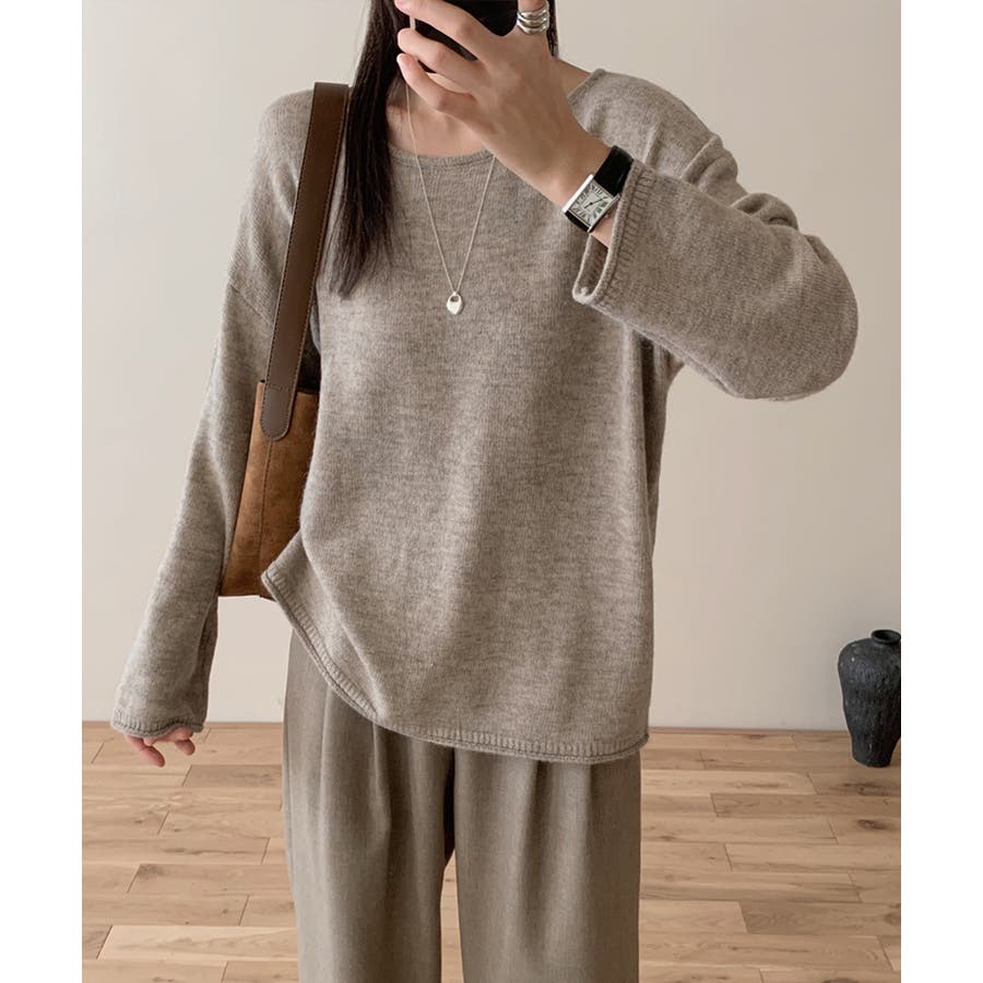 抜け感リラックスニット ラウンドネックニット 長袖ニット