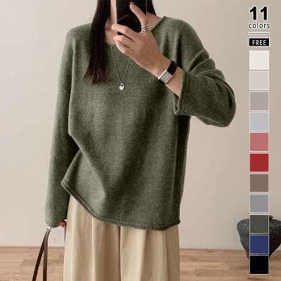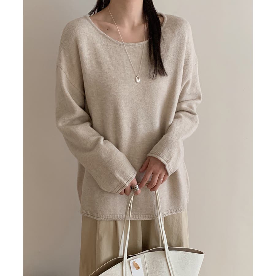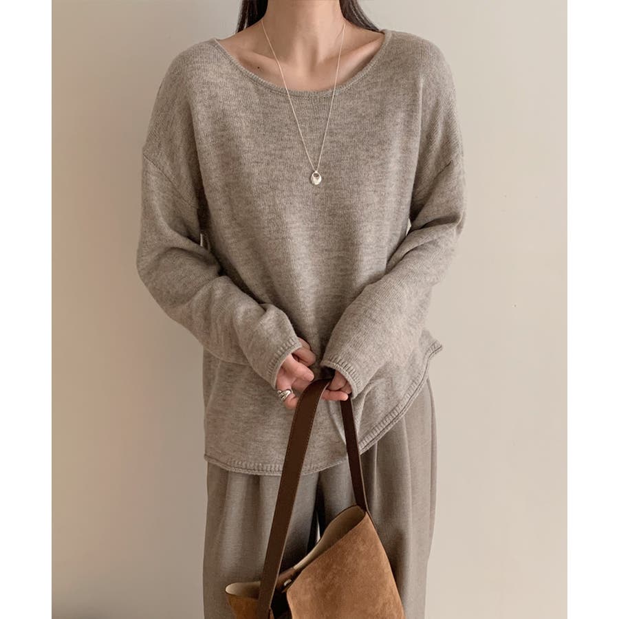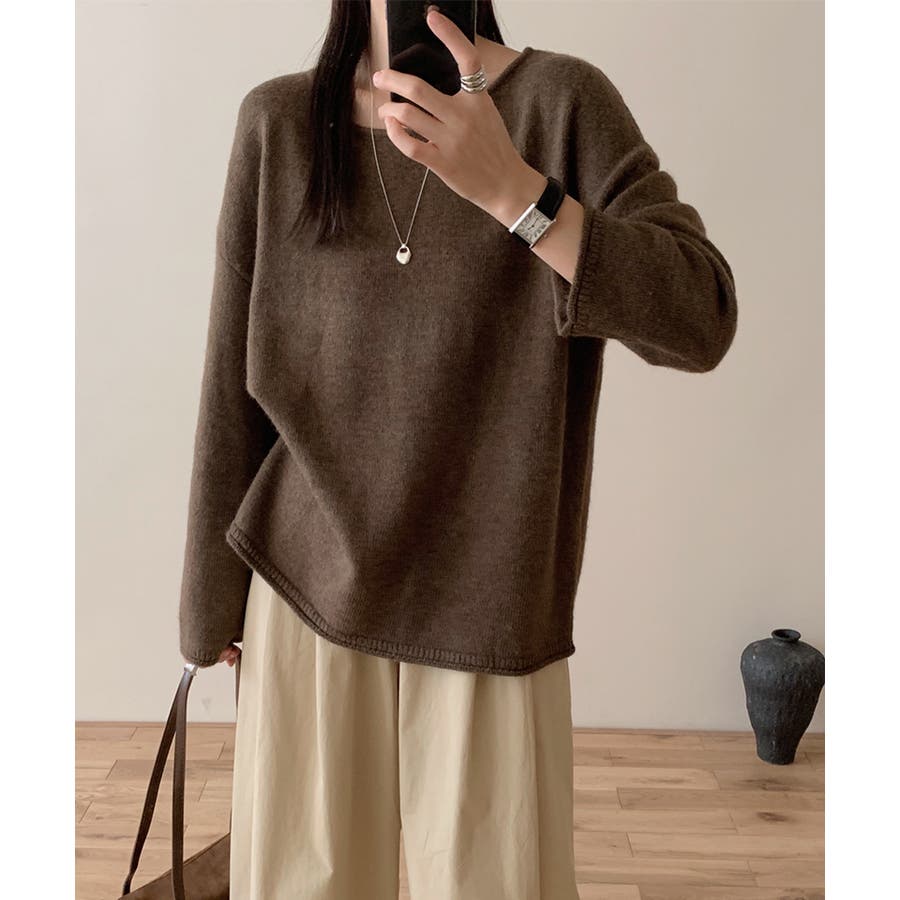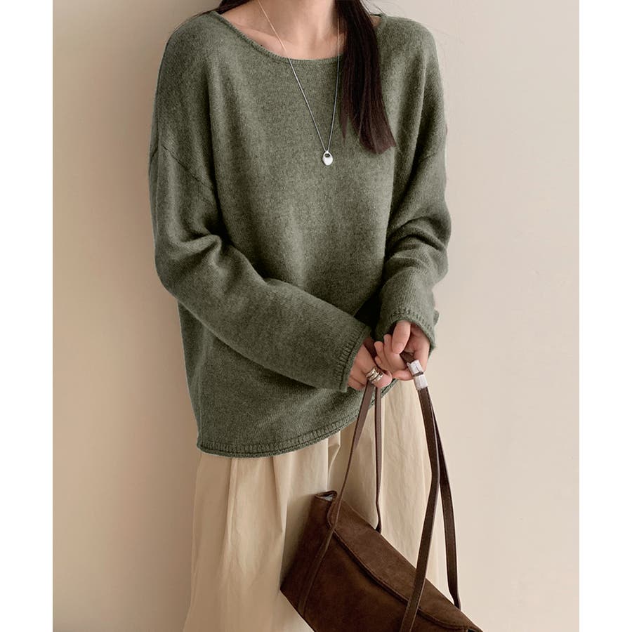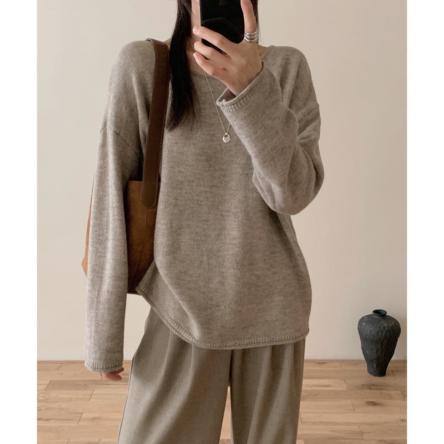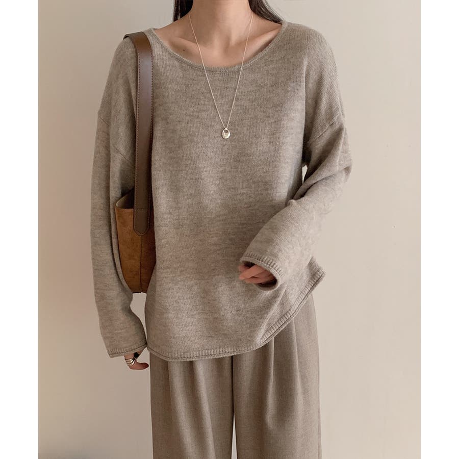 抜け感リラックスニット ラウンドネックニット 長袖ニット